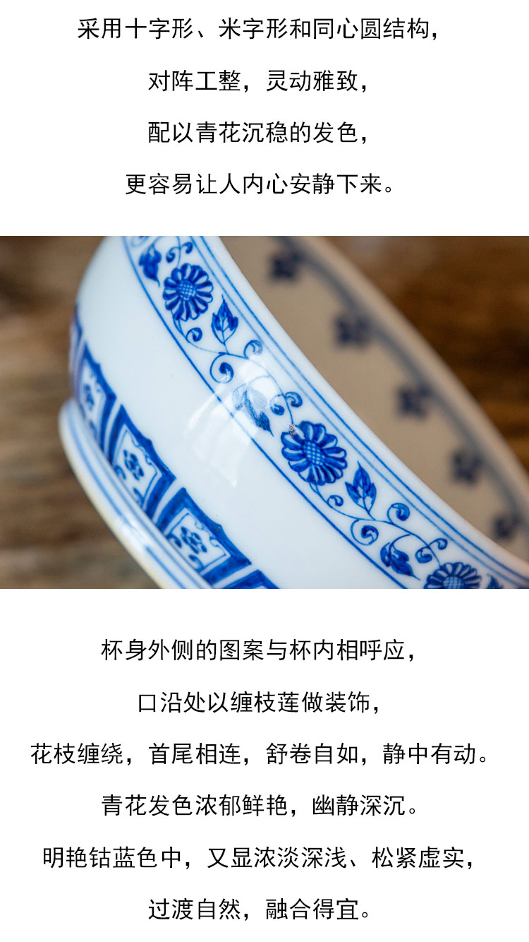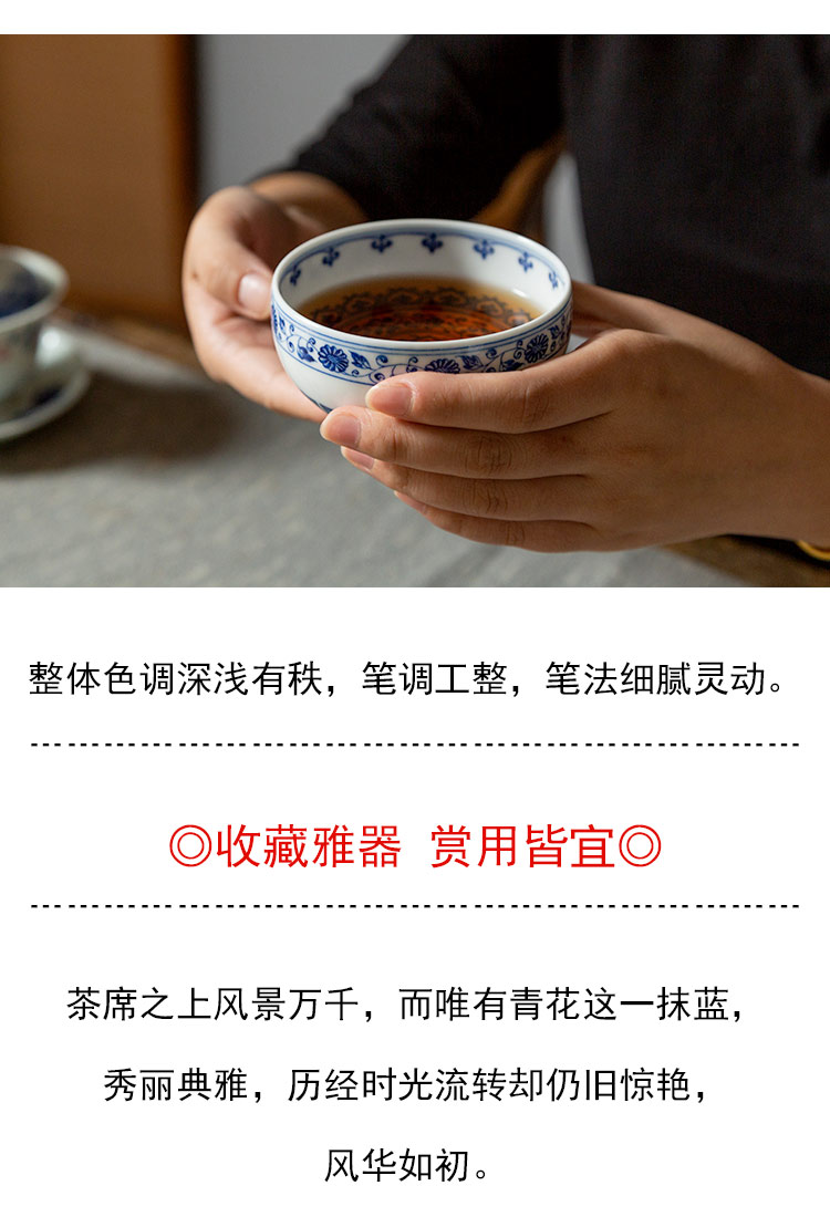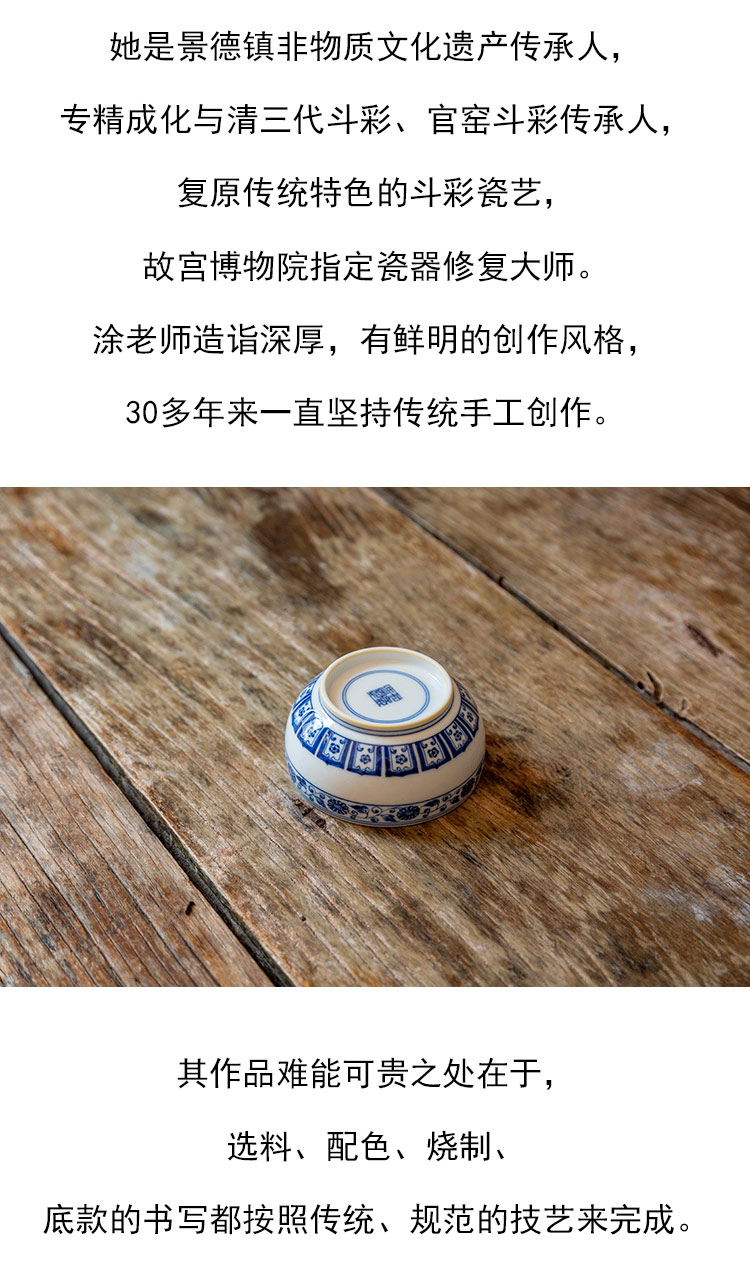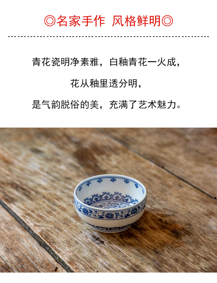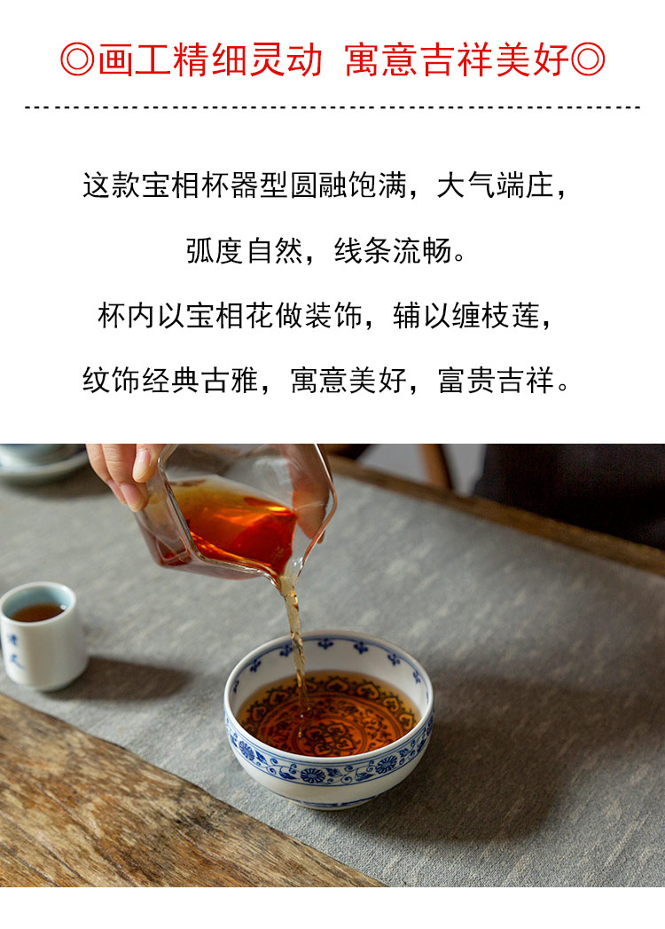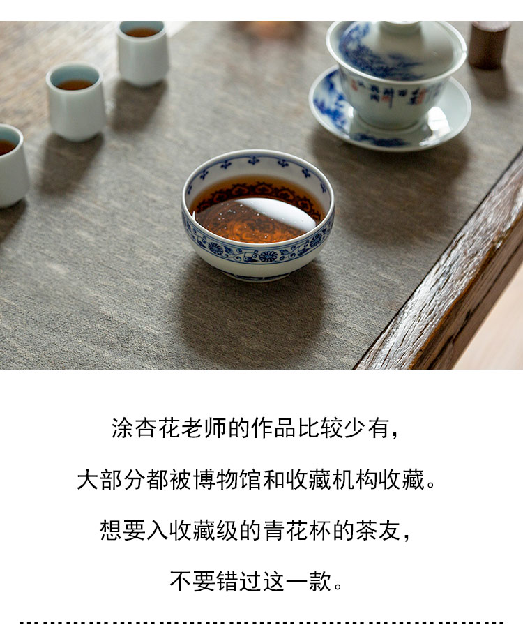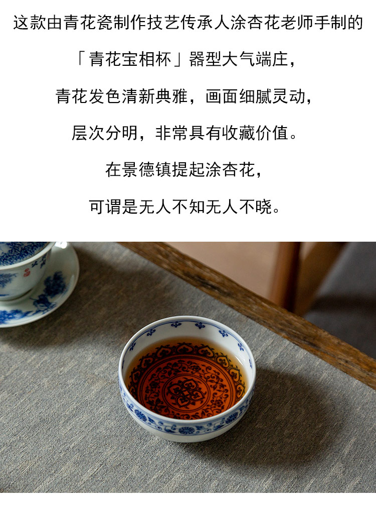 茶香记 青花宝相杯 涂杏花 全手工 收藏级 大气端庄 清雅细腻