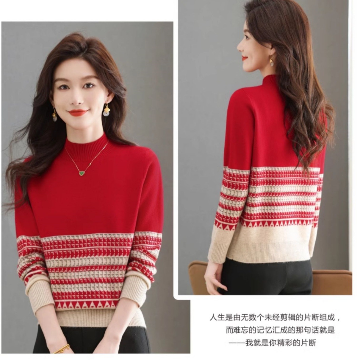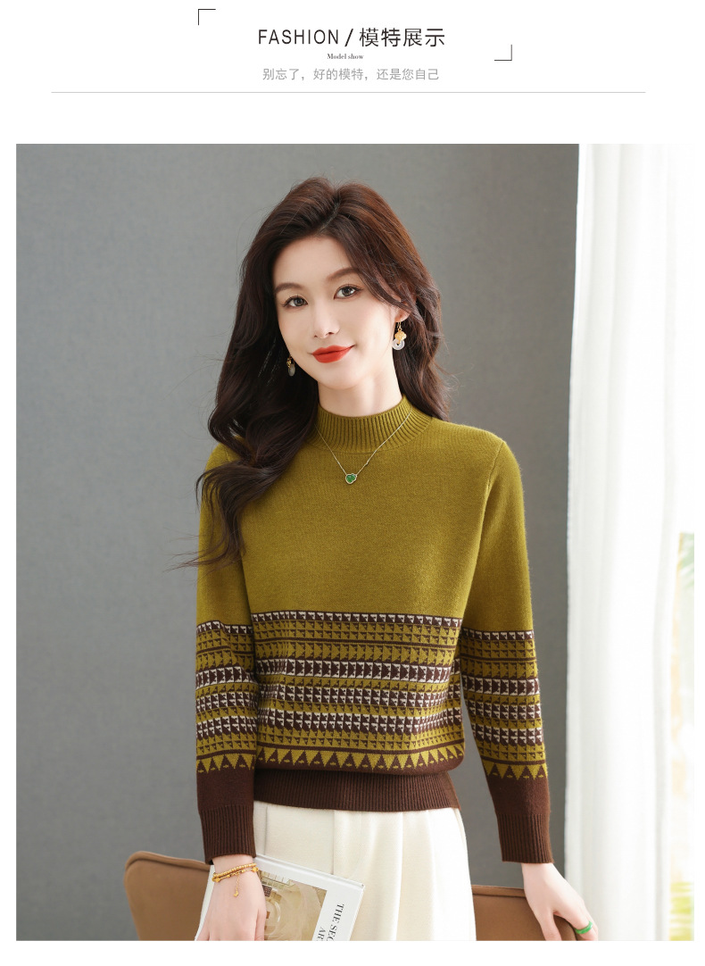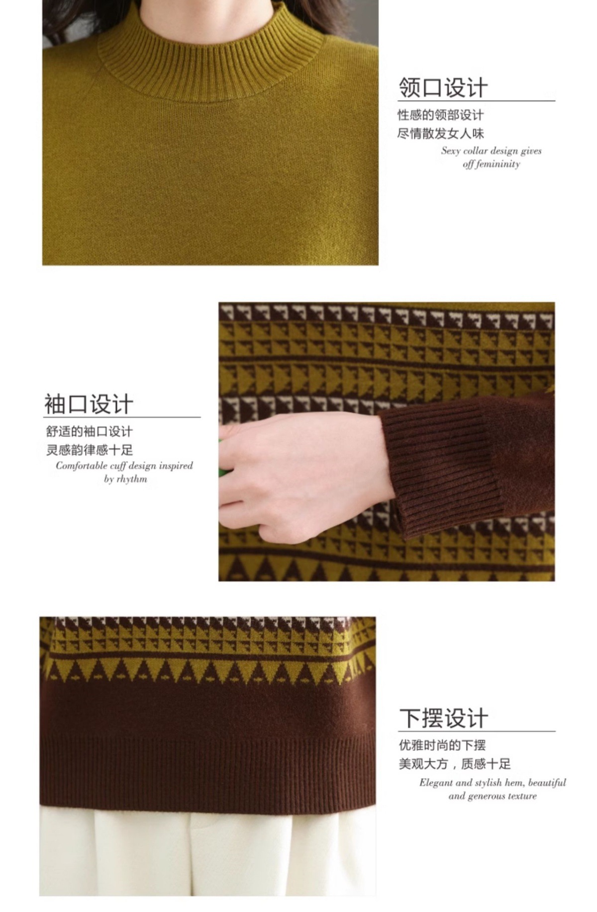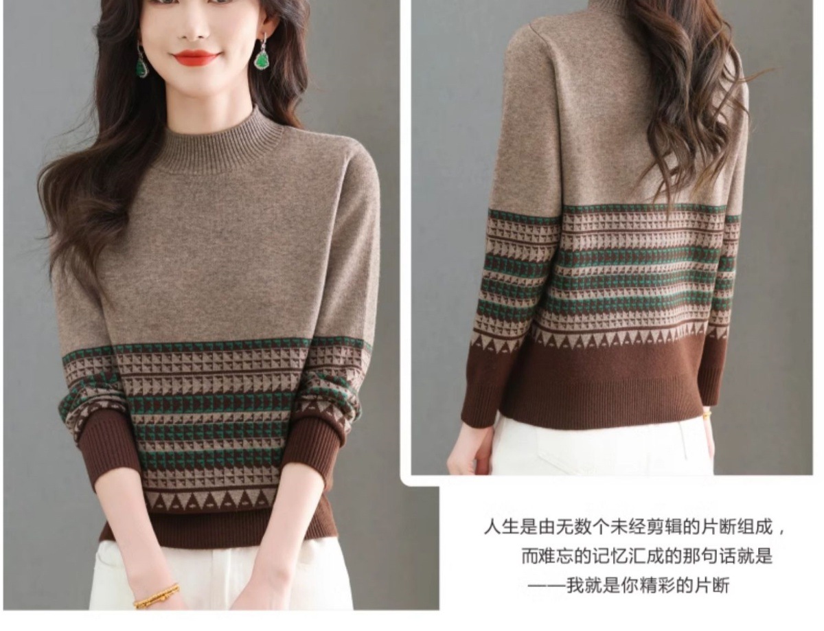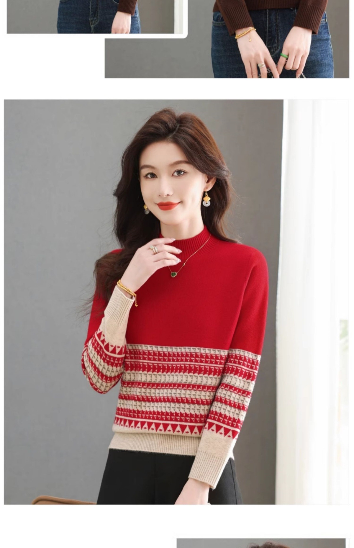 CC-101-98966半高领女士毛衣秋冬季新款拼色慵懒风上衣条纹软糯内搭针织打底衫