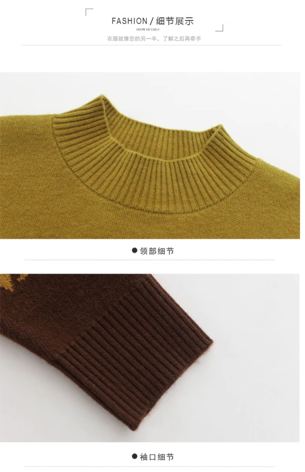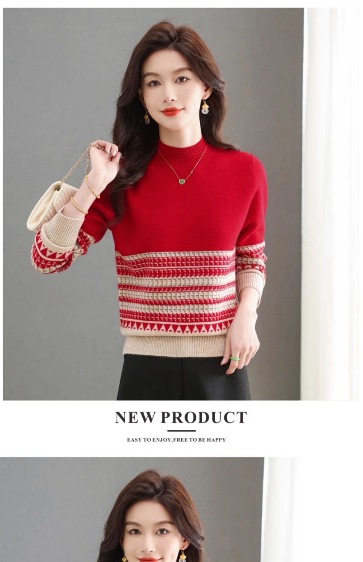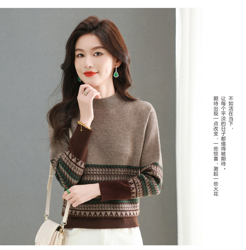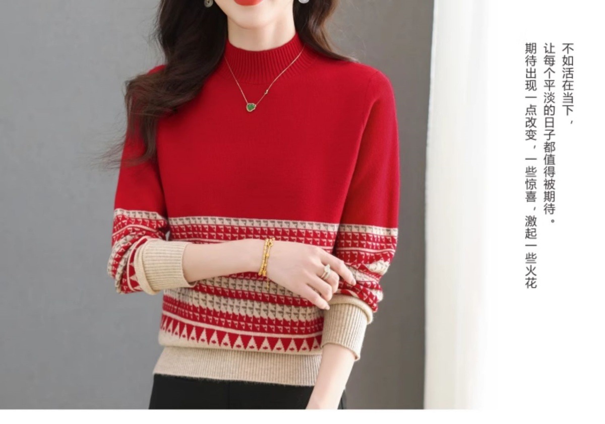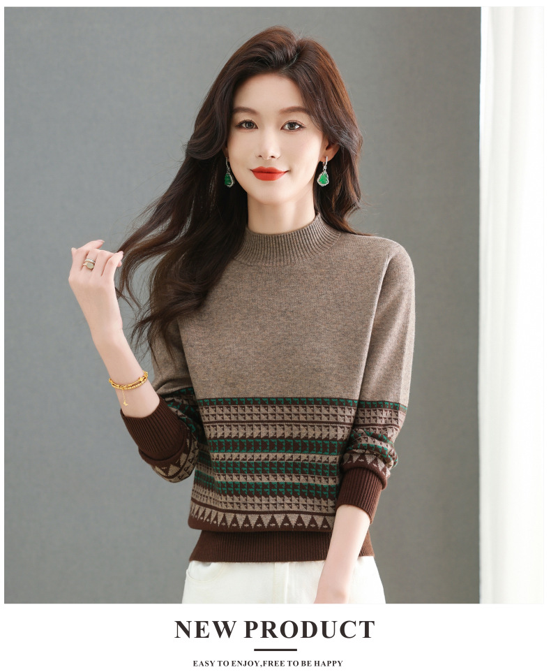 CC-101-98966半高领女士毛衣秋冬季新款拼色慵懒风上衣条纹软糯内搭针织打底衫