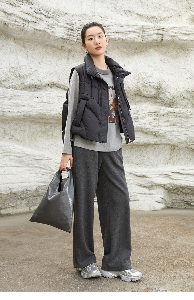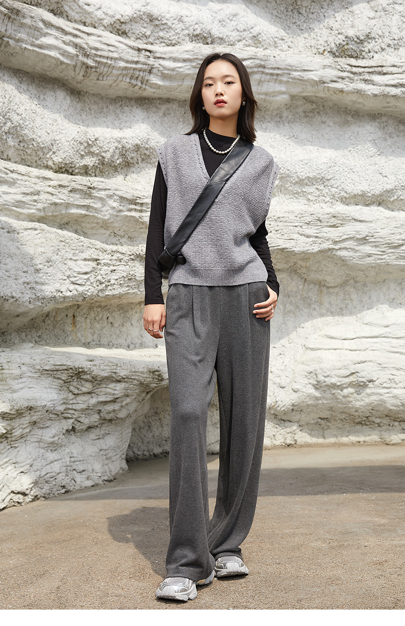 质感十足深灰色阔腿休闲裤 简约大气通勤百搭款长裤