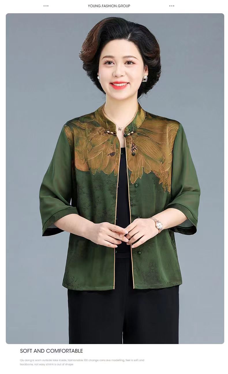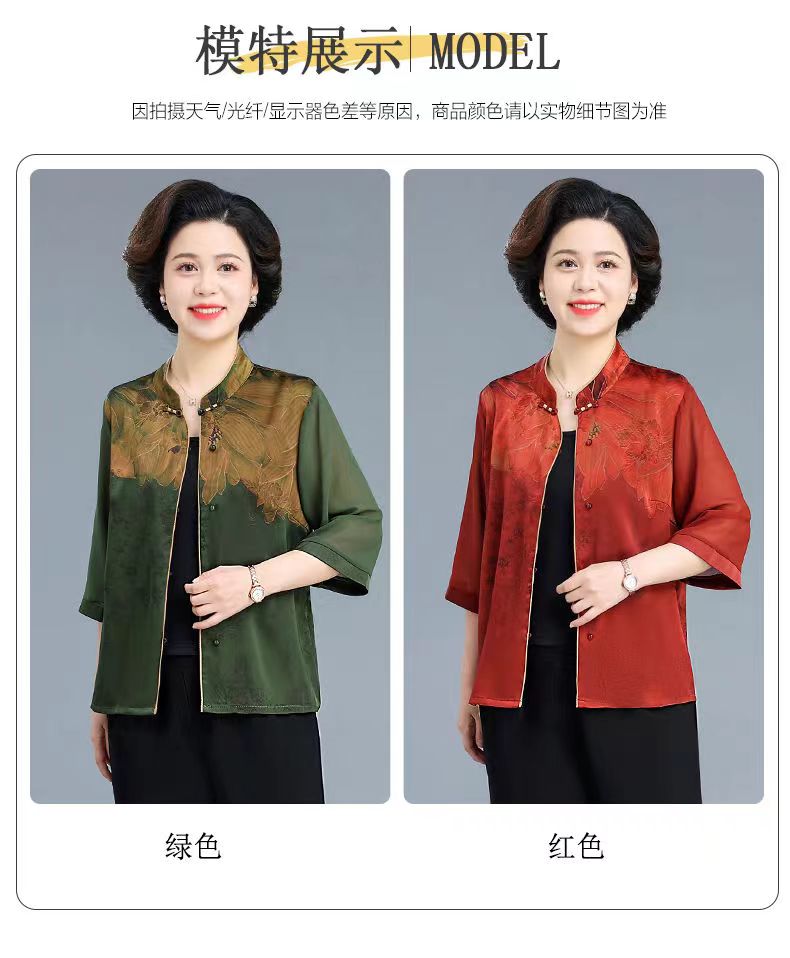 A5668夏装真丝桑蚕丝上衣女洋气中式妈妈装中袖衬衫中老年女装薄款衬衣