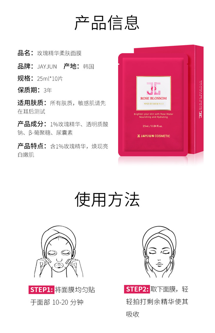 AYJUN水光玫瑰面膜,補水美白[Rose]🌸连敷三天,就觉得白回来一个度了,这个夏天最不能少的美白补水面膜,精华特别清爽,最适合伏天敷的面膜!水光玫瑰面膜出世了🌹,一盒10片,👉一打开浓郁的玫瑰清香,主要针对美白补水,抗氧化,💓淡化黑色素的同时,让你的脸袋时刻滋润,改善肤色不均,色素沉淀等现象💋~真心好用!!