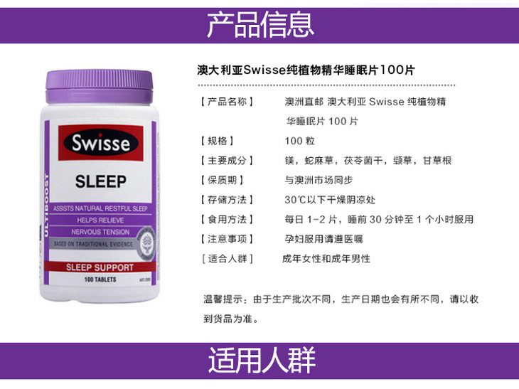 Swisse Sleep 提高睡眠质量 改善睡眠 100片