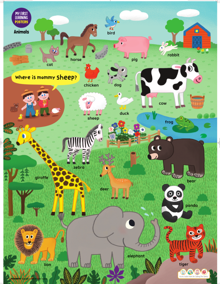 【可点读】英语单词海报婴幼儿早教宝宝启蒙认知有声挂图6张宝宝认知英语单词字母数字动物汽车启蒙教材支持小book点点读海报 文脉【预售1-2天发货】