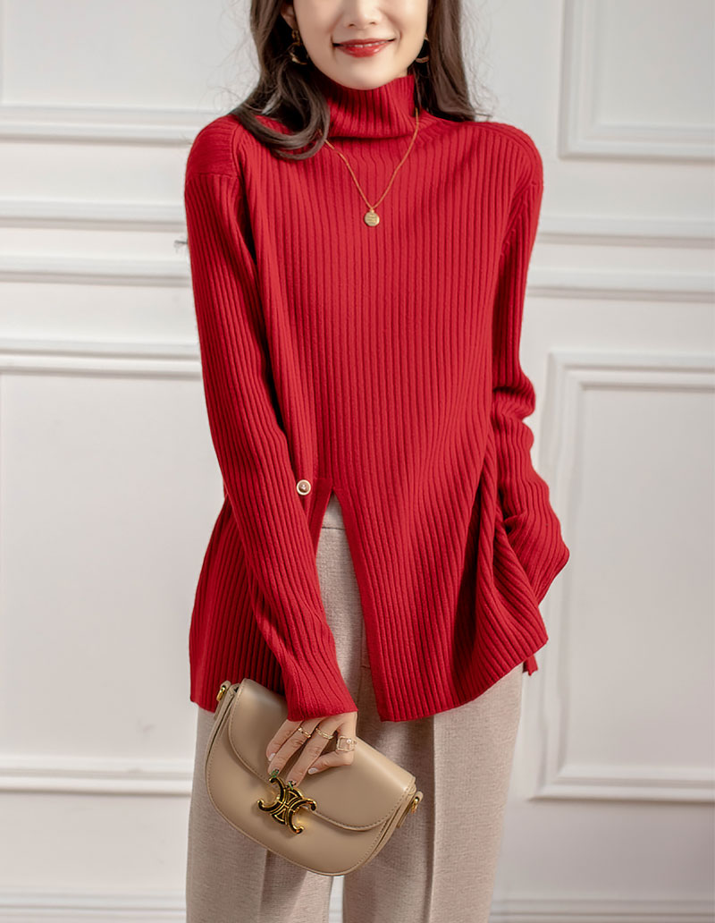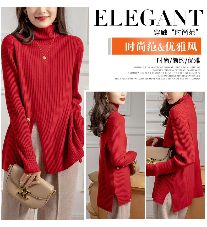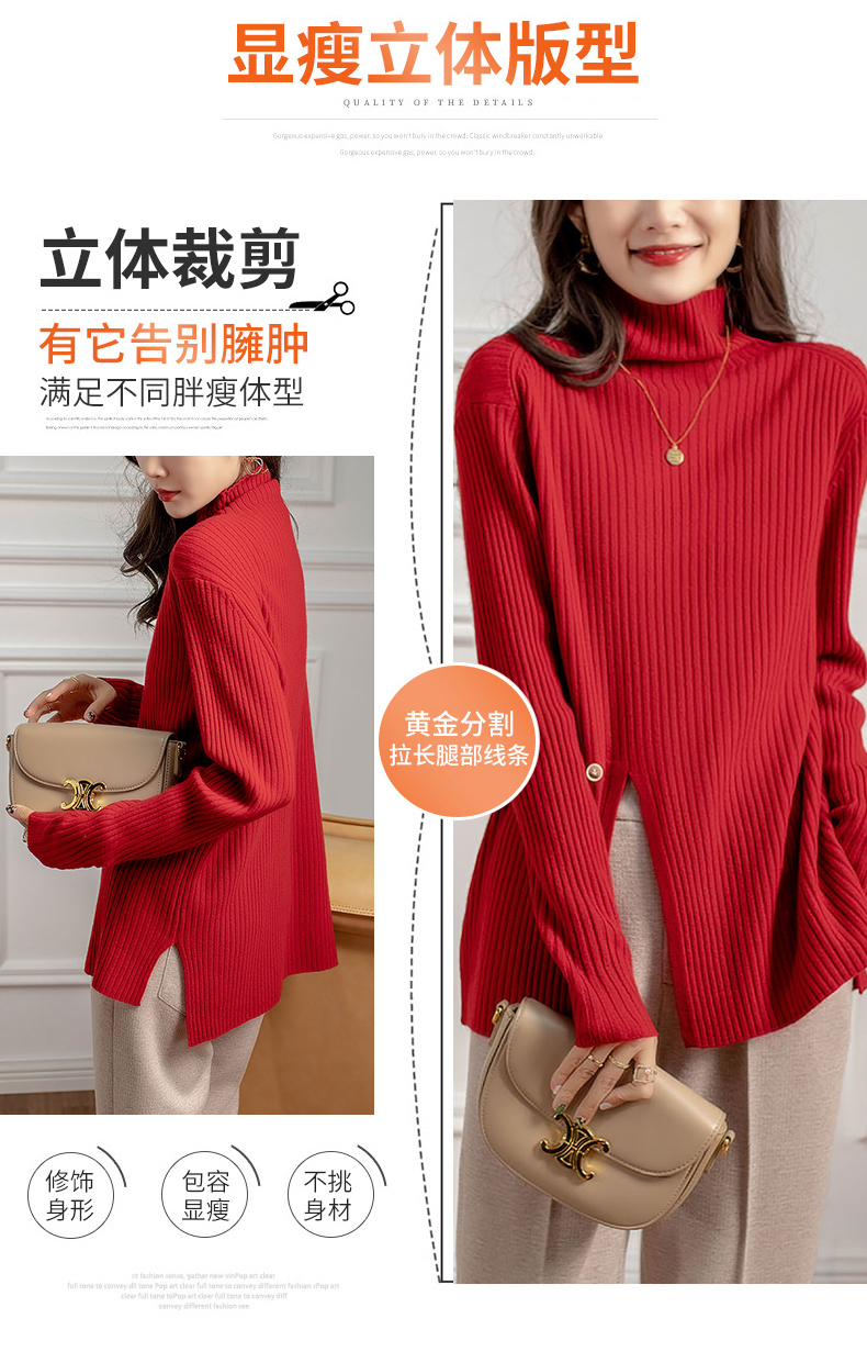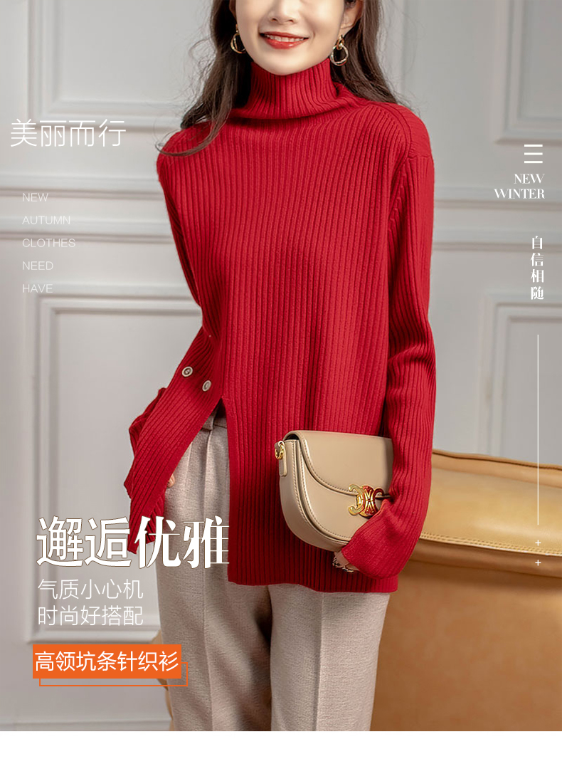 新气质高领坑条针织衫设计感小众毛衣女秋冬 RWQ6641