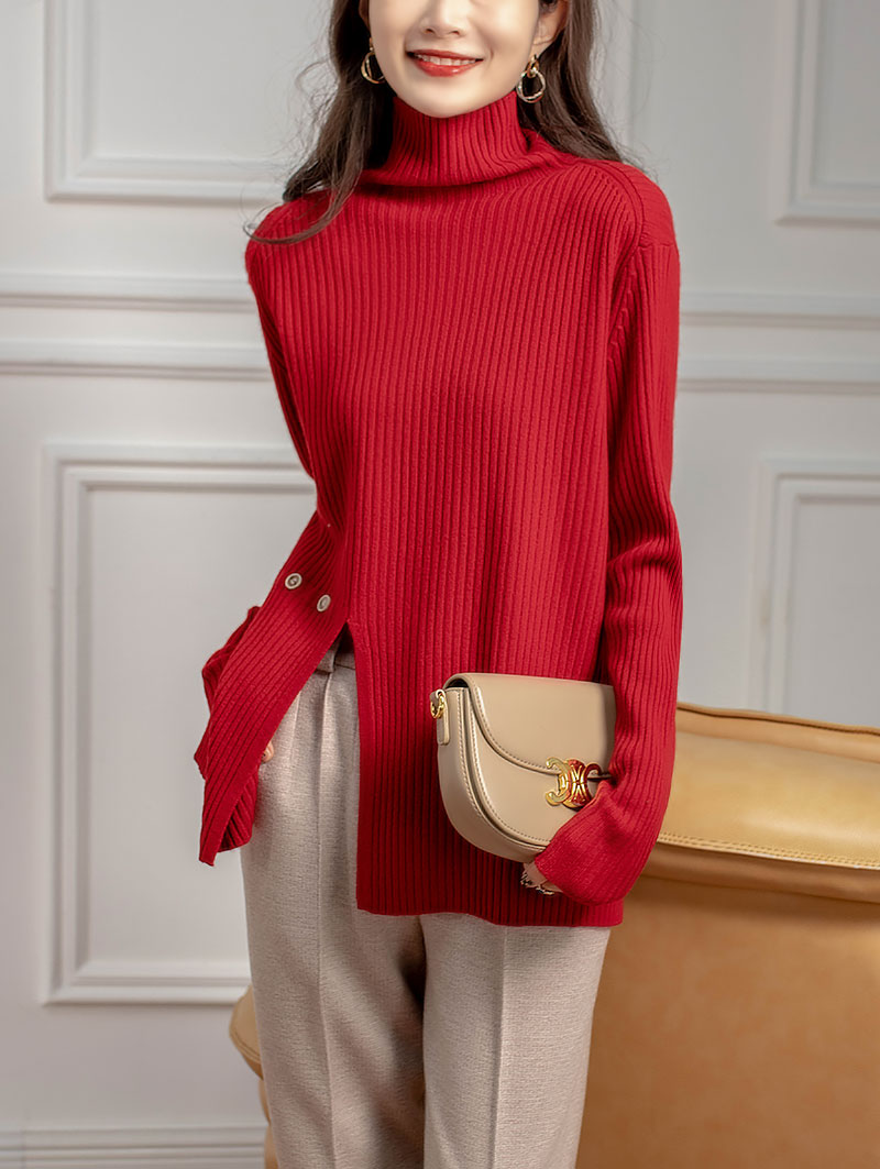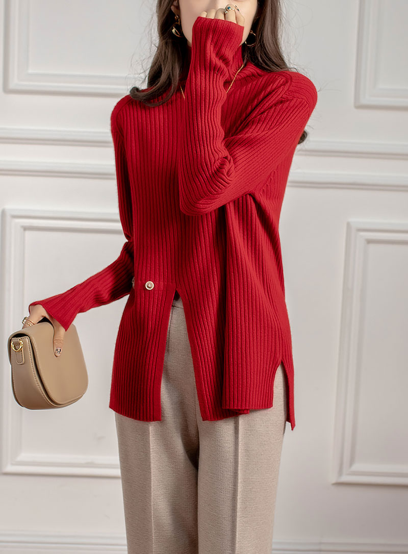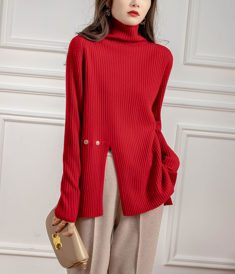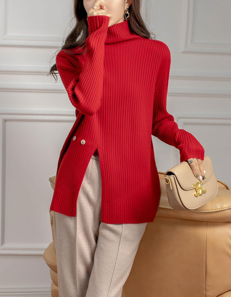新气质高领坑条针织衫设计感小众毛衣女秋冬 RWQ6641