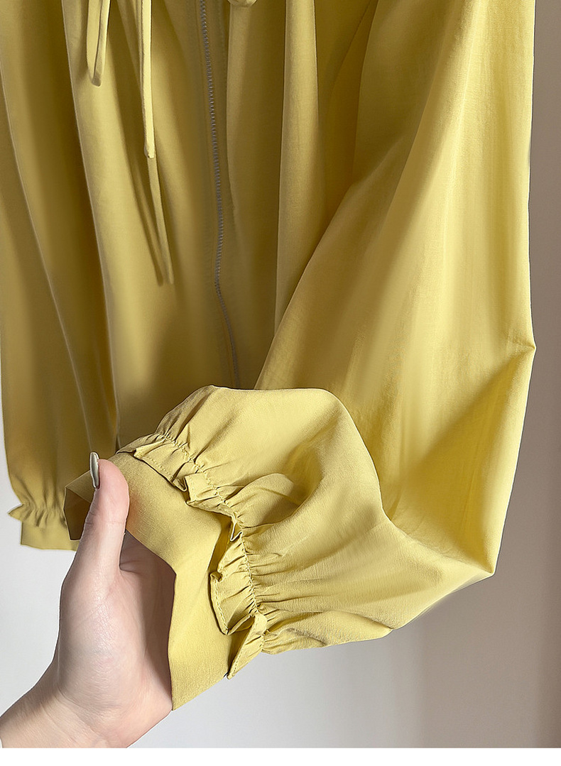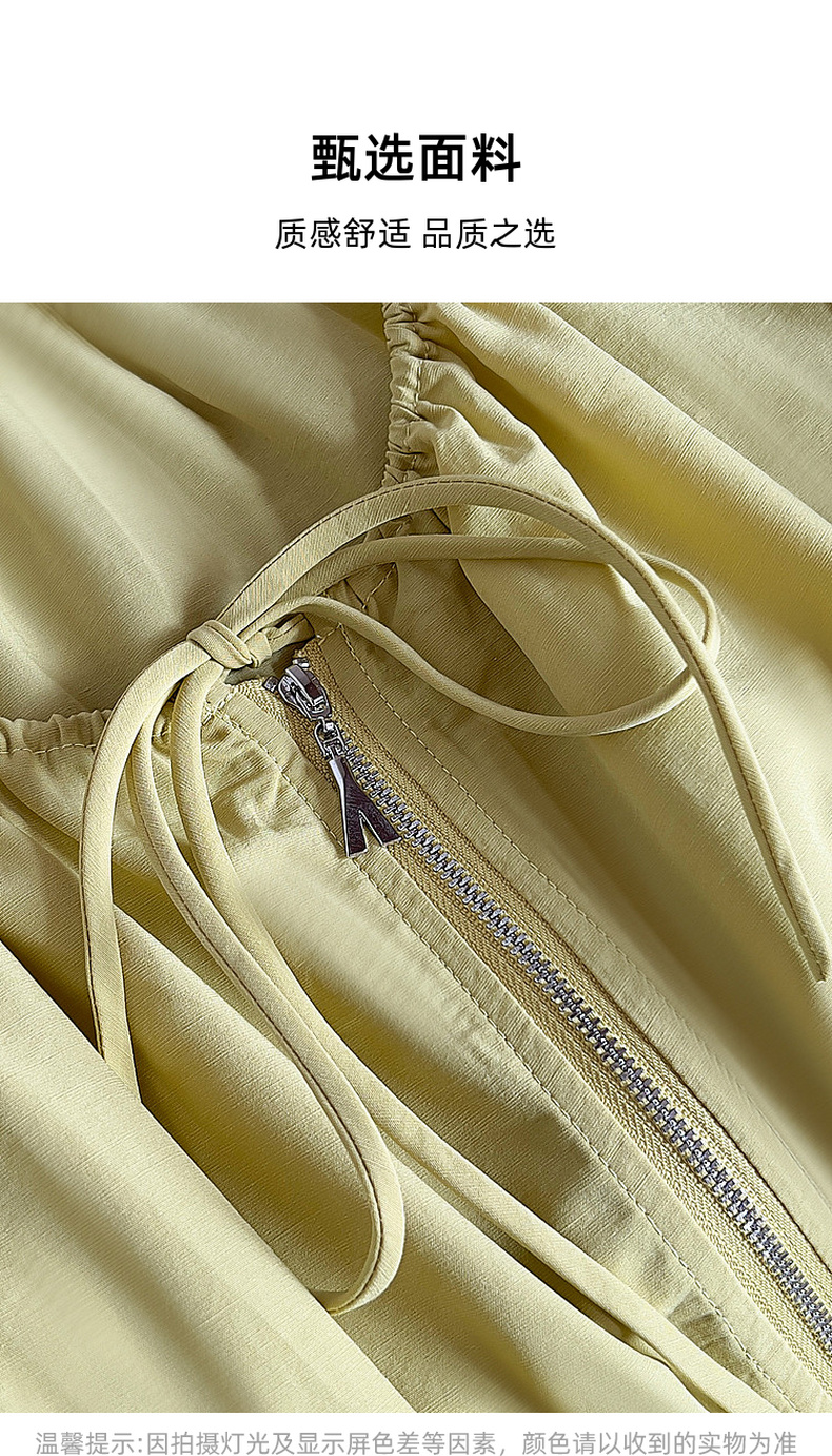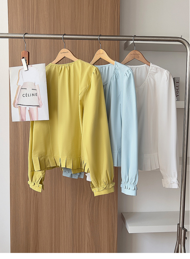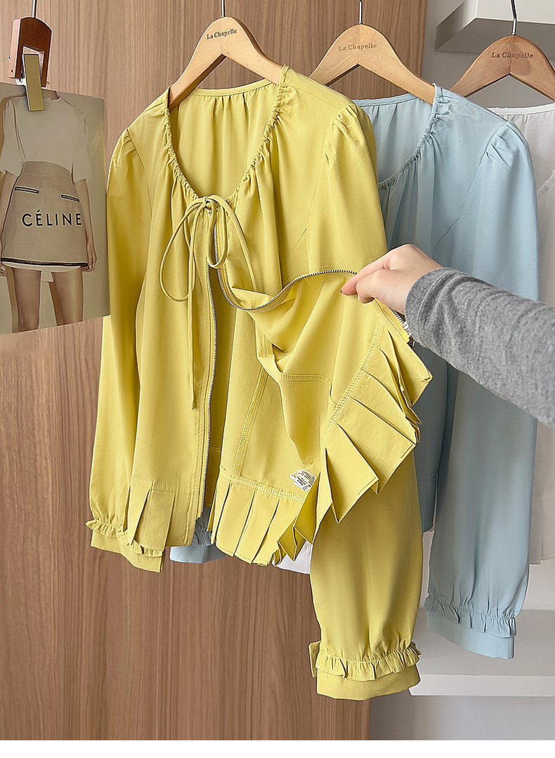 专柜实拍【莱赛尔+麻】拉夏贝尔/La Chapelle圆领系带拉链压褶花边设计长袖上衣百搭甜美风衬衣