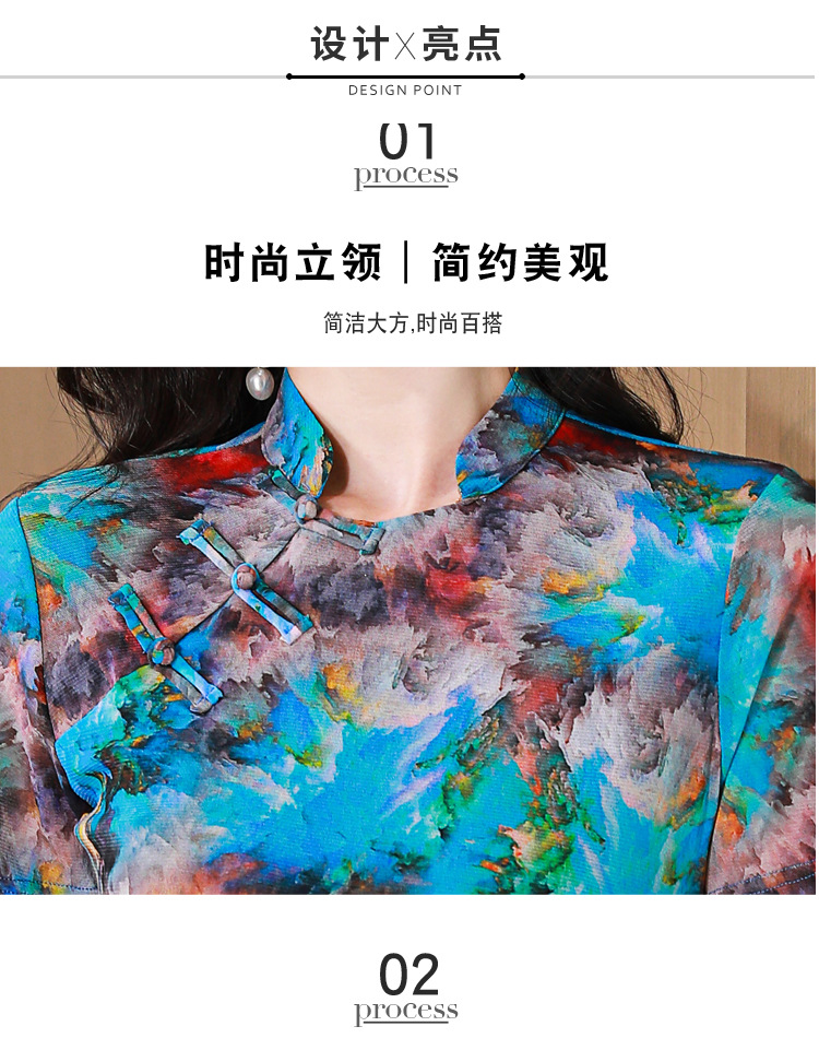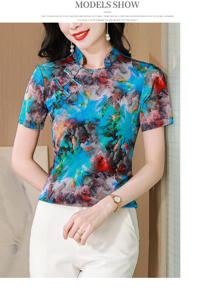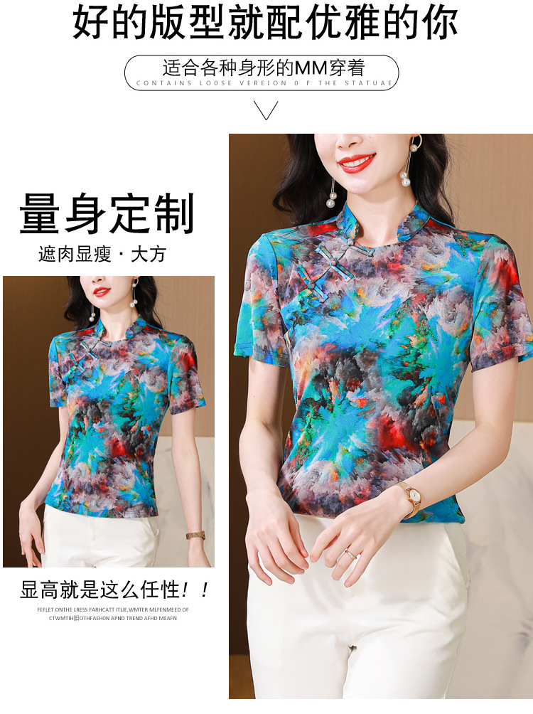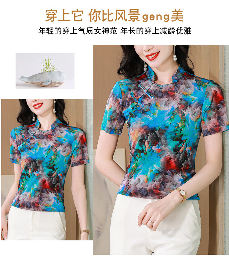 中式国风,网纱立领印花拼接盘扣上衣KQL-520N9986