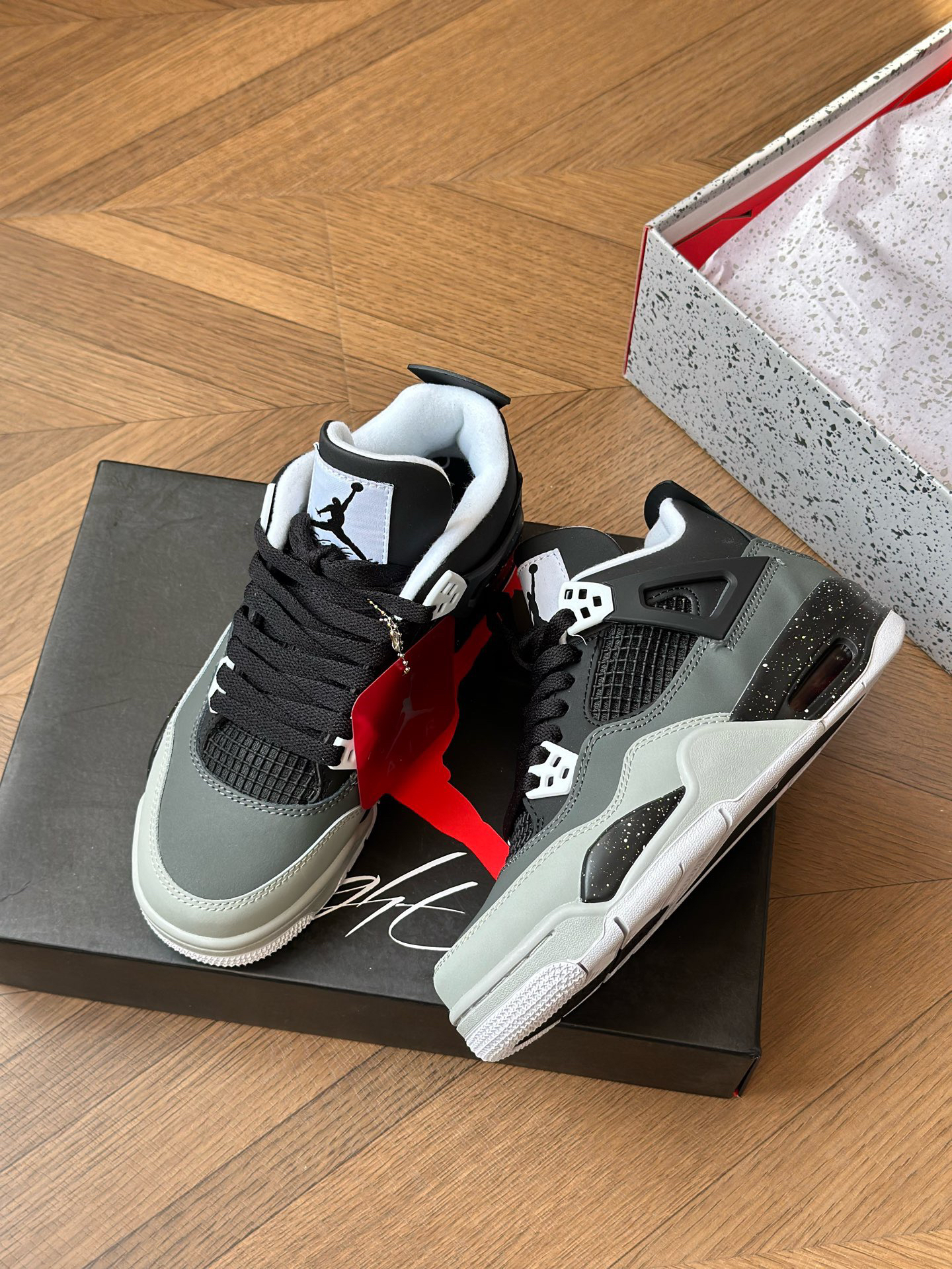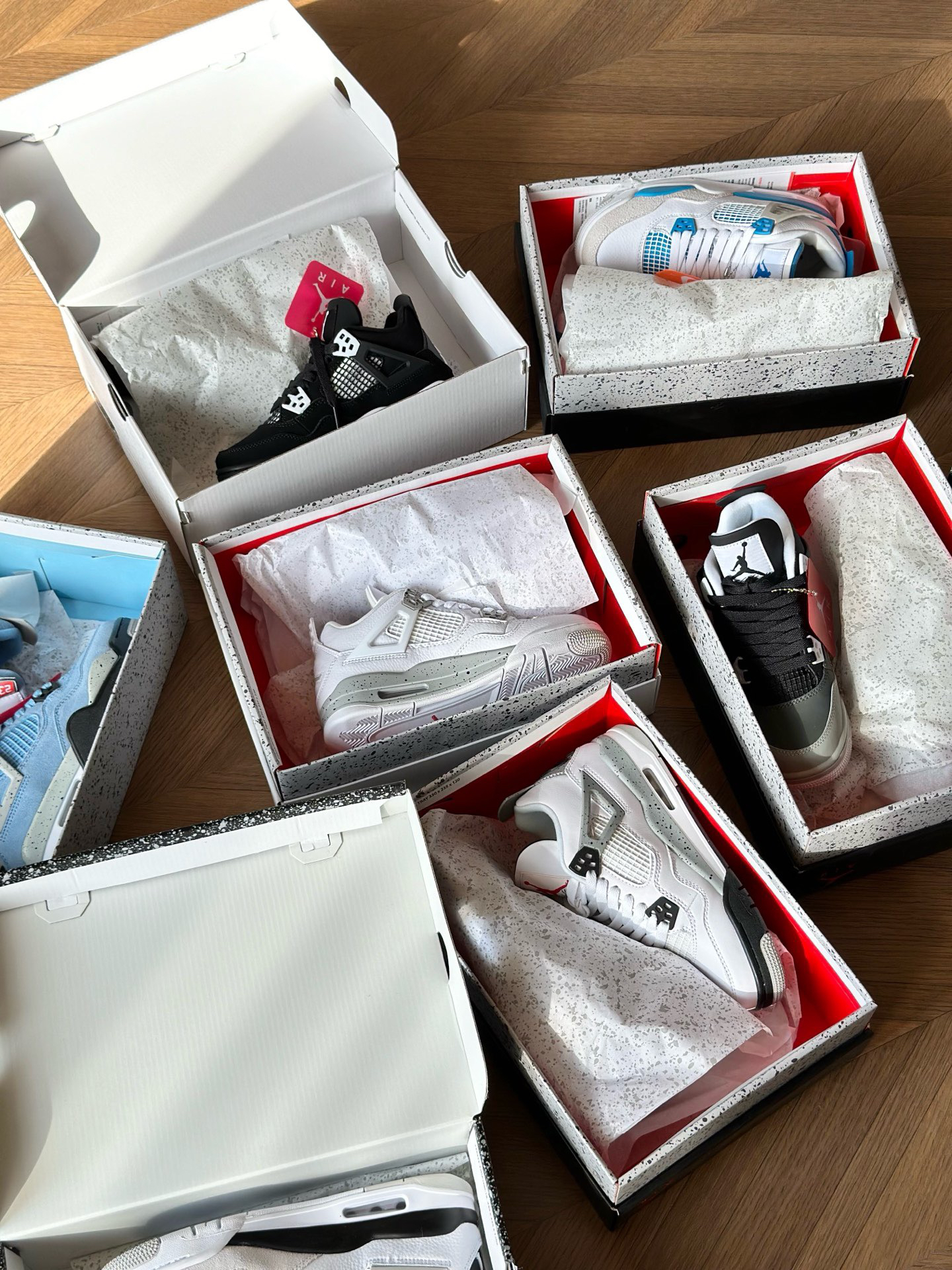 黑白配色🐼上脚会更百搭一点,参考之前黄红雷公配色也都在慢慢溢价,所以不用我说了吧~AJ4在鞋面设计上采用了皮质和尼龙网面相结合~