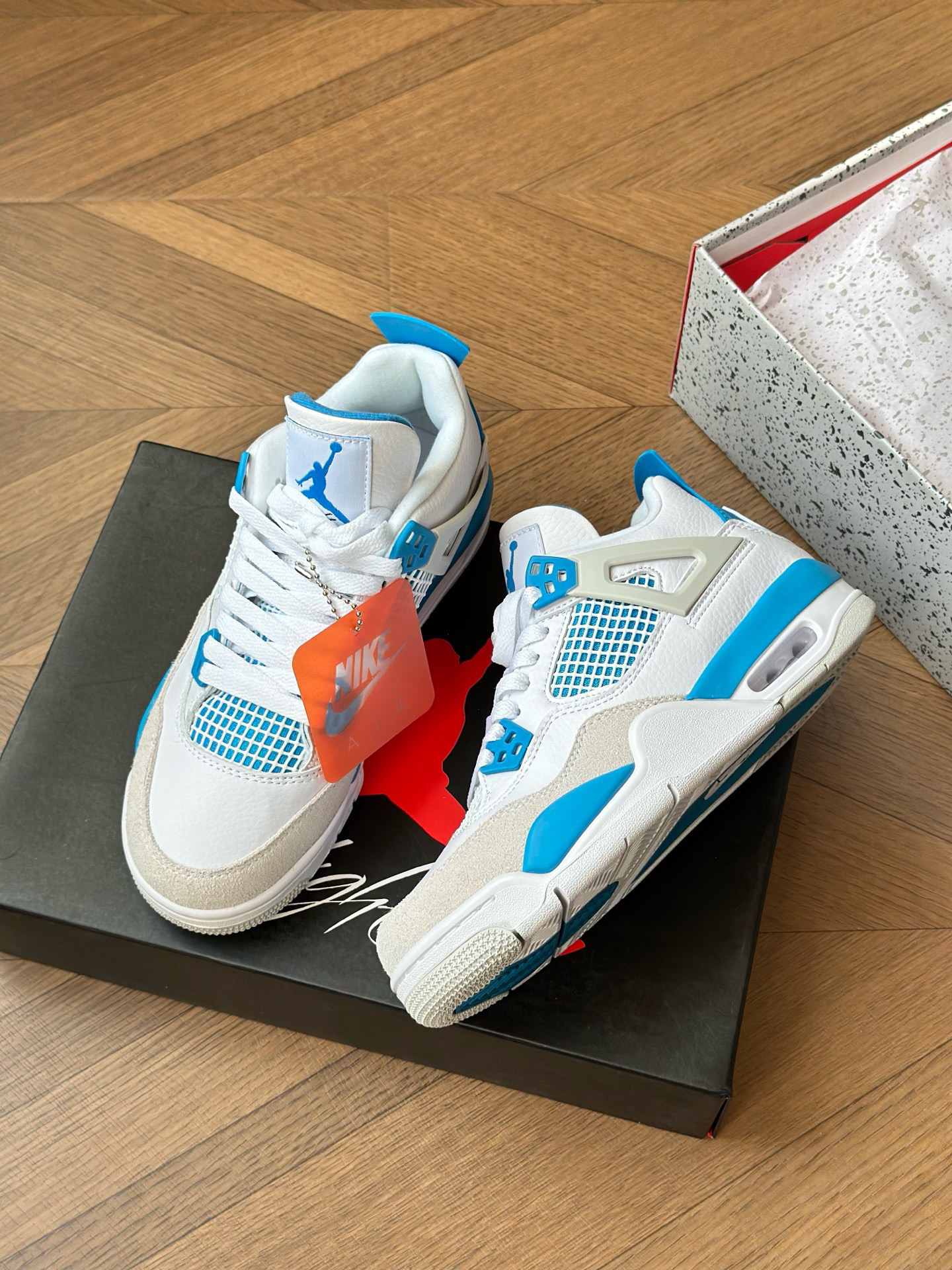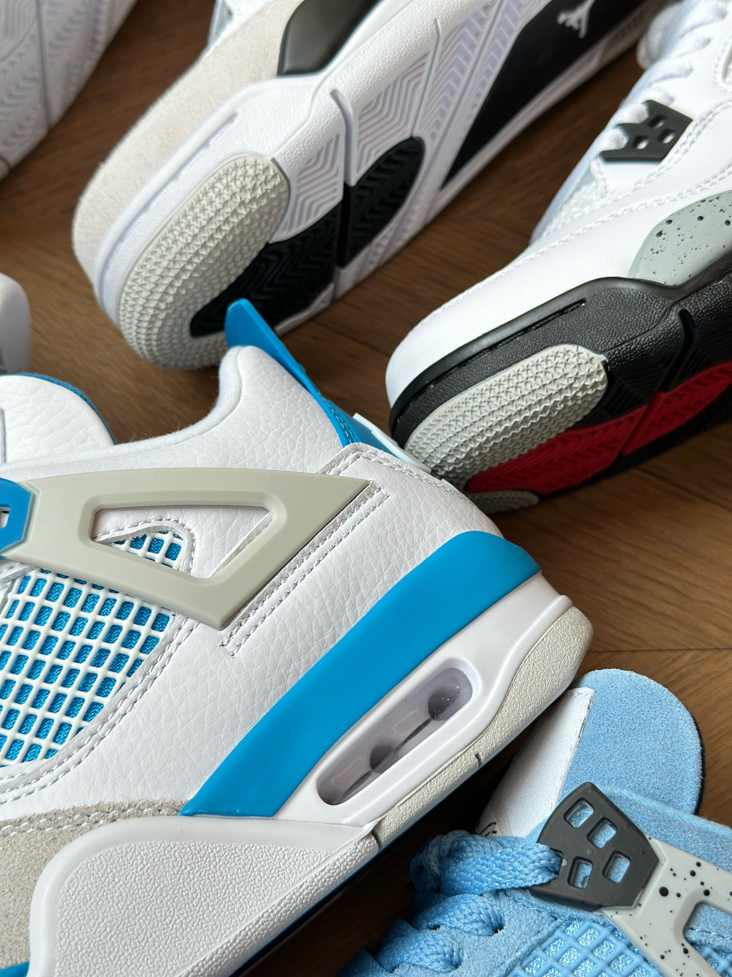 第一款:大学蓝!采用酷似 Travis Scott 联名的蓝色装扮细节处搭配黑色以及灰色,这个配色真的是既百搭又好看,大学蓝本身就是为数不多的不会踩雷的配色,加注在aj4上真的是颜值拉满。