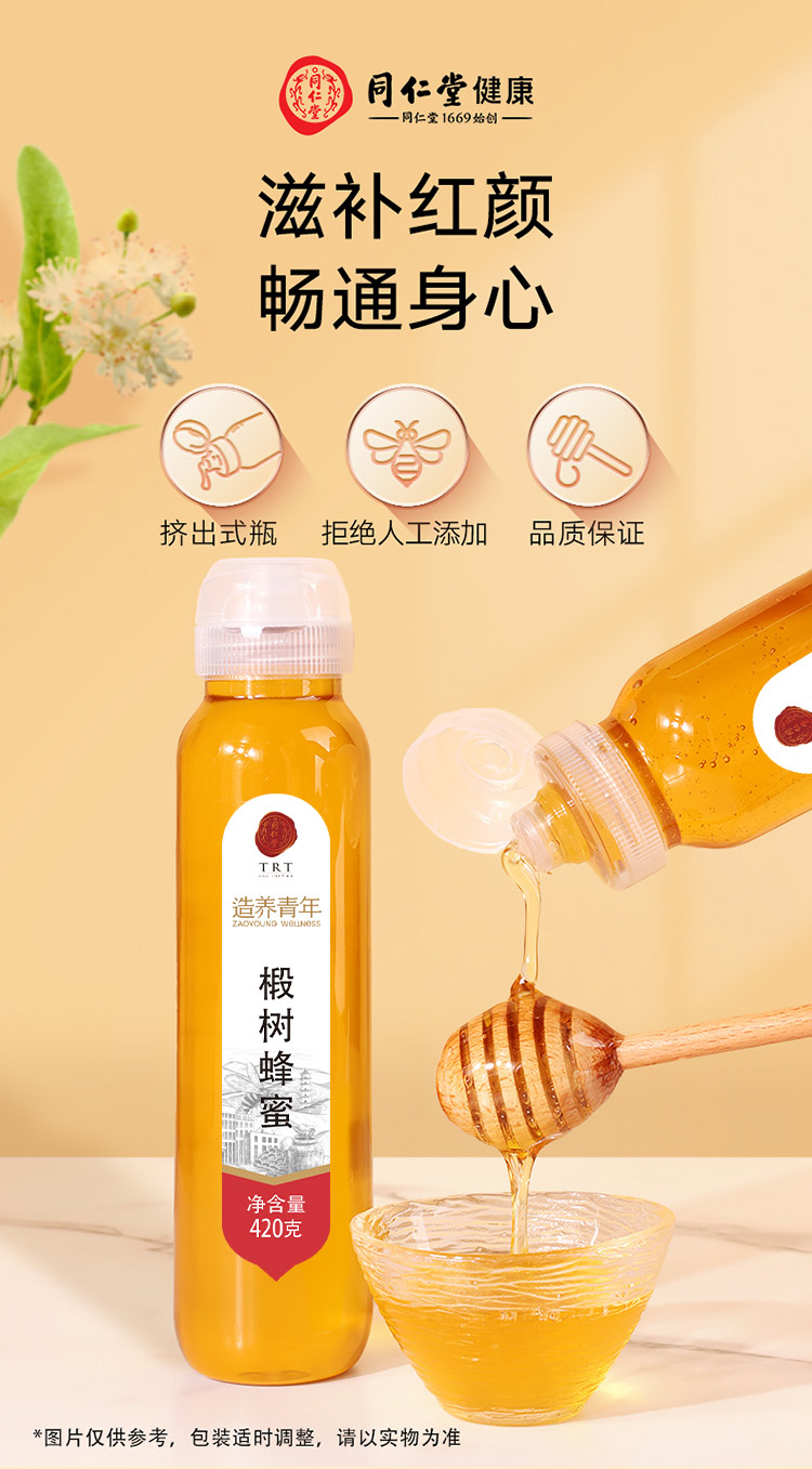 【正宗同仁堂品牌】北京同仁堂 椴树蜂蜜420克 纯蜂蜜拒绝添加掺杂 浓稠滋补 便携小瓶装挤压不沾手SY