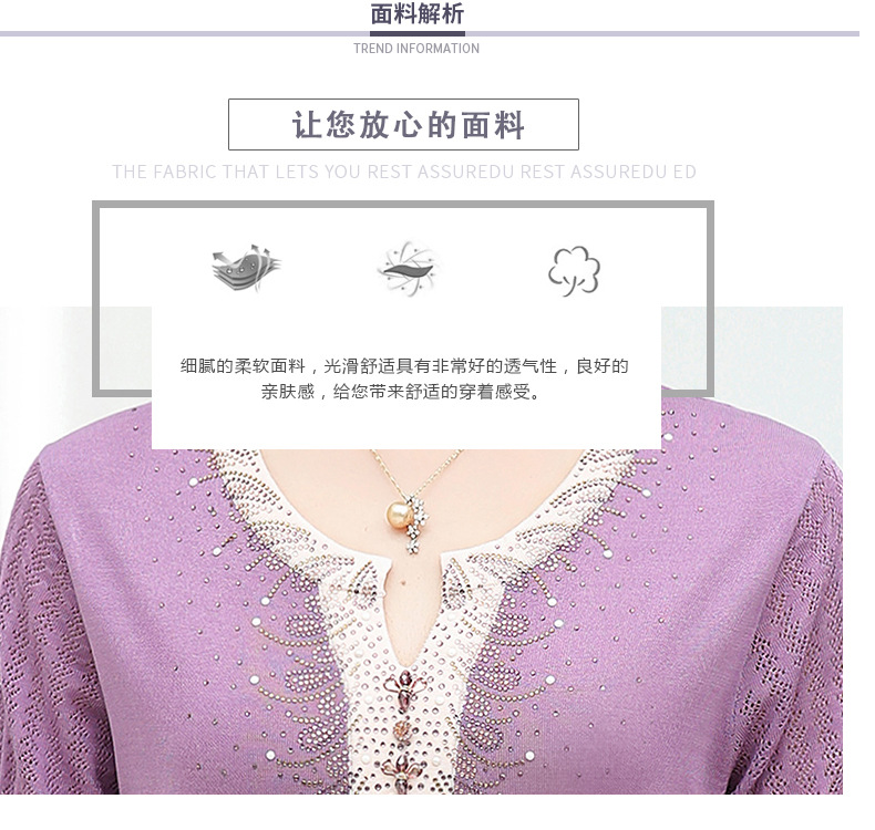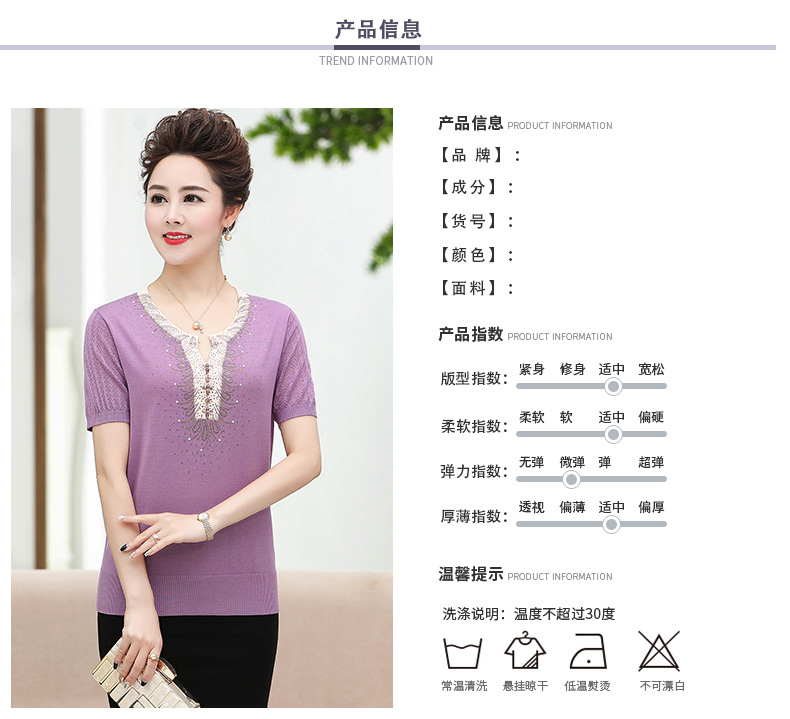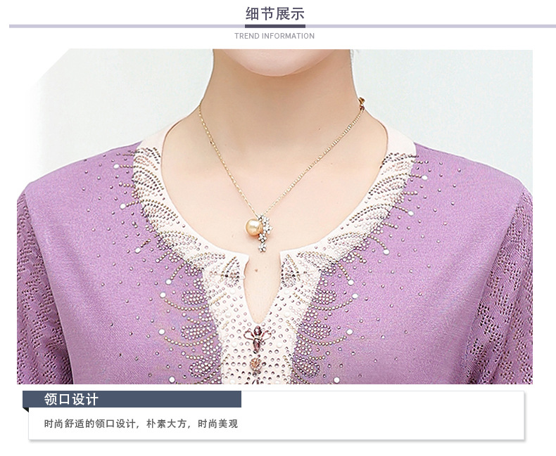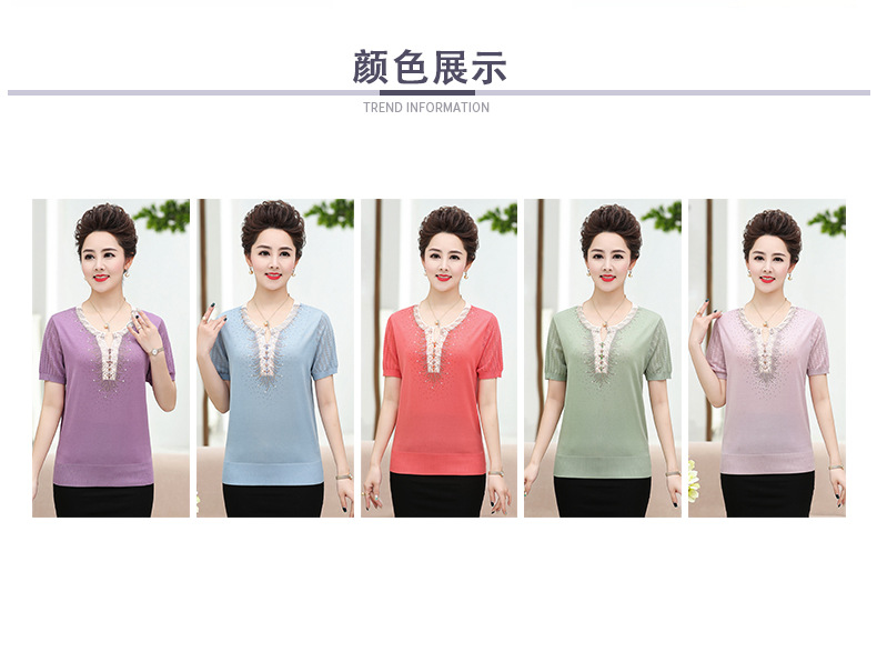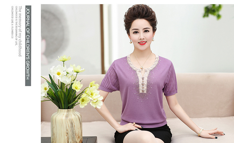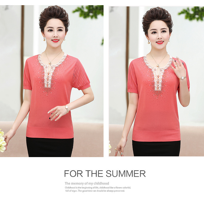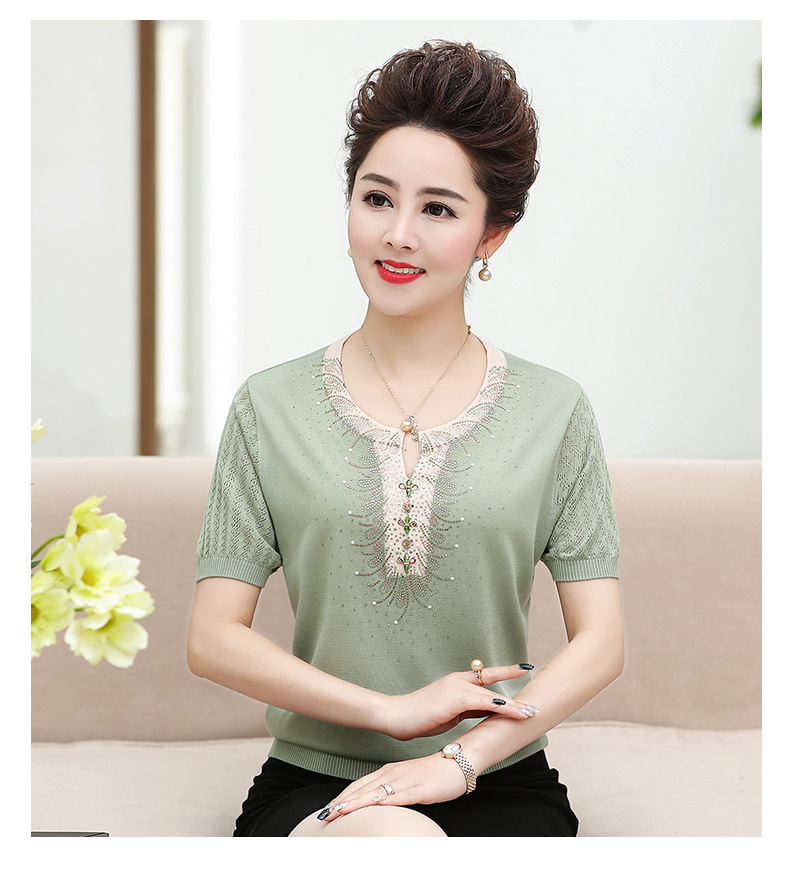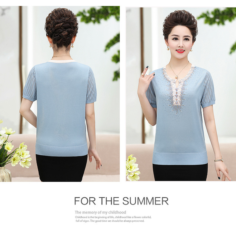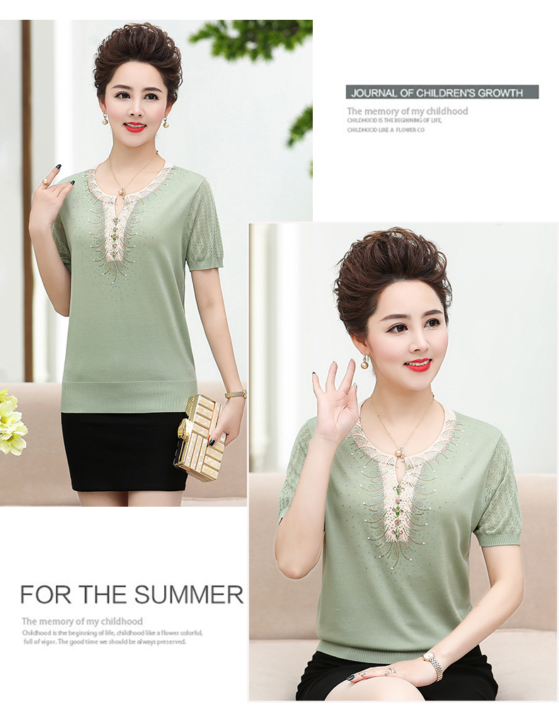 QYY-xx1901时尚妈妈装大码宽松镶钻冰丝短袖针织衫