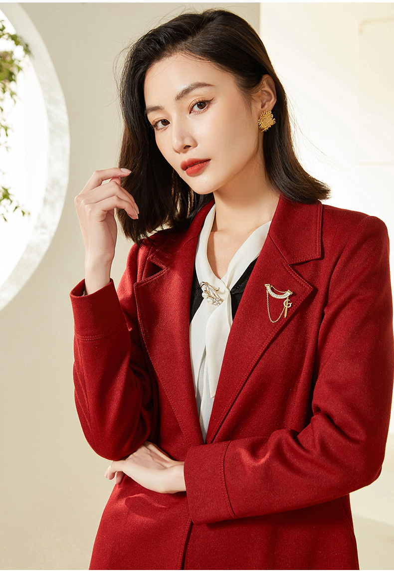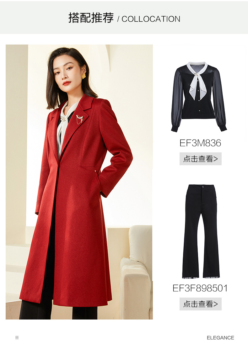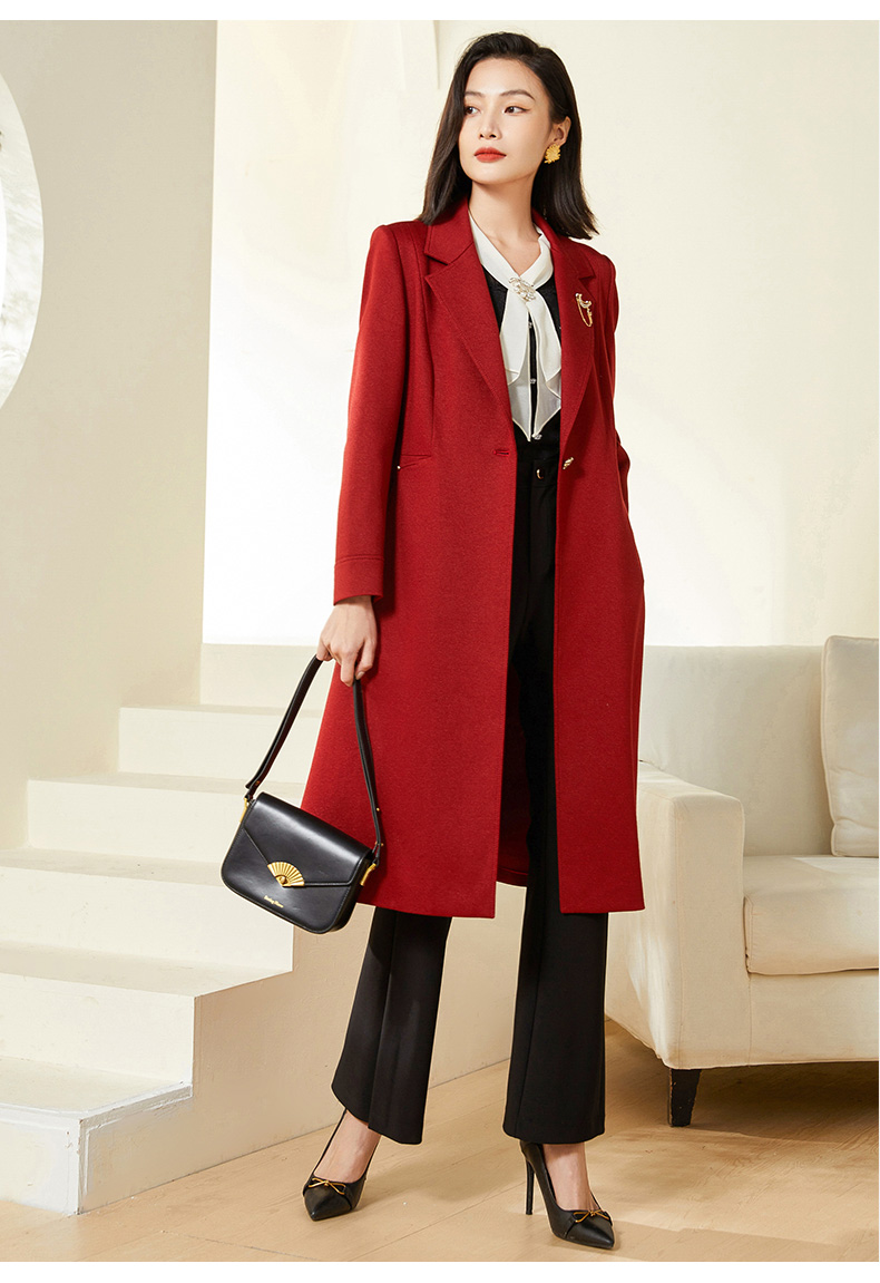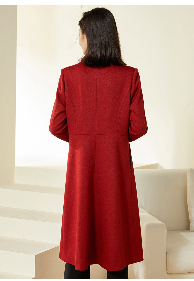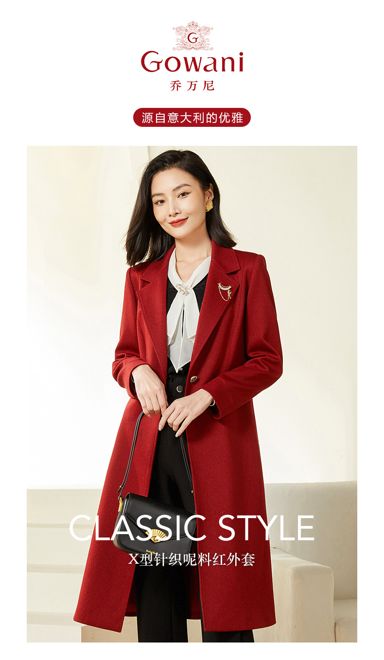 乔万尼外套女春款新款呢料风衣收腰中长款红色EF3A848