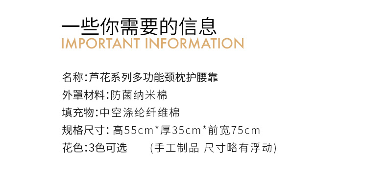 芦花系列多功能颈枕护腰靠床头靠垫软包大靠背高级感腰靠卧室可拆洗