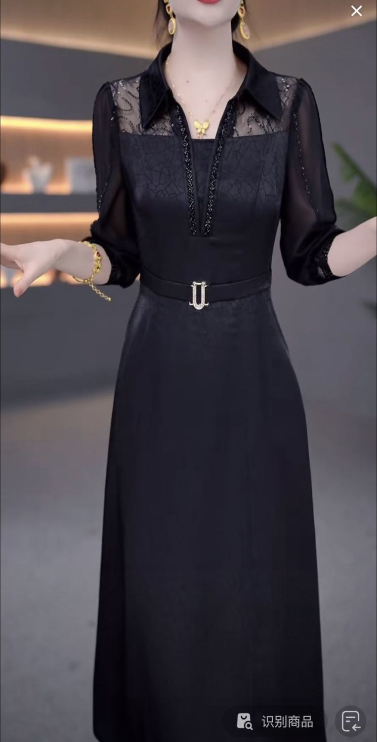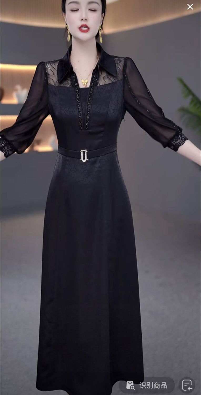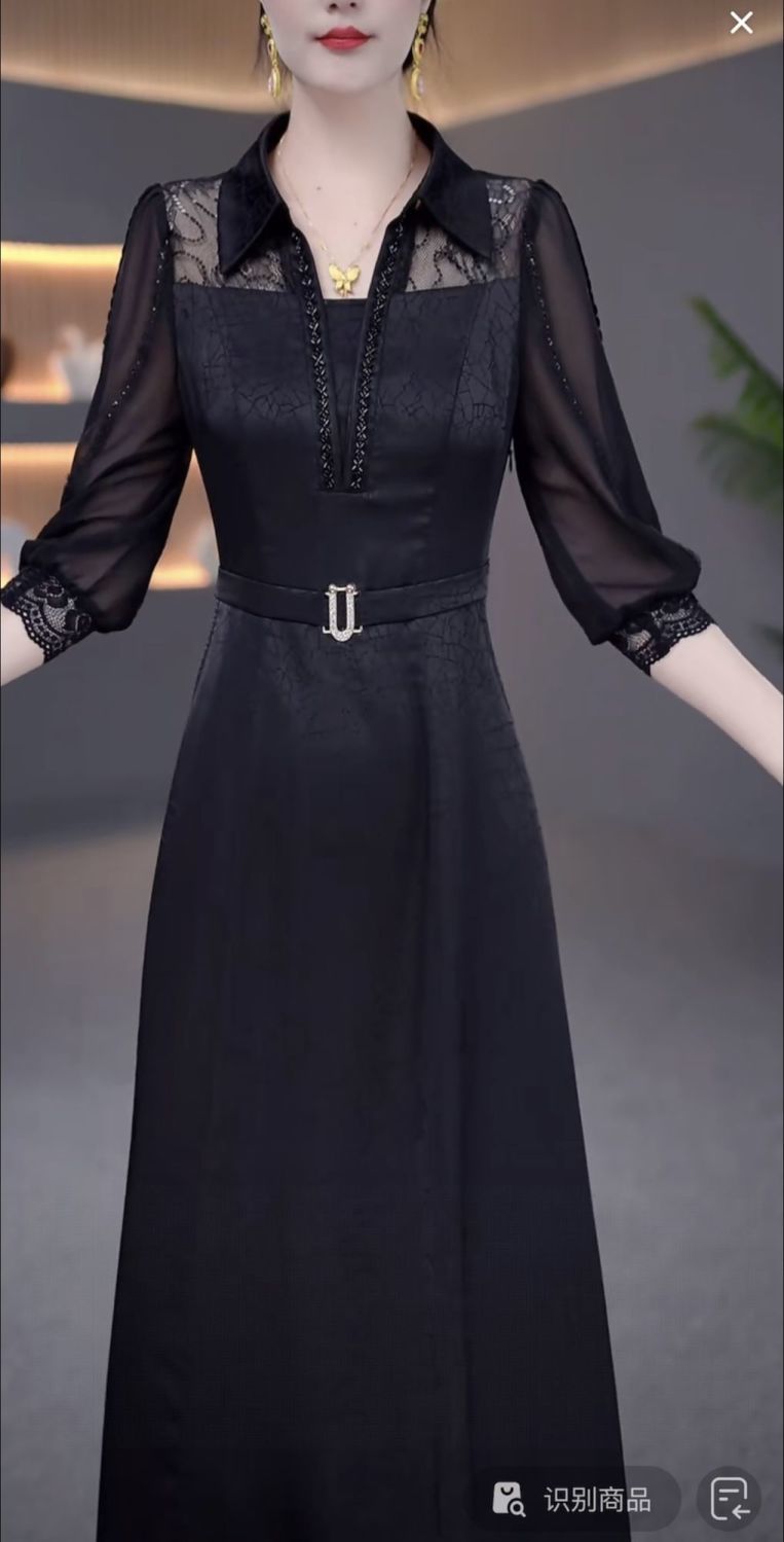 QYM 25MYY2163七分袖连衣裙气质收腰显瘦妈妈中长款裙