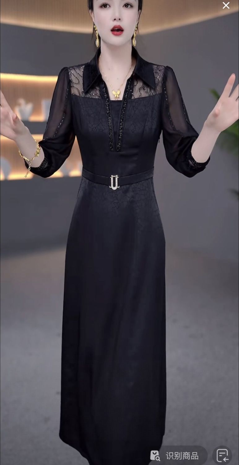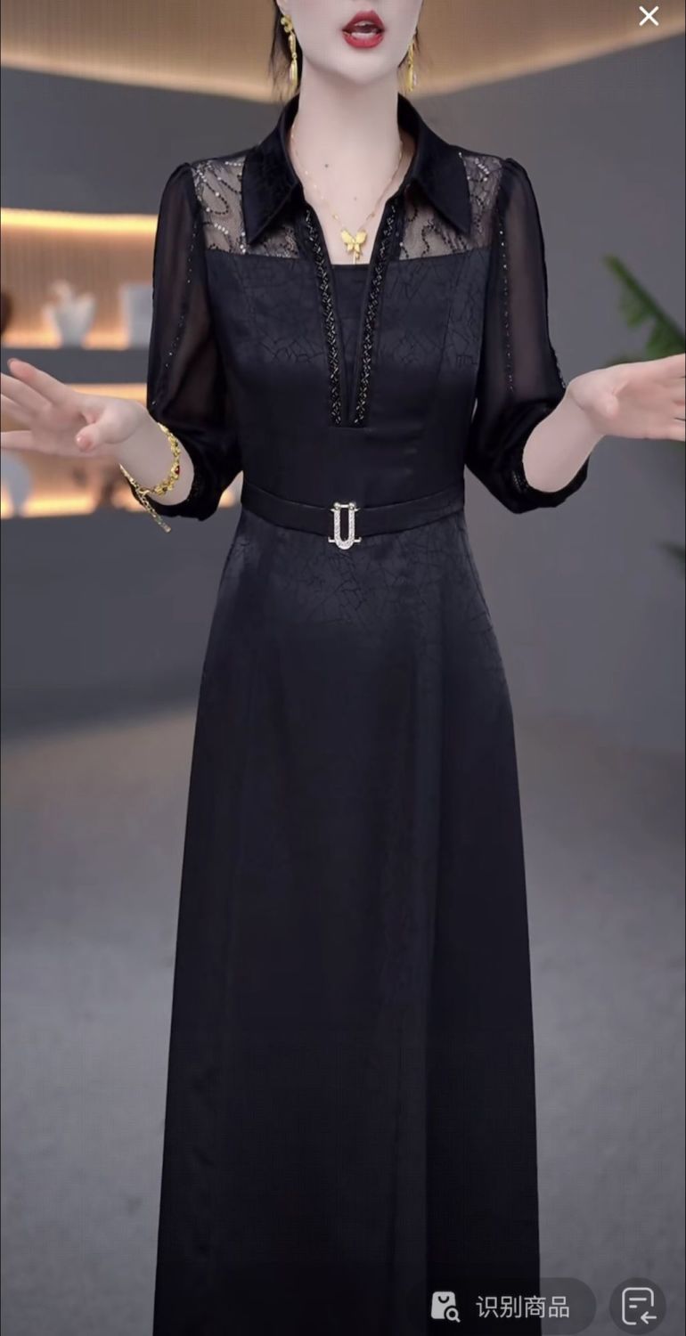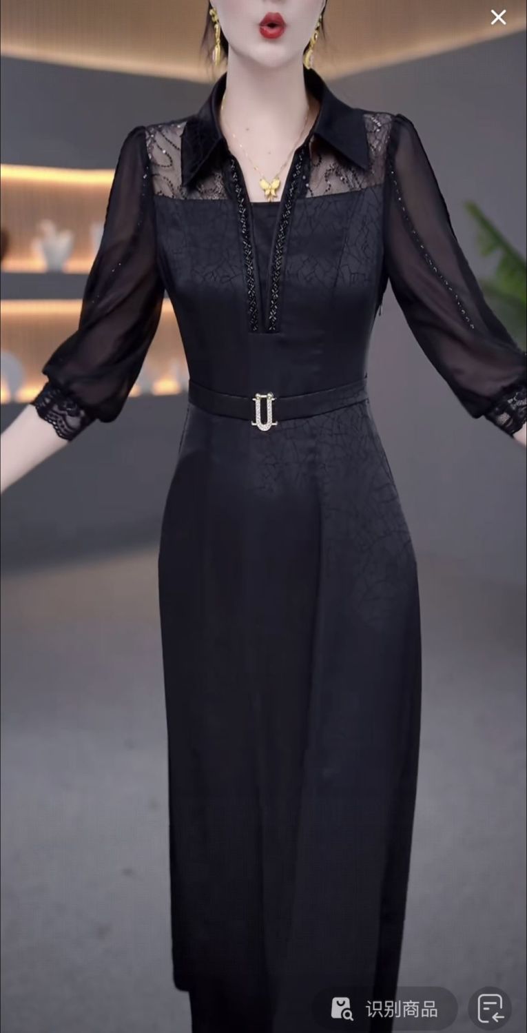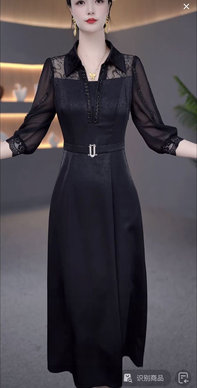 QYM 25MYY2163七分袖连衣裙气质收腰显瘦妈妈中长款裙