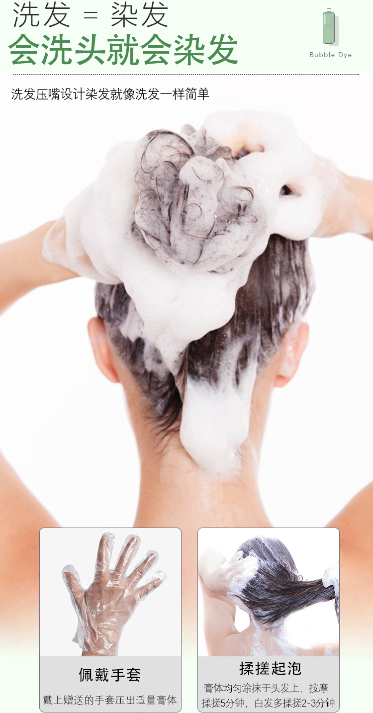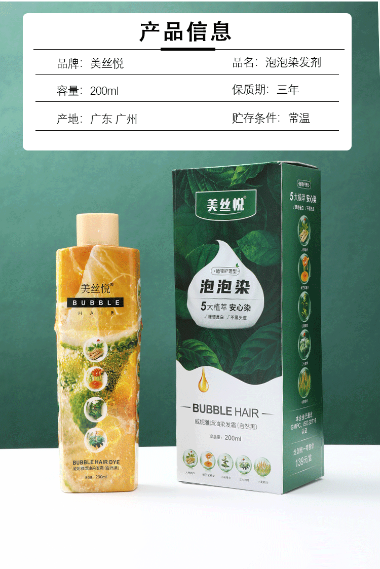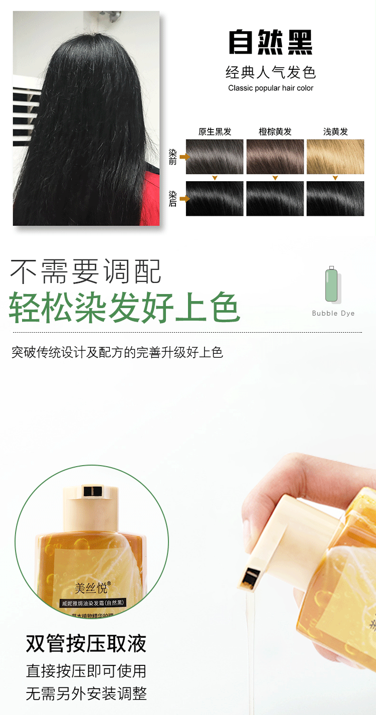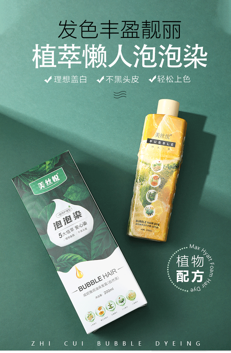 抖音爆品!美丝悦泡泡染染发露植物护理染发膏2021流行色