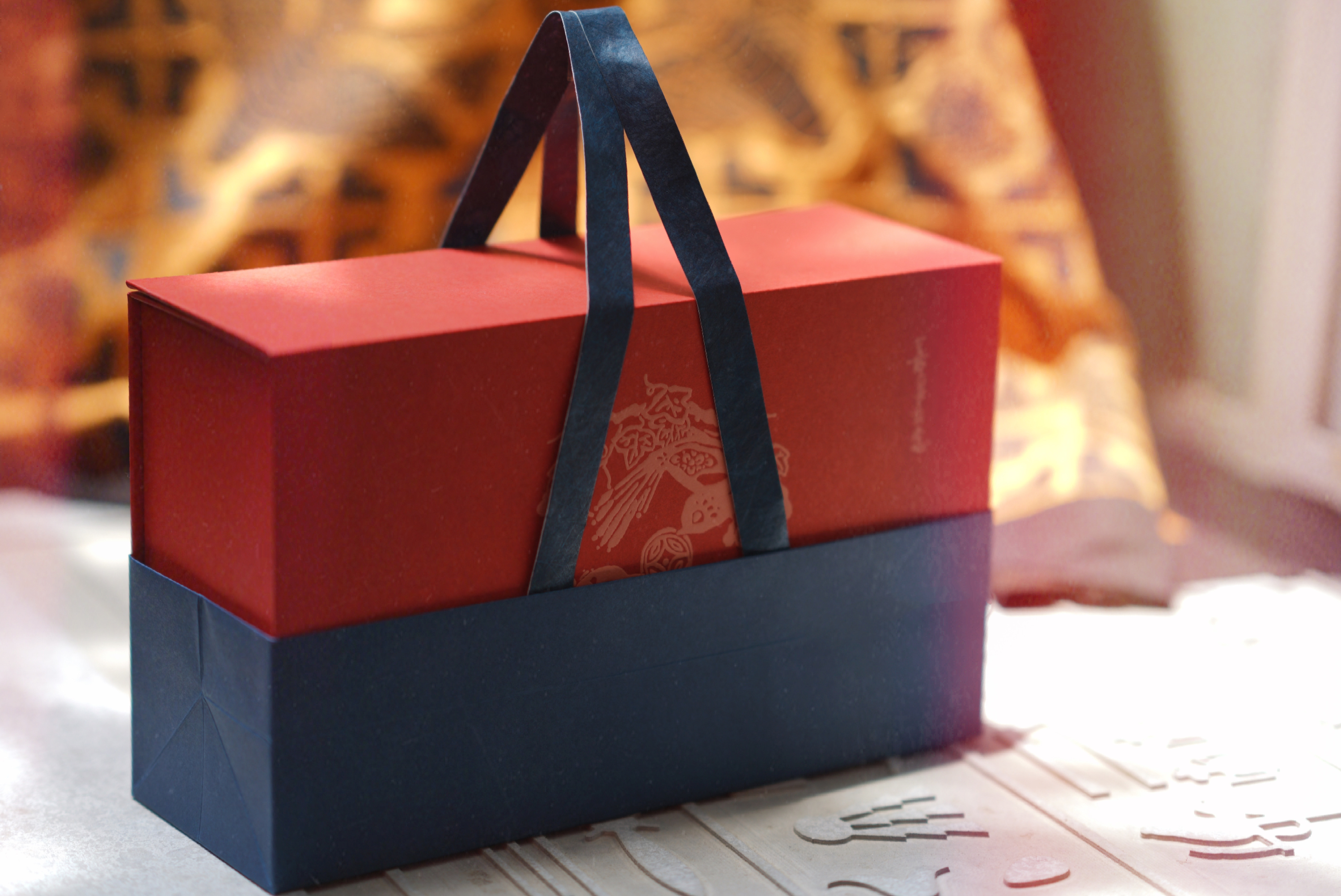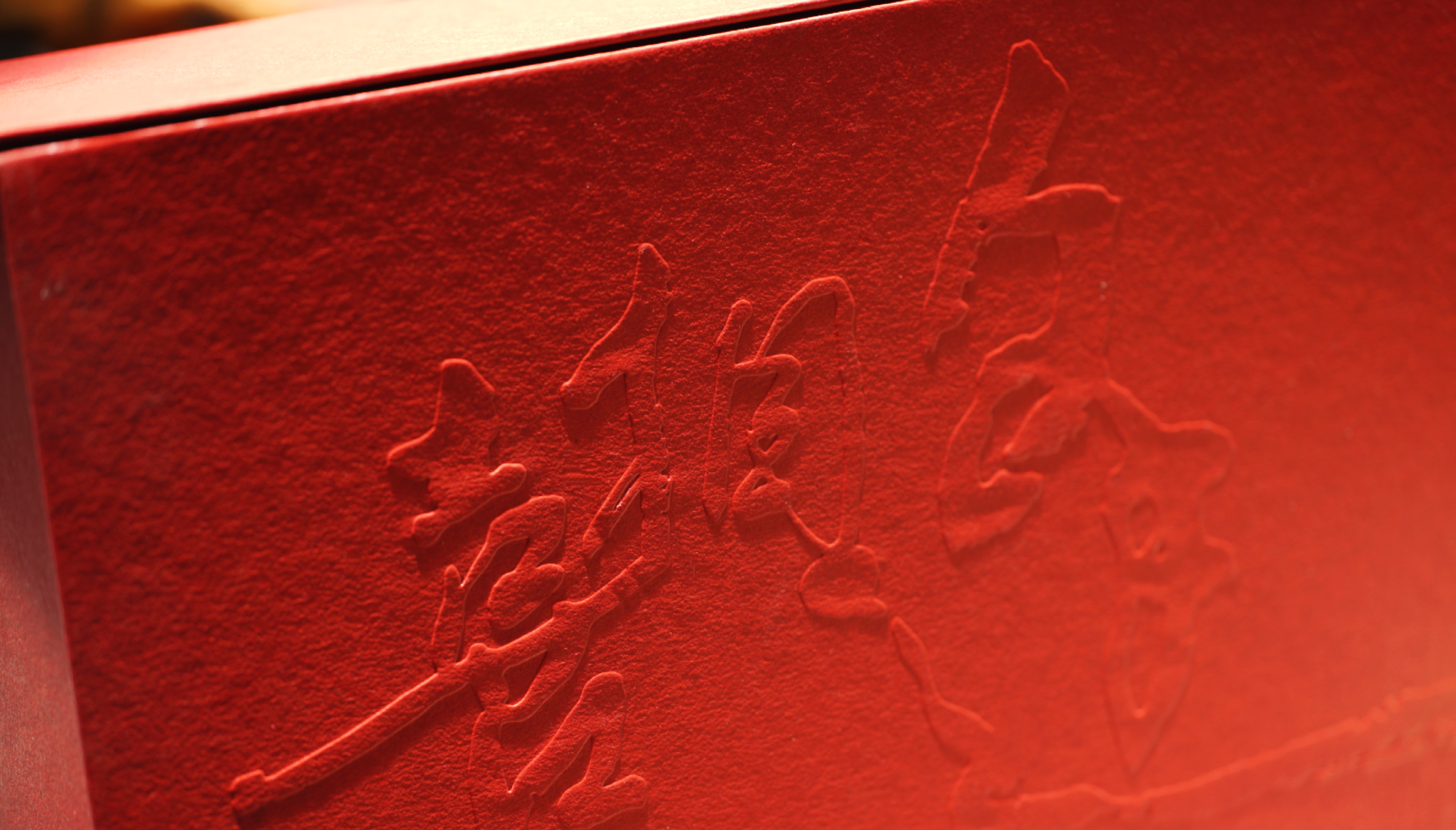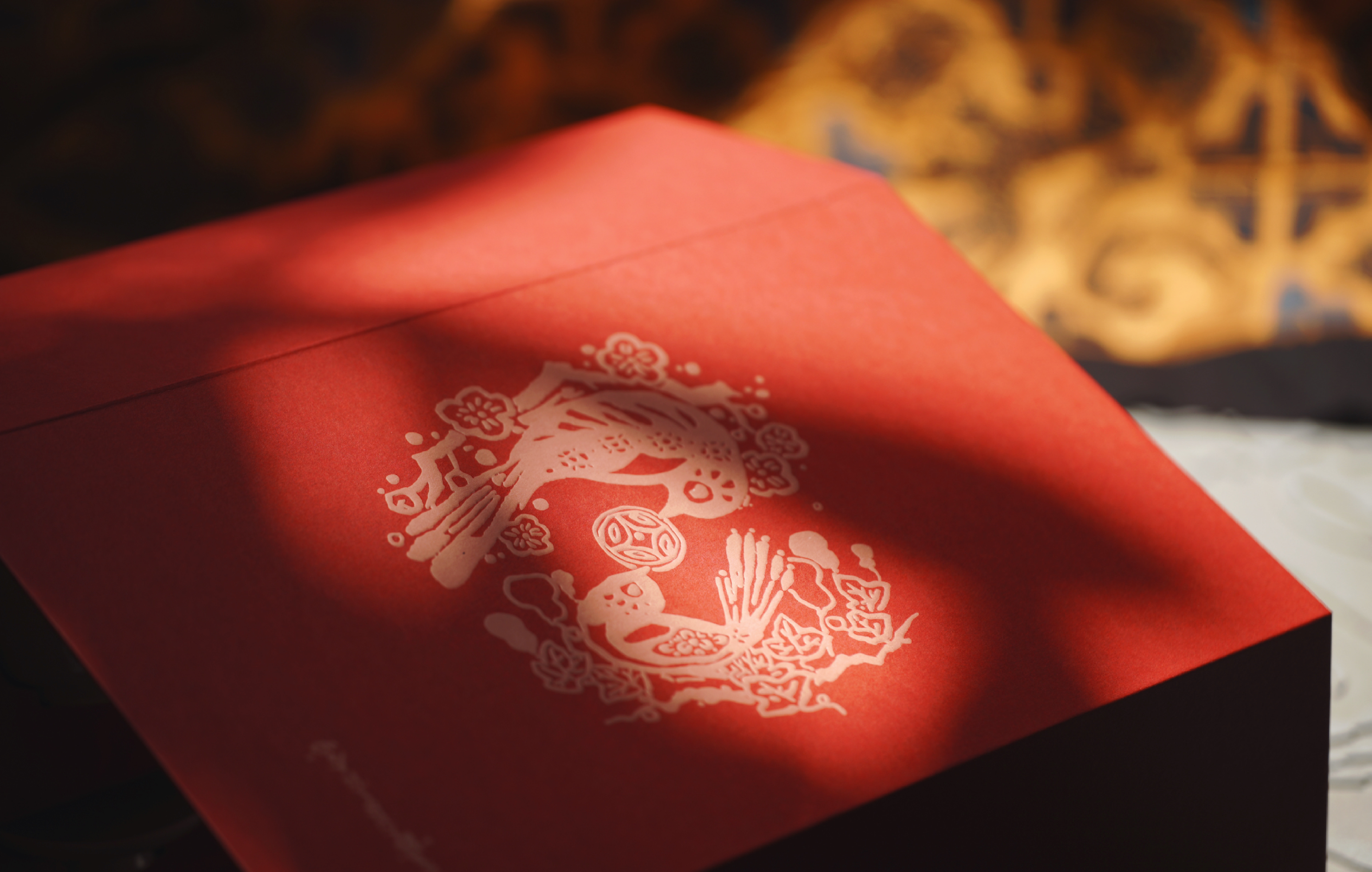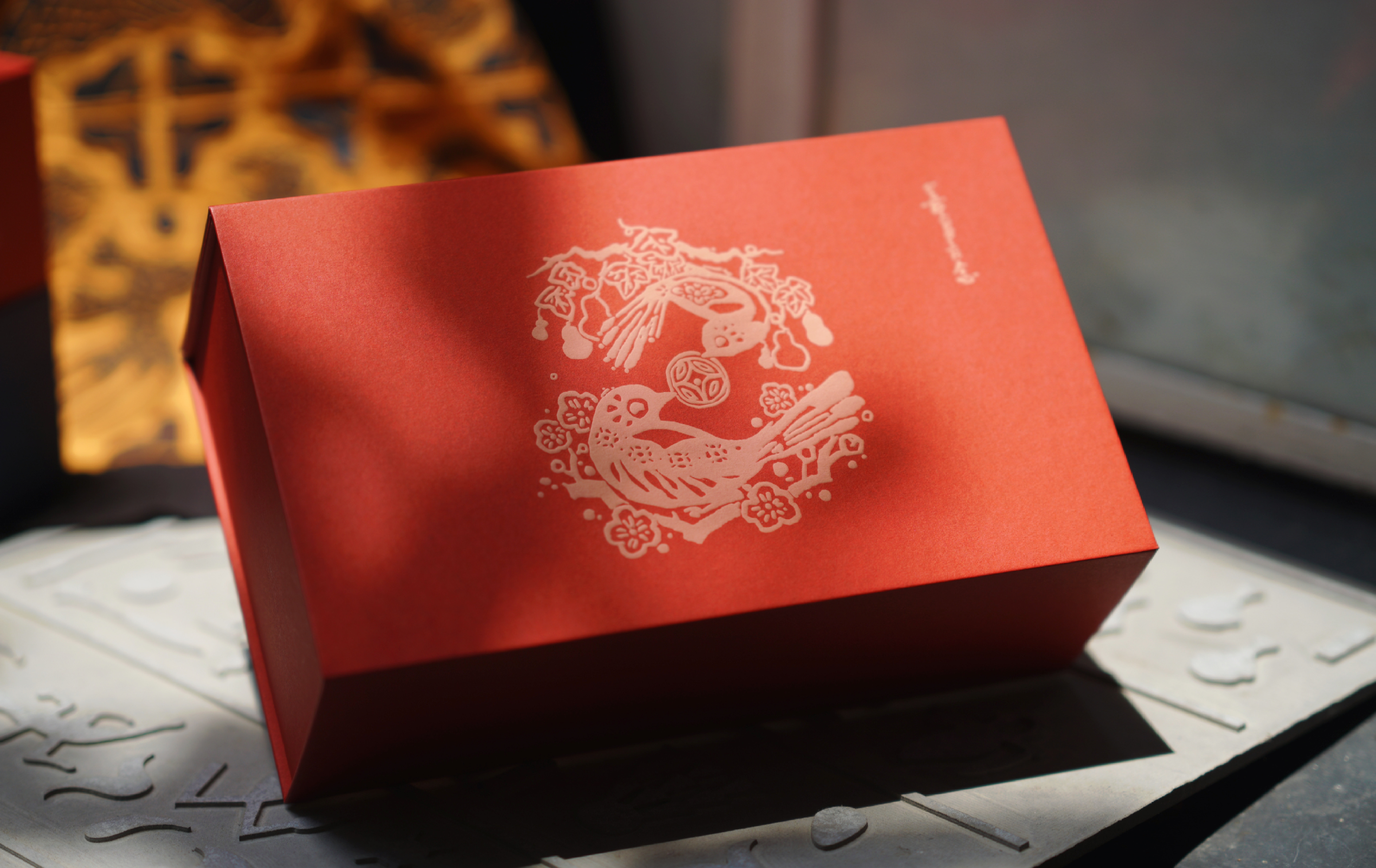 包装外盒采用凸版工艺让画面更灵动,手写“喜相逢”主题