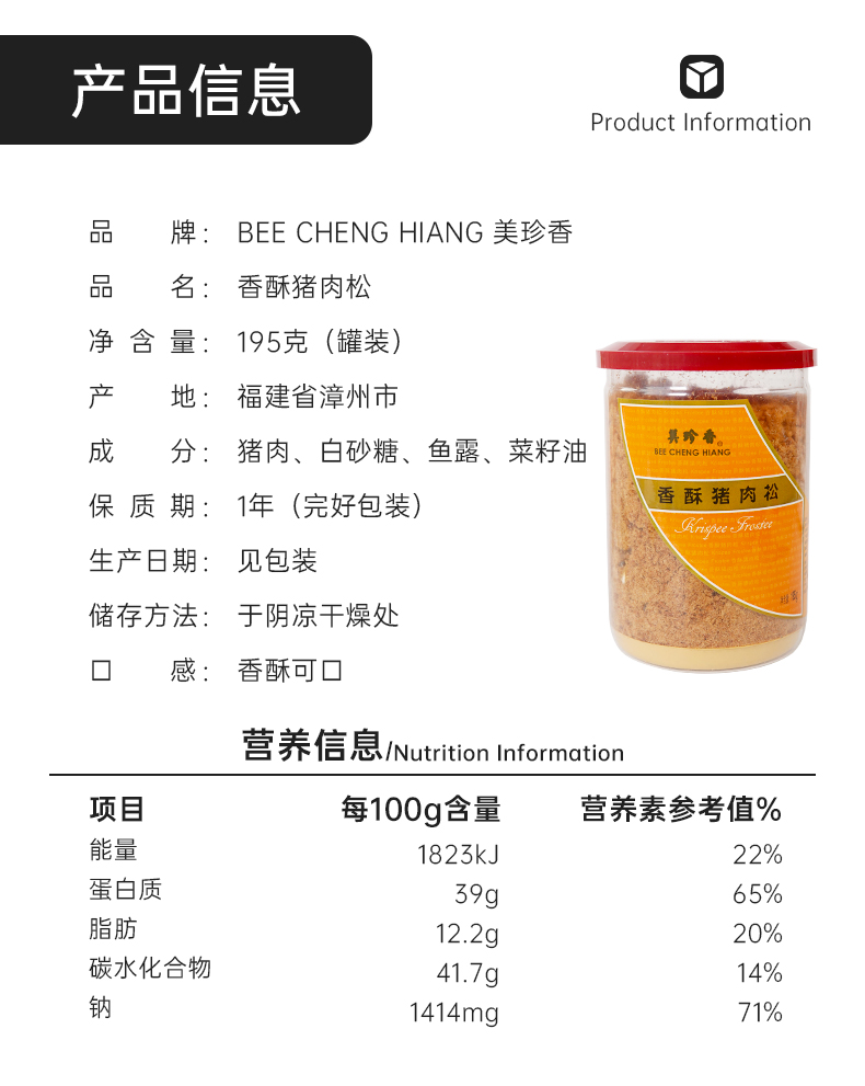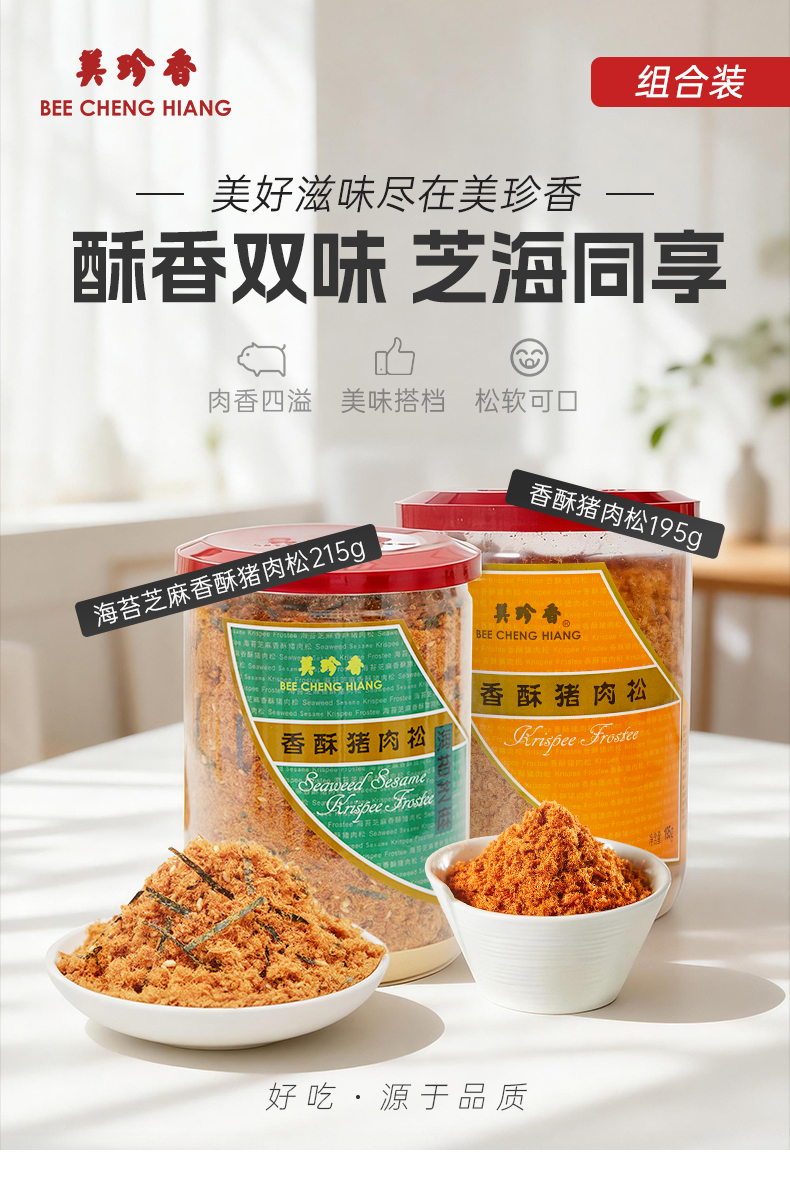 【组合】美珍香 香酥猪肉松195g+海苔芝麻猪肉松215g组合
