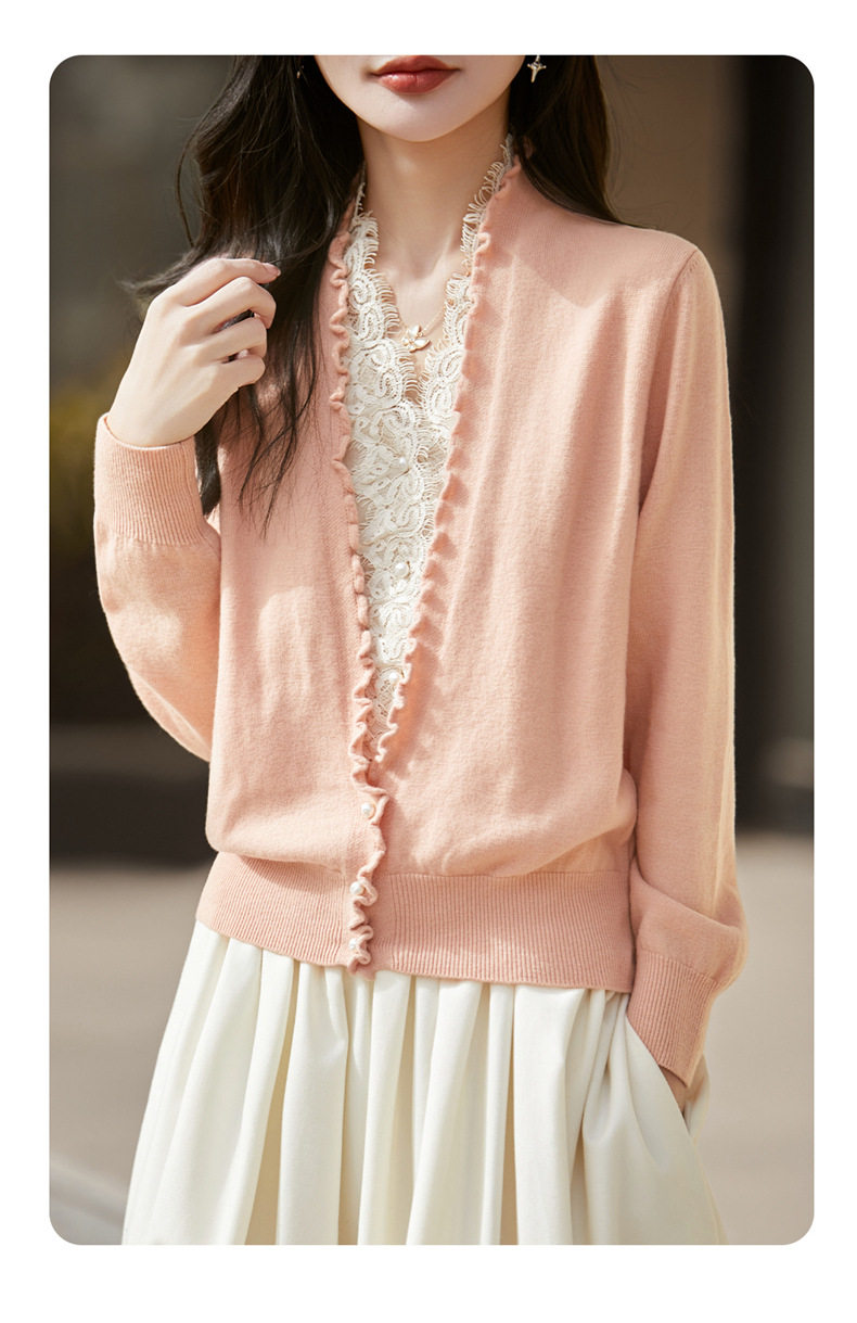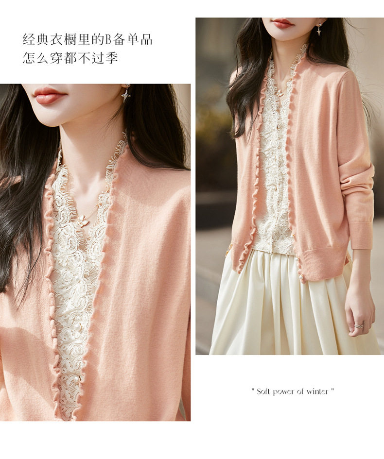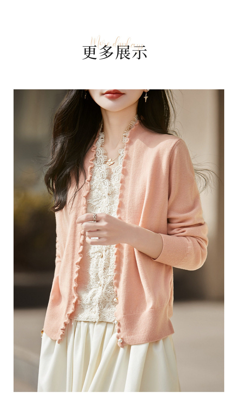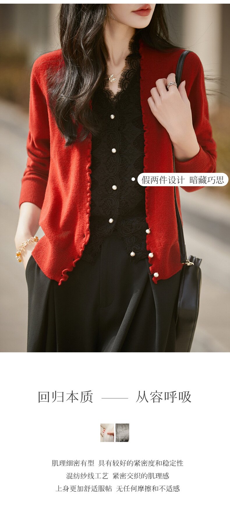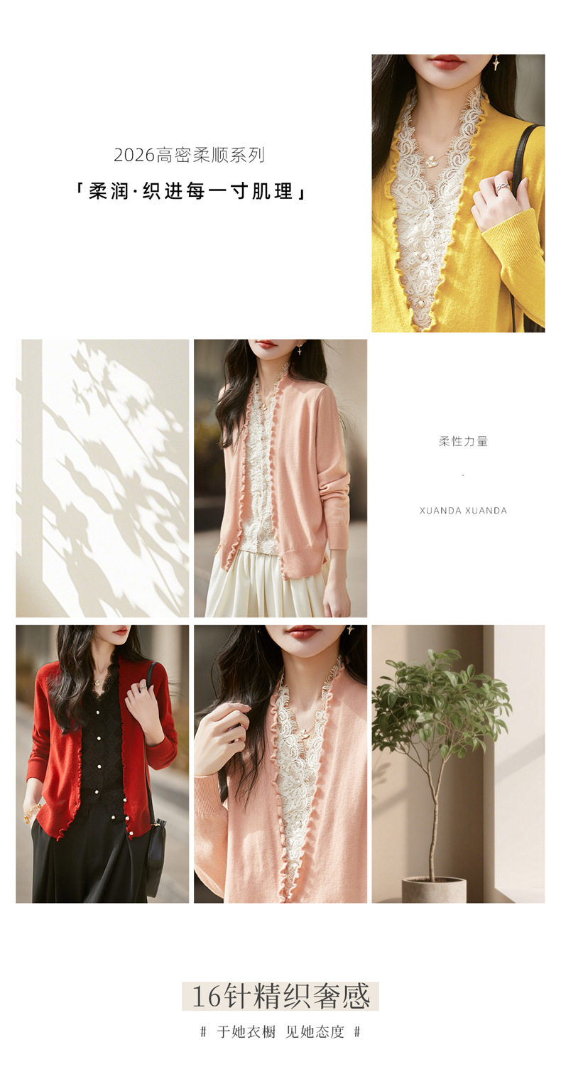 「自」全新升级【铂金会员174/天猫229/差价55】(23234)洛诗琳气质蕾丝拼接假两件上衣2026新款木耳边显瘦针织开衫