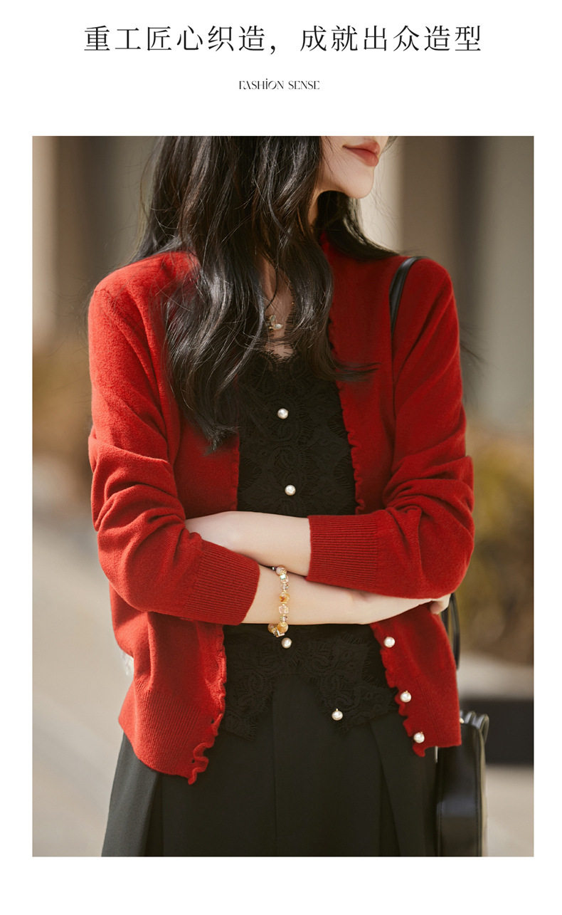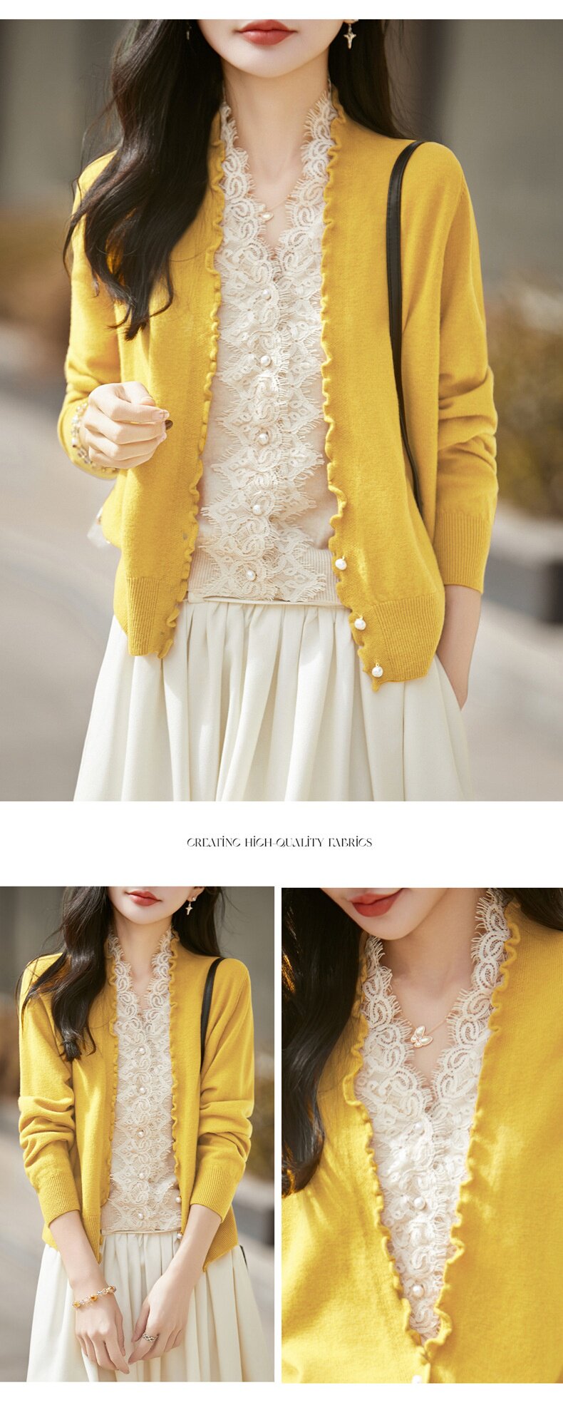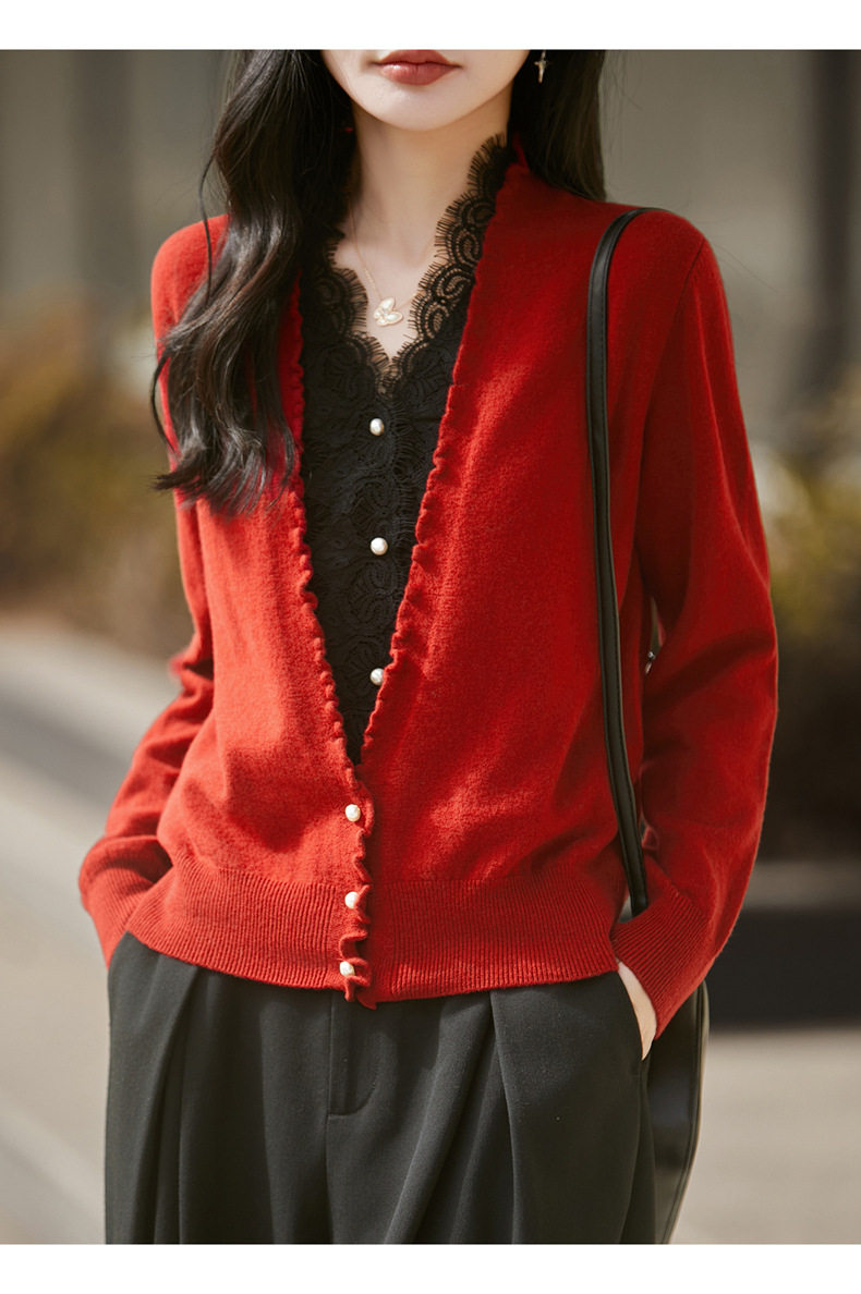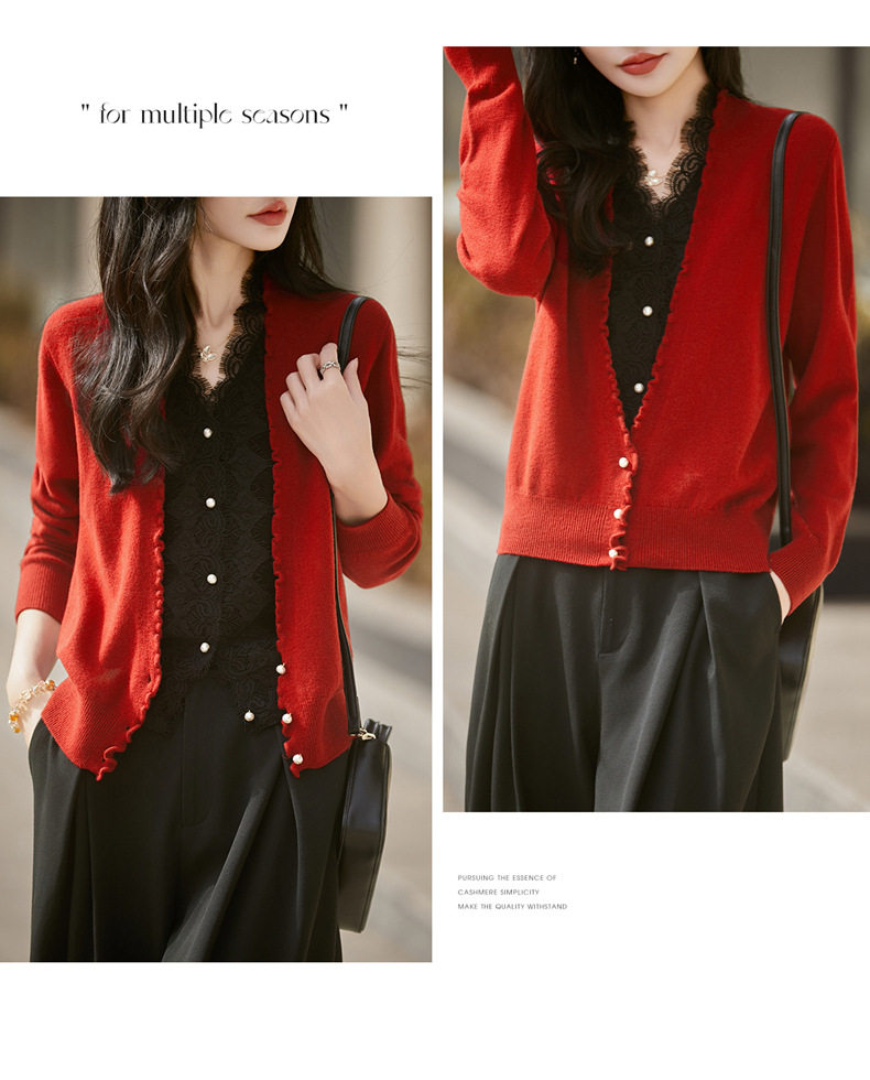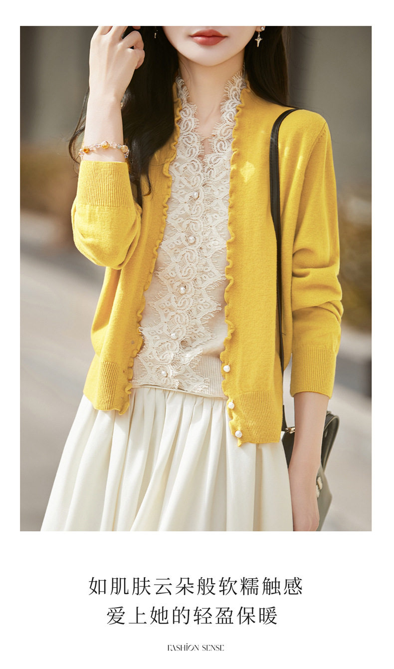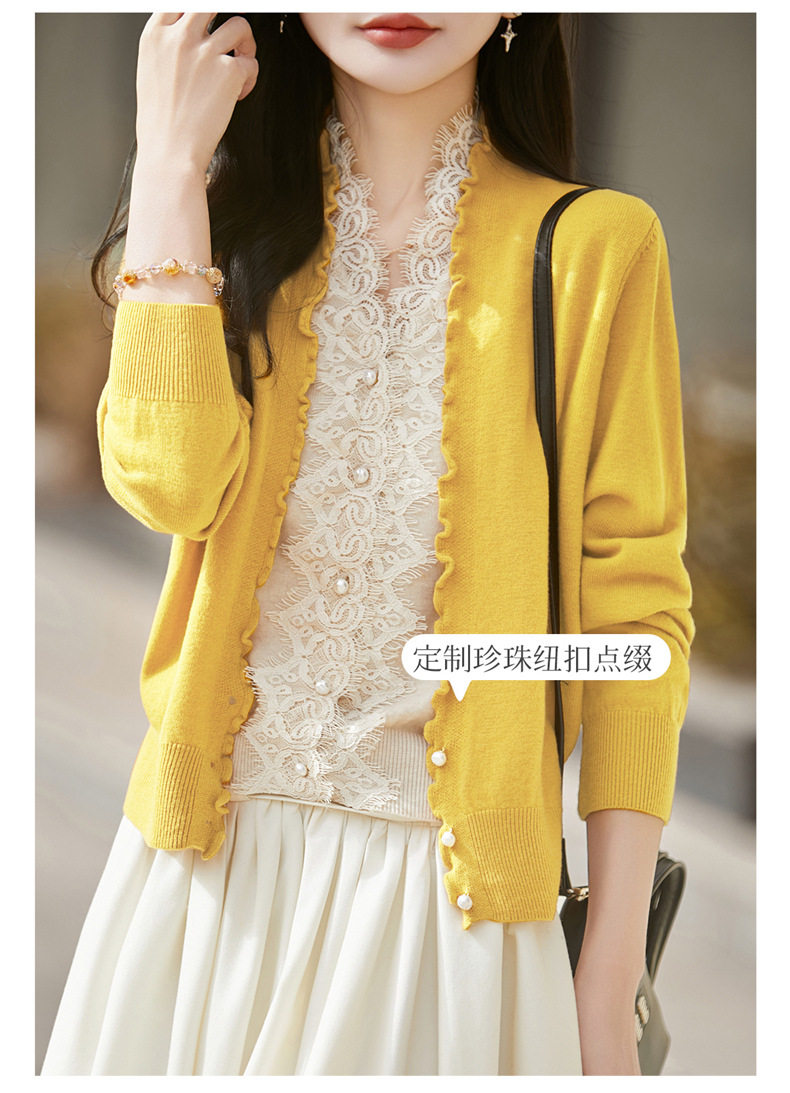 「自」全新升级【铂金会员174/天猫229/差价55】(23234)洛诗琳气质蕾丝拼接假两件上衣2026新款木耳边显瘦针织开衫