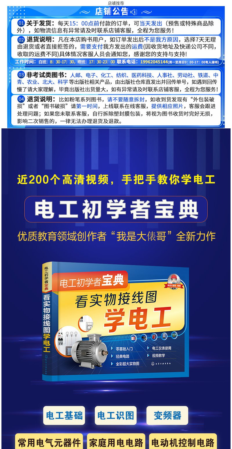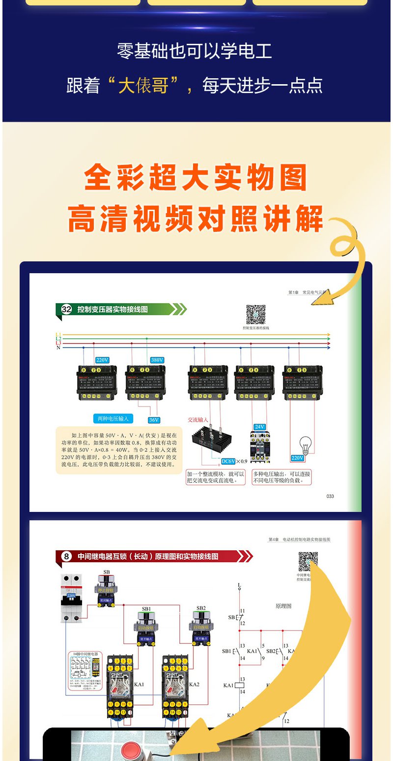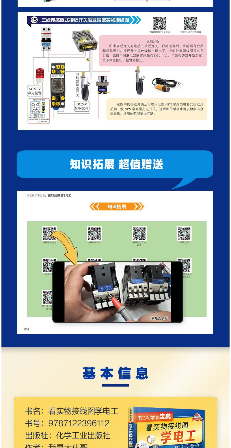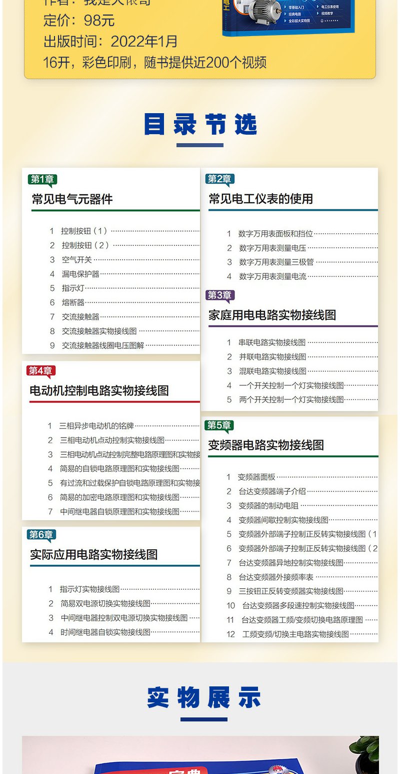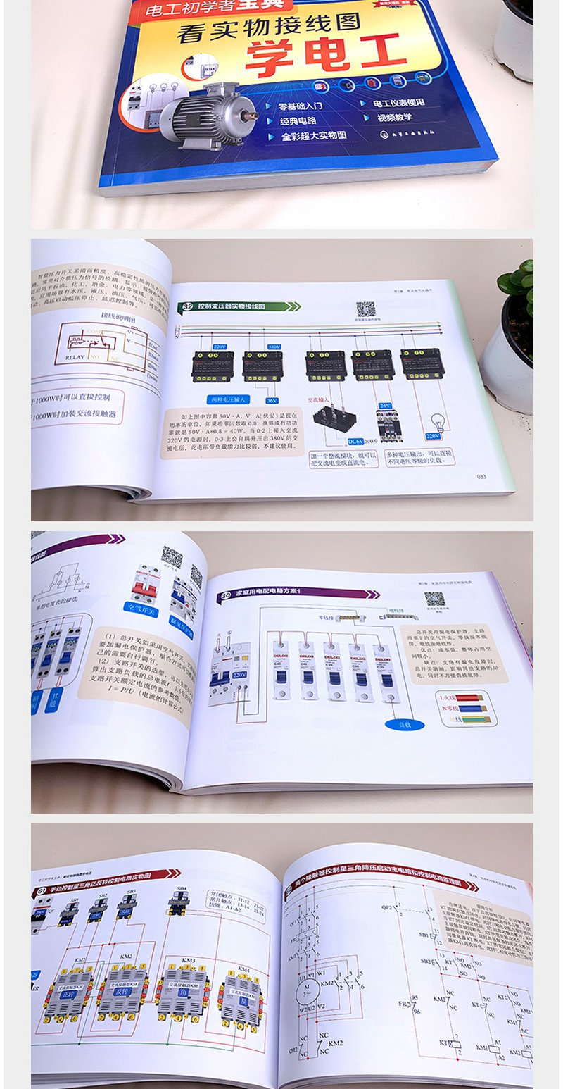 电工初学者宝典 看实物接线图学电工 电工电路入门书籍 电工入门书籍 零基础学电工 电工基础一本通 家庭用电电路一本通 电工入门 无 化学工业出版社 9787122396112