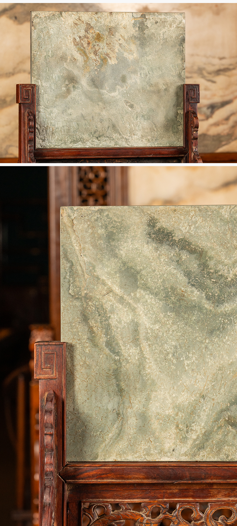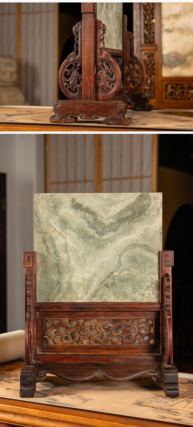 清 黄花梨镶云石砚屏(一对)
