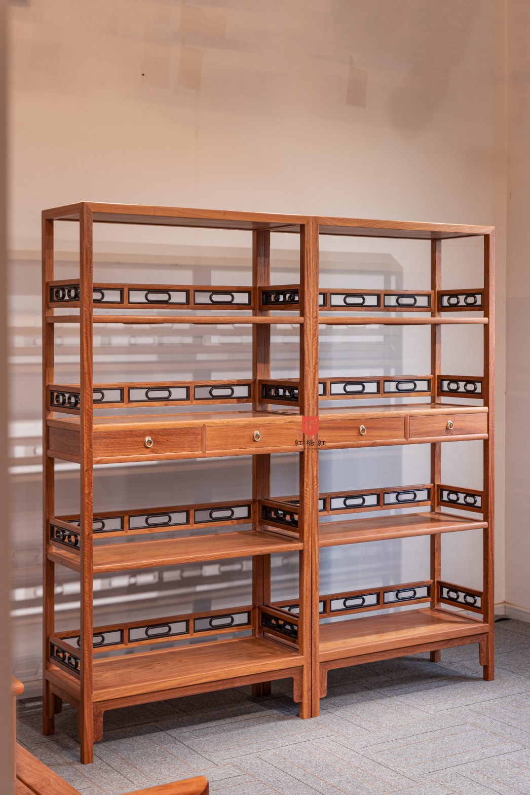 书架取自田家青明韵书架,原型参考田家青《明韵》一书中的,明韵书房花梨嵌紫檀四层架格。