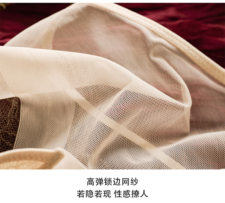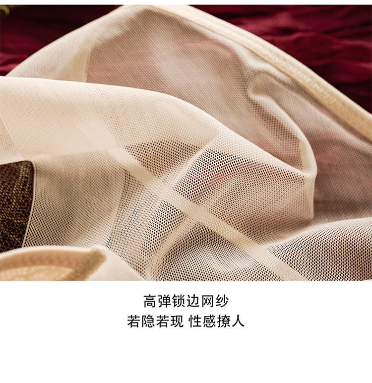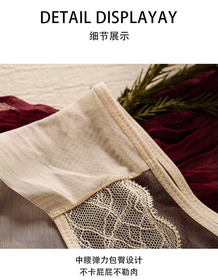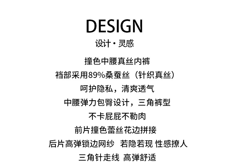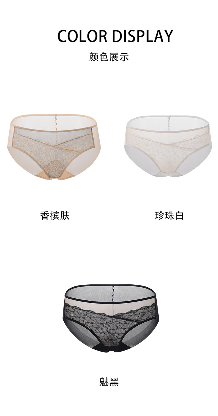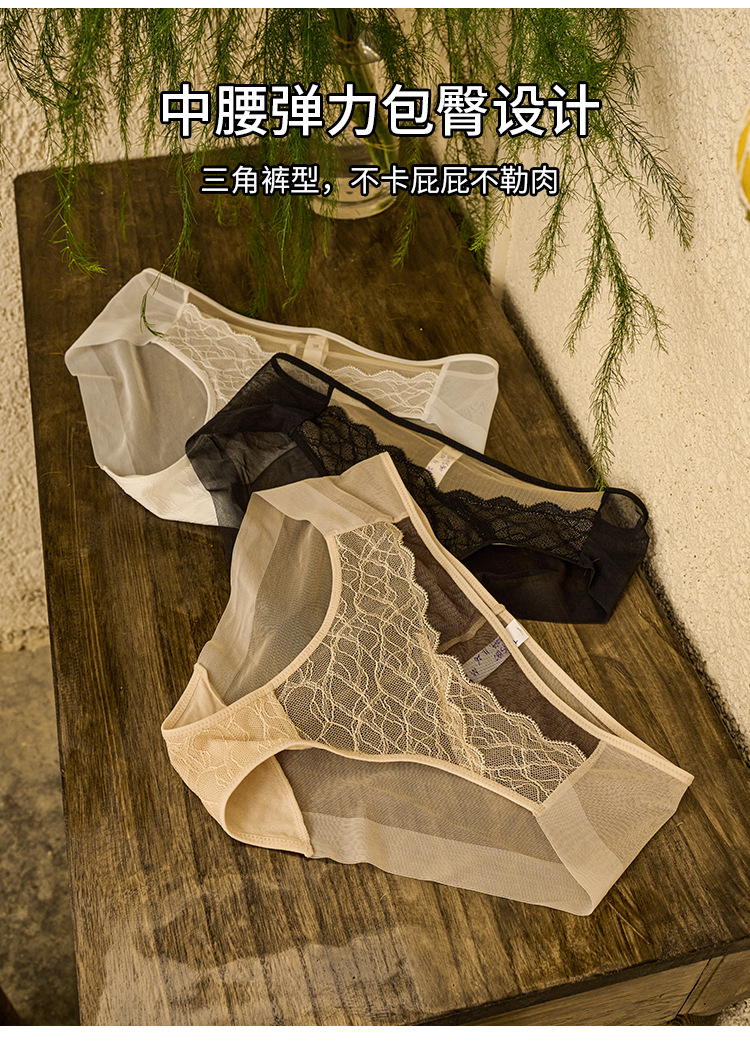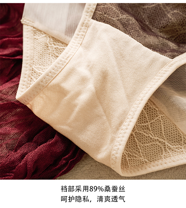TG-TG01S180真丝撞色蕾丝花边中腰女士内裤 桑蚕丝高弹网纱包臀三角短裤