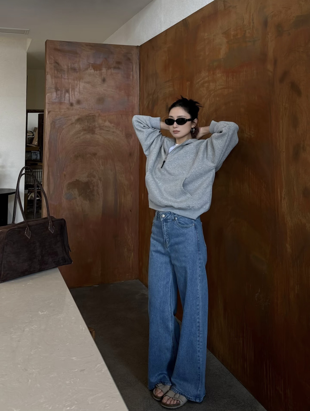 是很耐看的复古中蓝牛仔色,日常百搭、适配度高!
