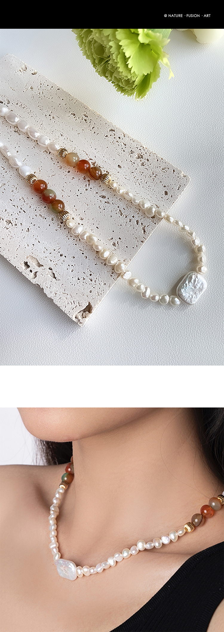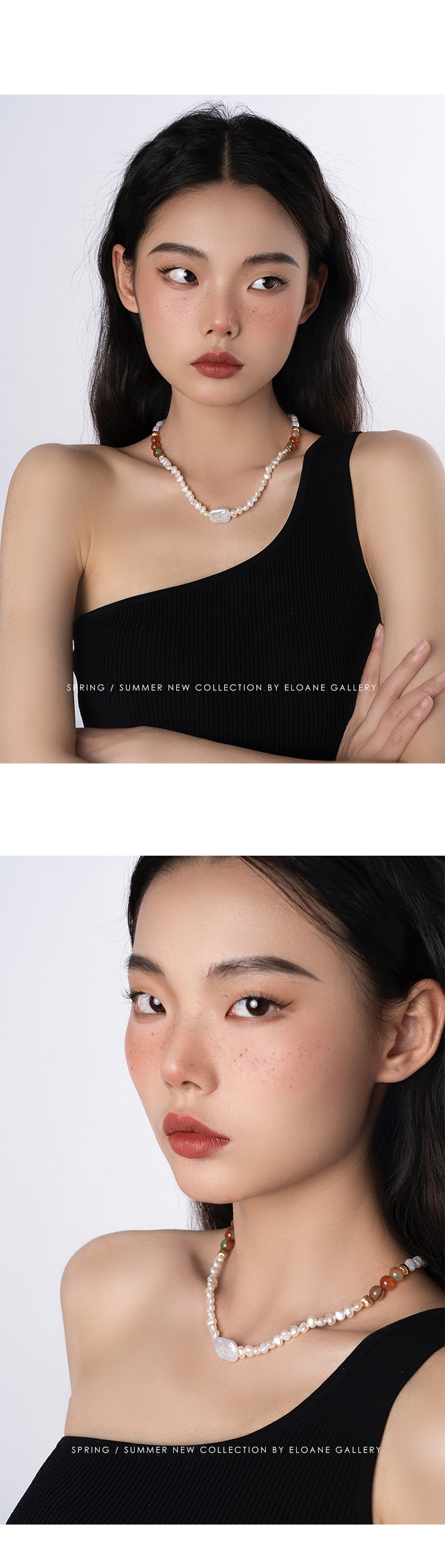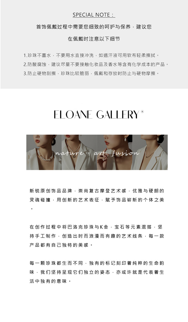 时髦百搭 ELOANE GALLERY 小众设计天然淡水巴洛克珍珠间隔彩色玛瑙项链(预售7天)【不支持用券】
