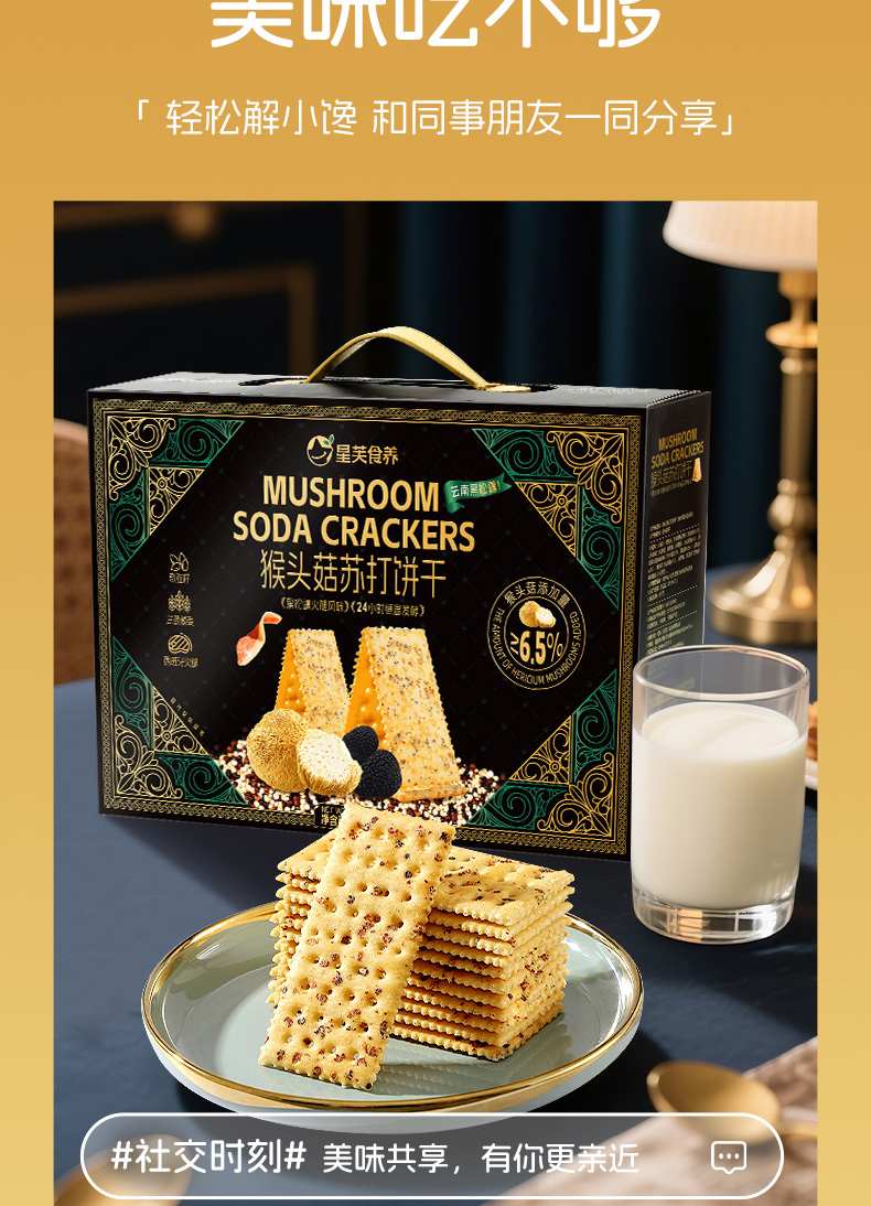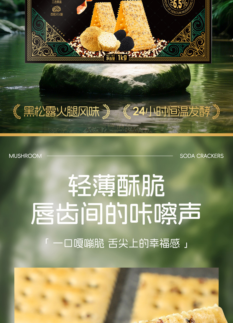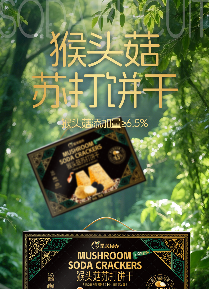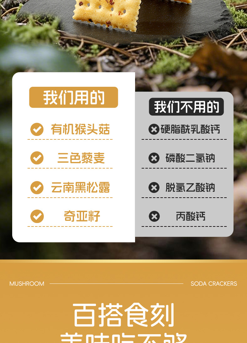 【糕酥精选】猴头菇苏打饼干 黑松露+火腿组合 无反式脂肪 酥脆咸香 每一口都是嚼得到的颗粒感
