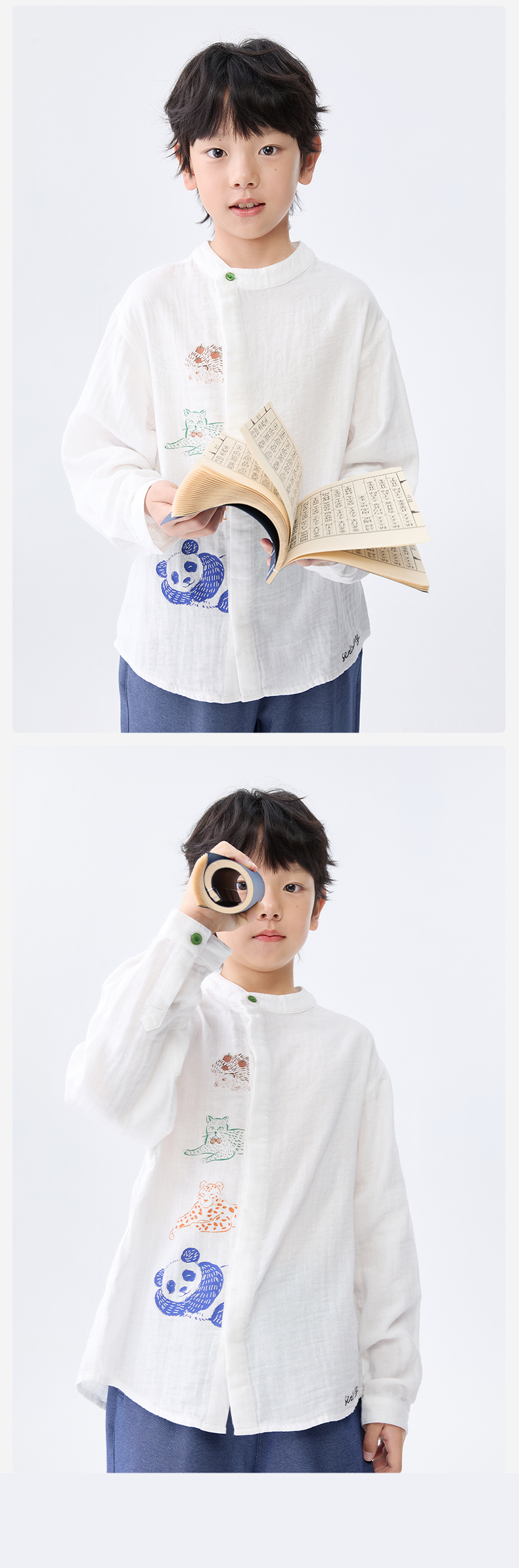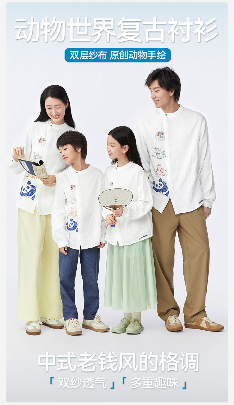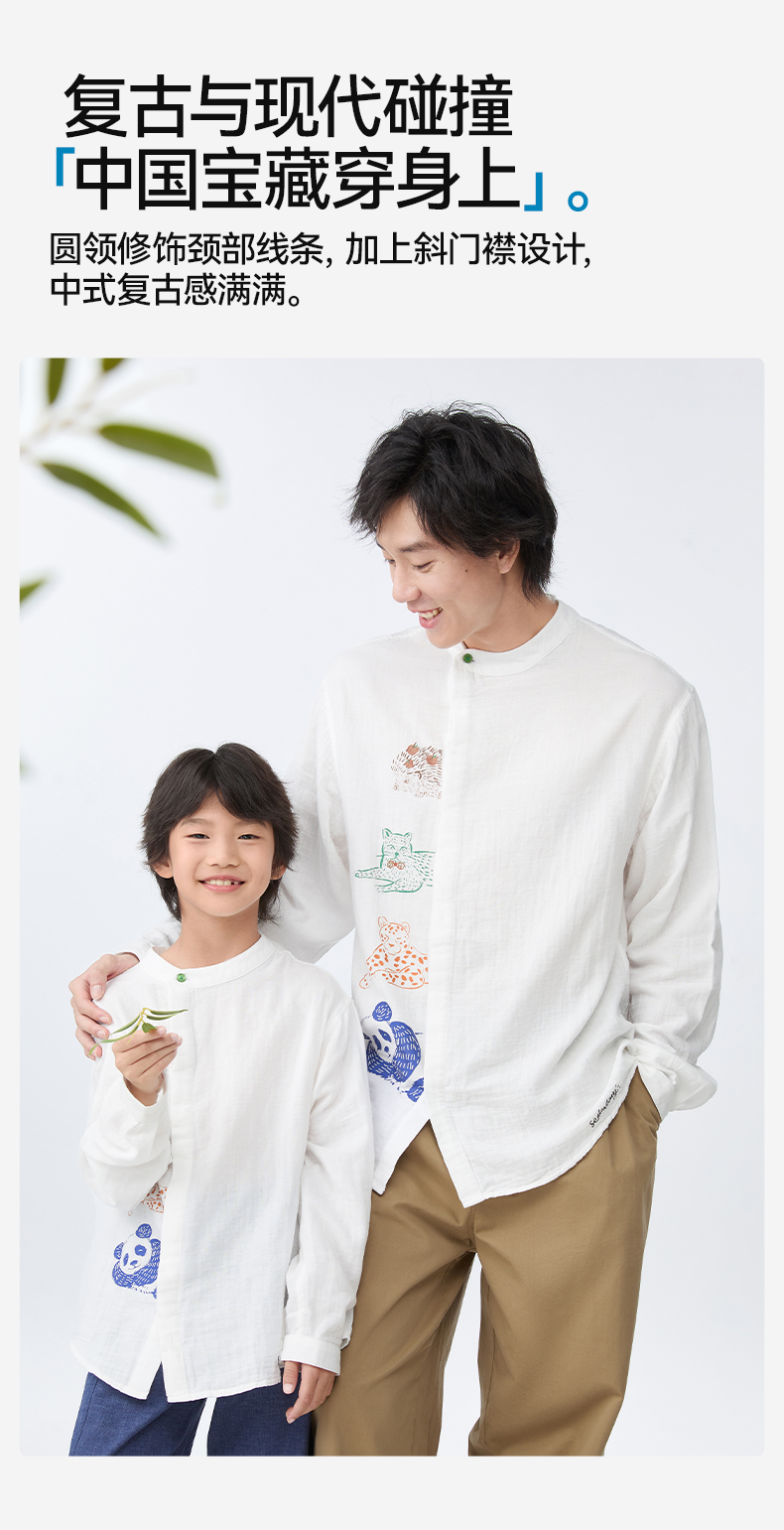 【动物世界复古衬衫】森林棠25秋款国风斜襟小立领亲子款纱布衬衫20522502