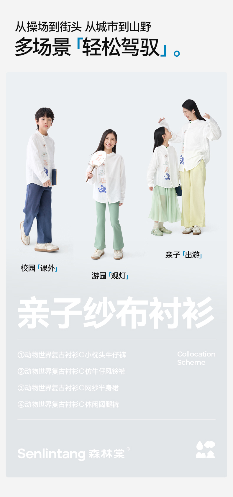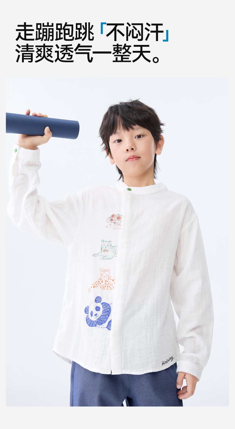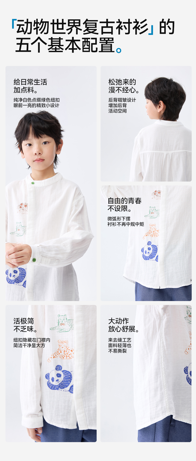【动物世界复古衬衫】森林棠25秋款国风斜襟小立领亲子款纱布衬衫20522502