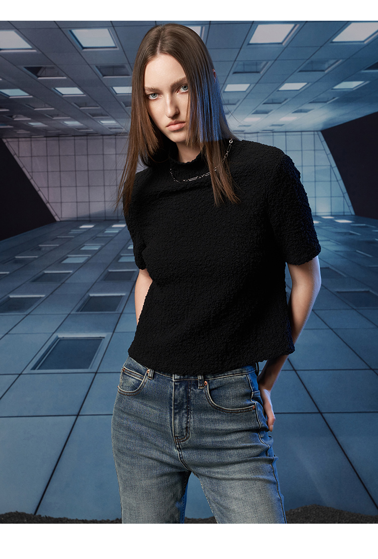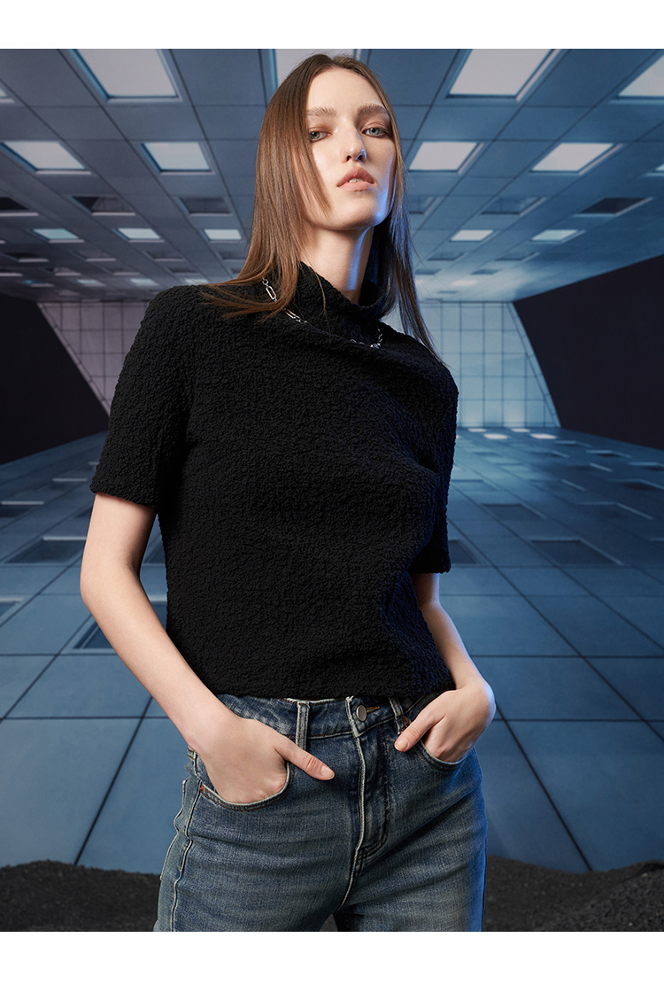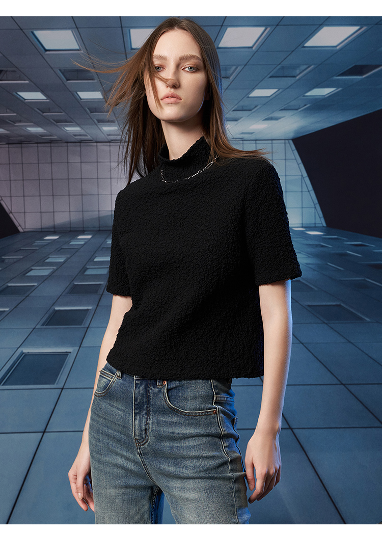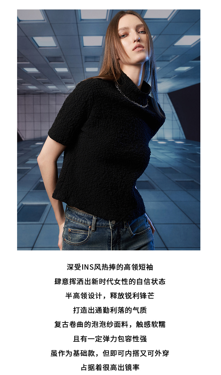 VIMAGE纬漫纪秋季新款半高领纯色舒适套头小上衣V1813418