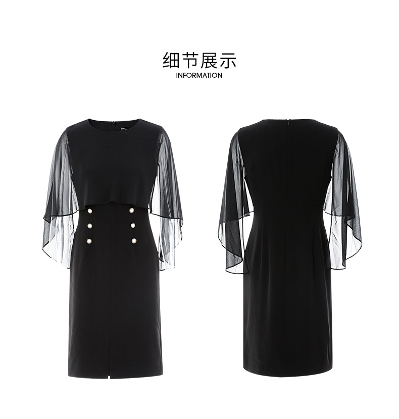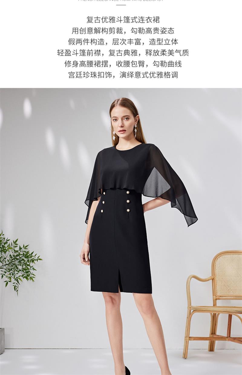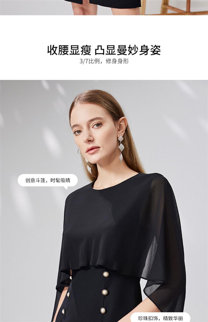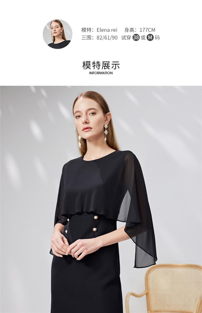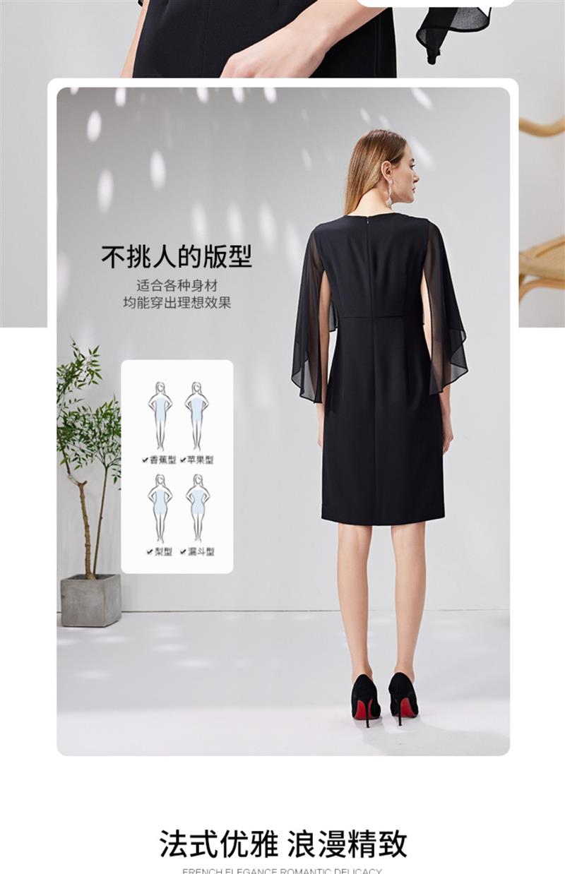 EITIE爱特爱时尚网纱斗篷修身OL通勤黑色连衣裙显瘦优雅夏新款B07162