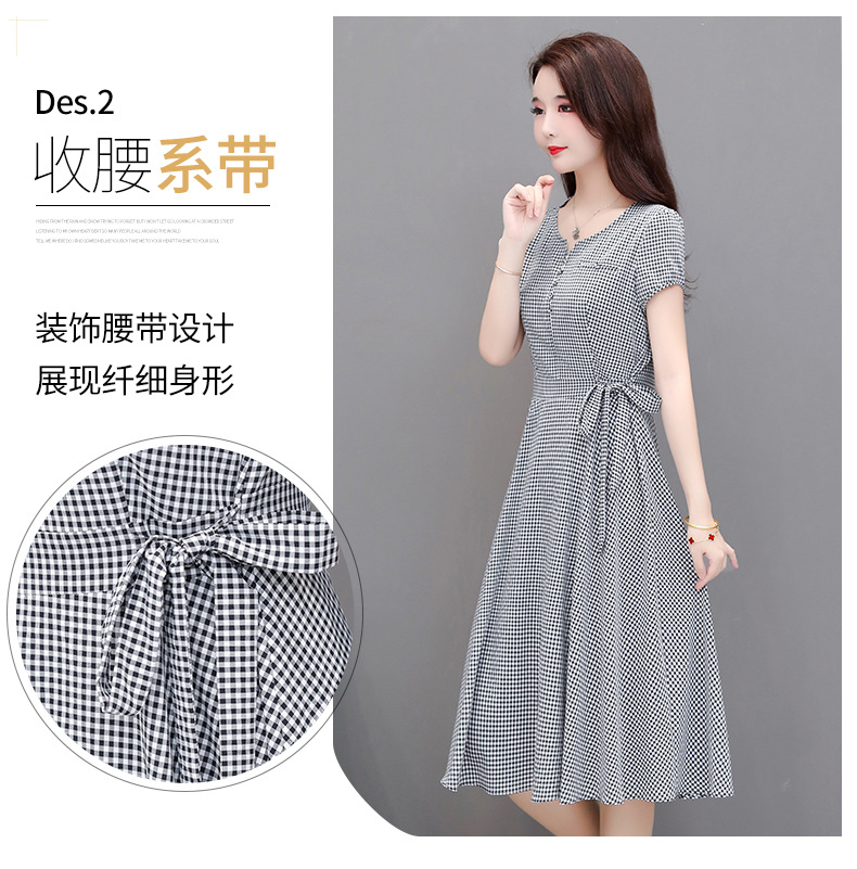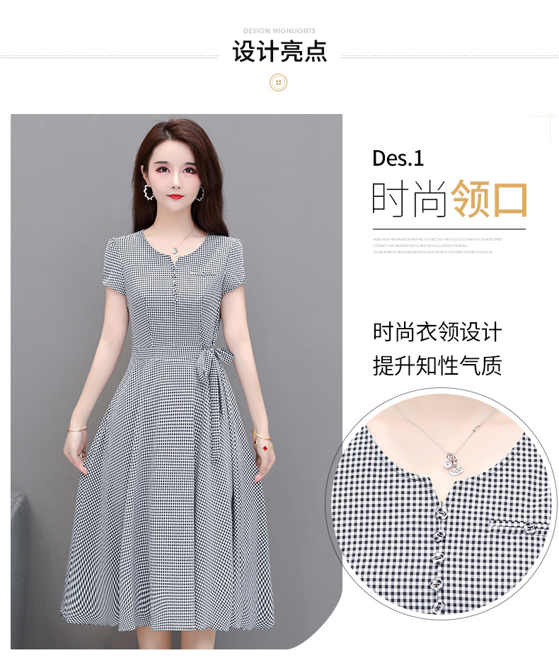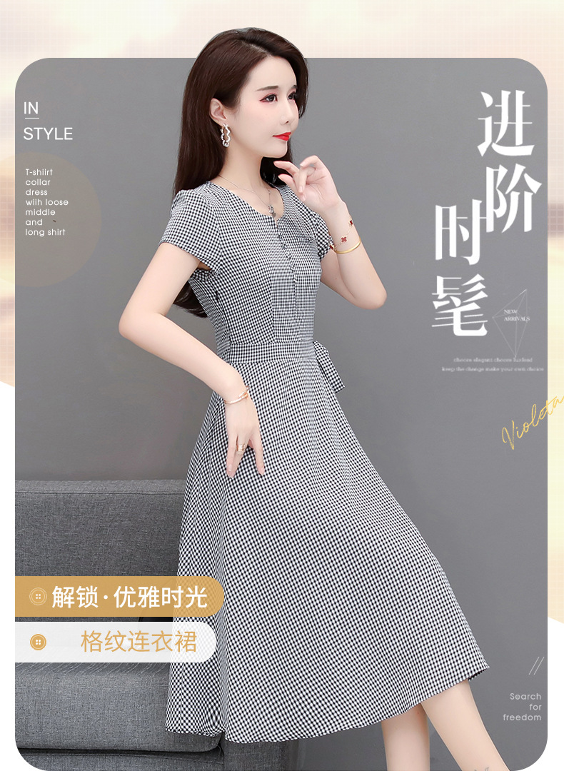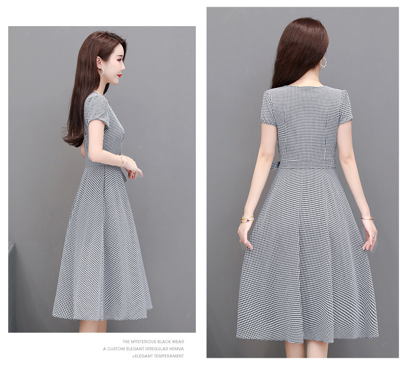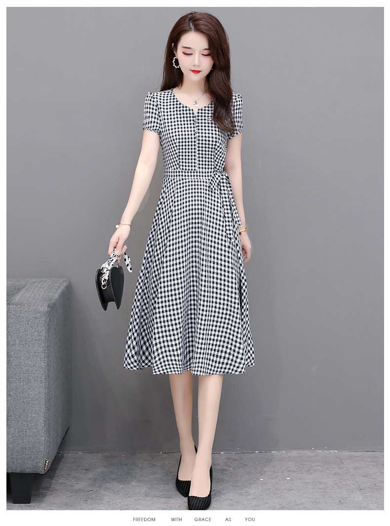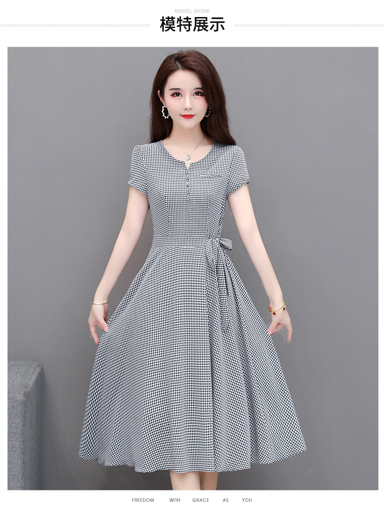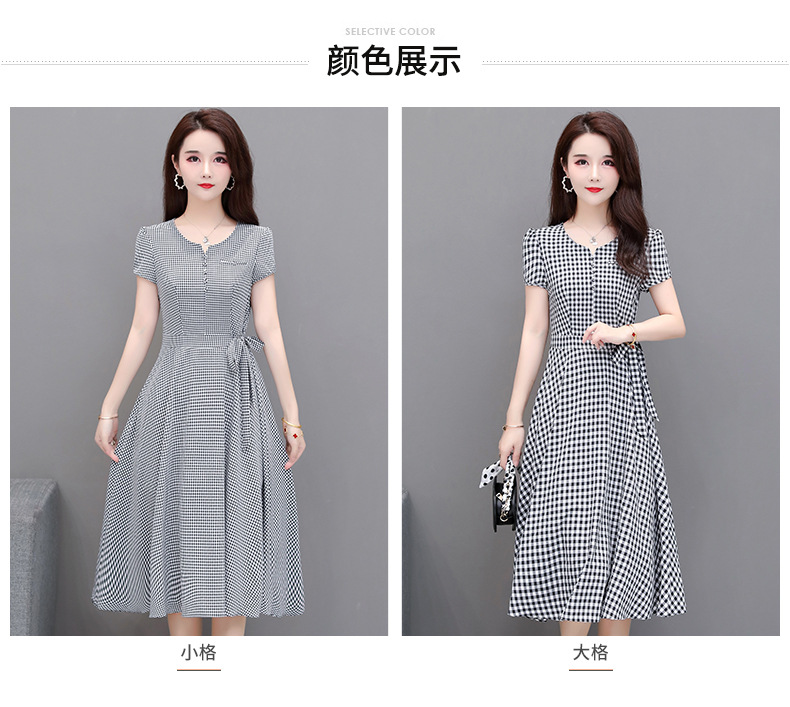 YWE-XYKL-02K格子中长款修身显瘦气质连衣裙