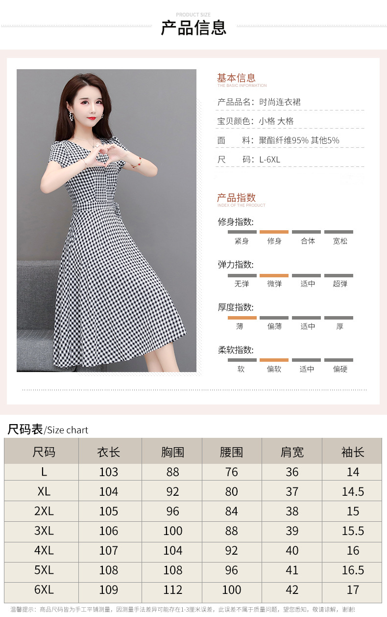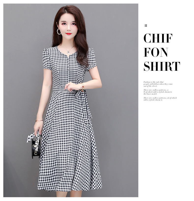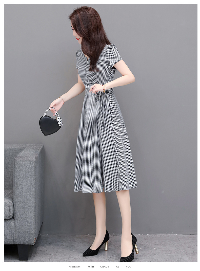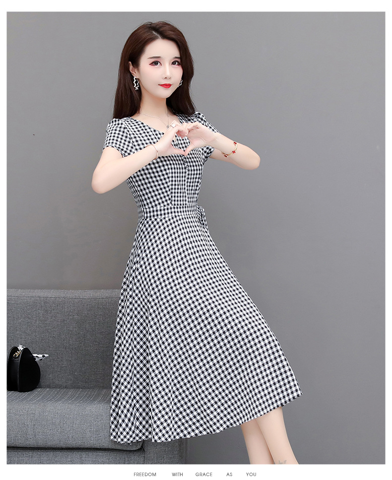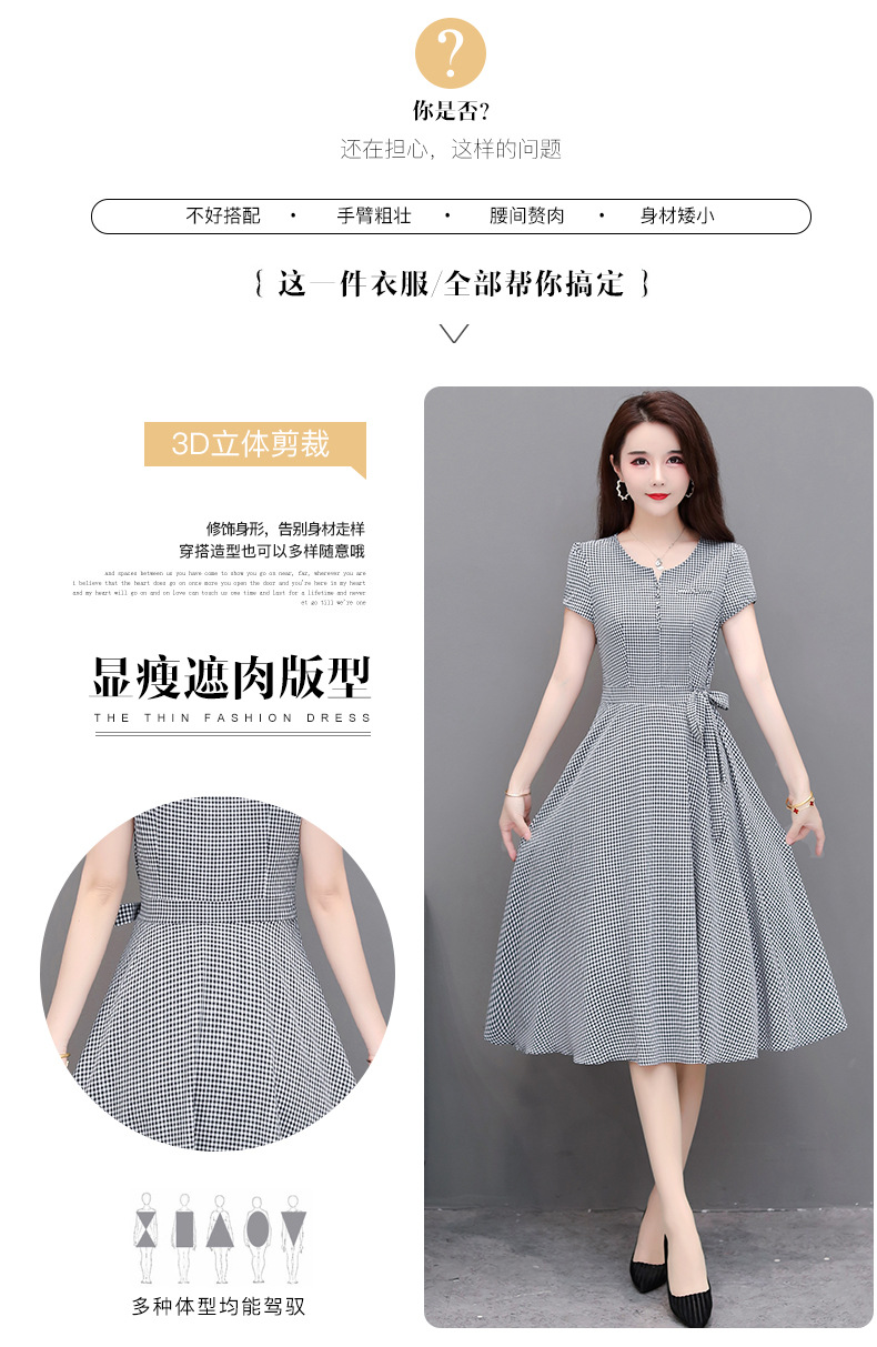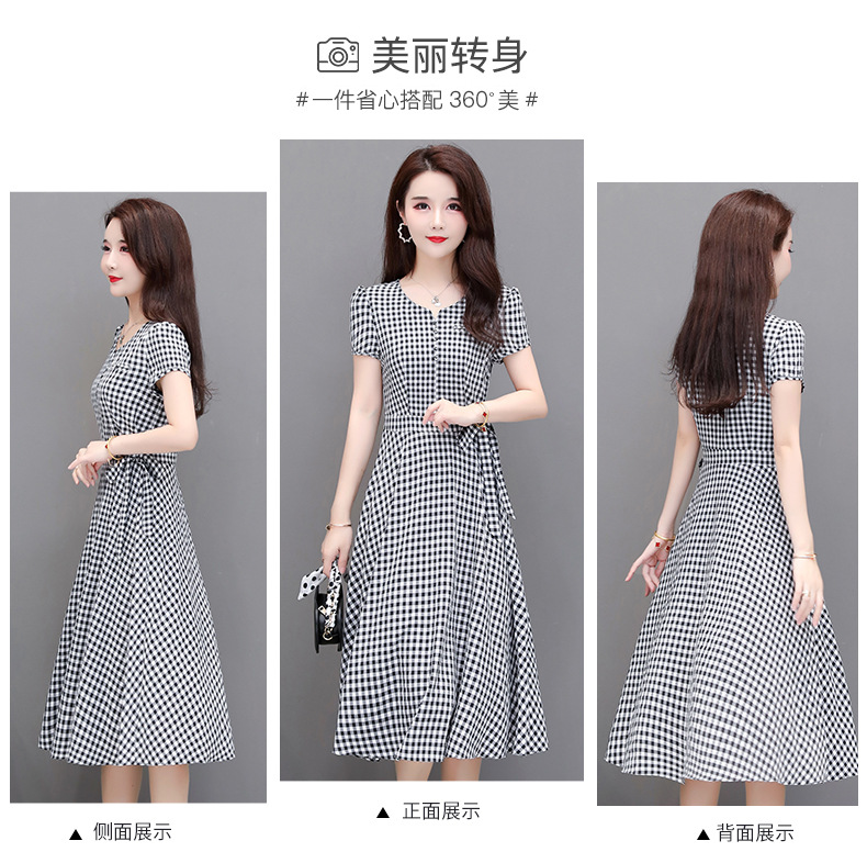 YWE-XYKL-02K格子中长款修身显瘦气质连衣裙