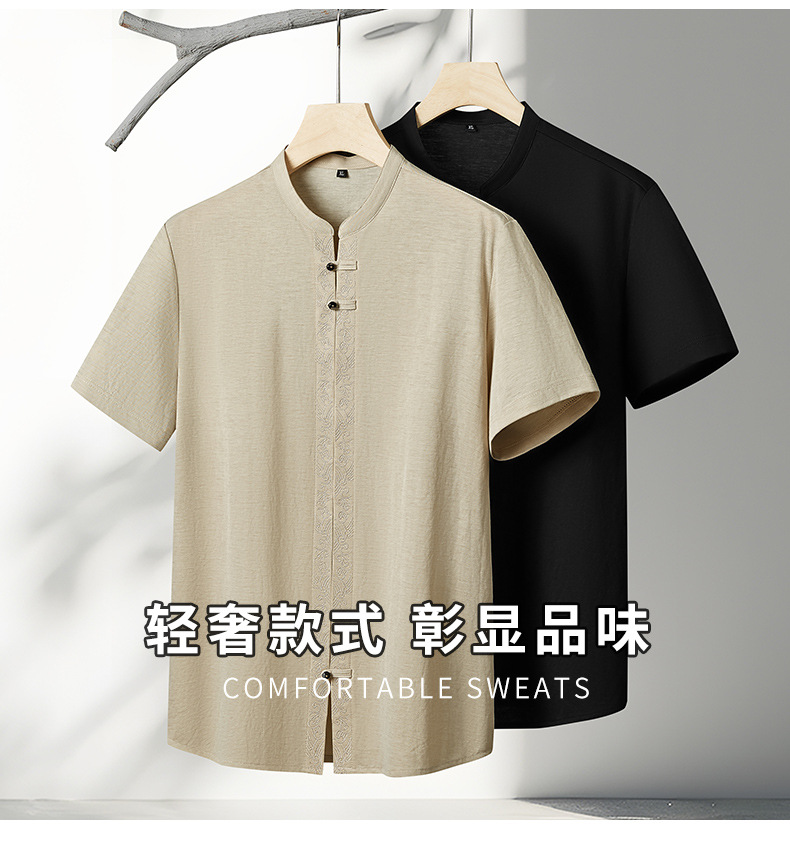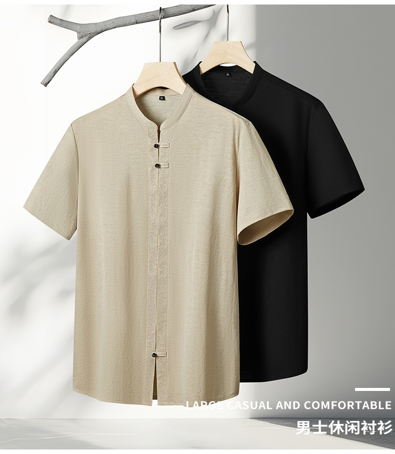 【封口款】【DDP】大依优型大码套头立领短袖衬衫男加肥大码中国风盘扣衣服胖子夏装上衣