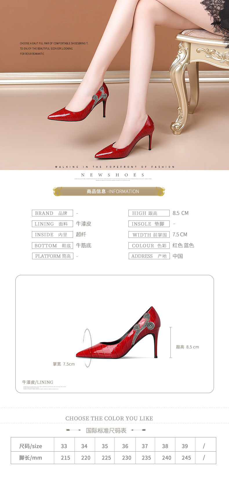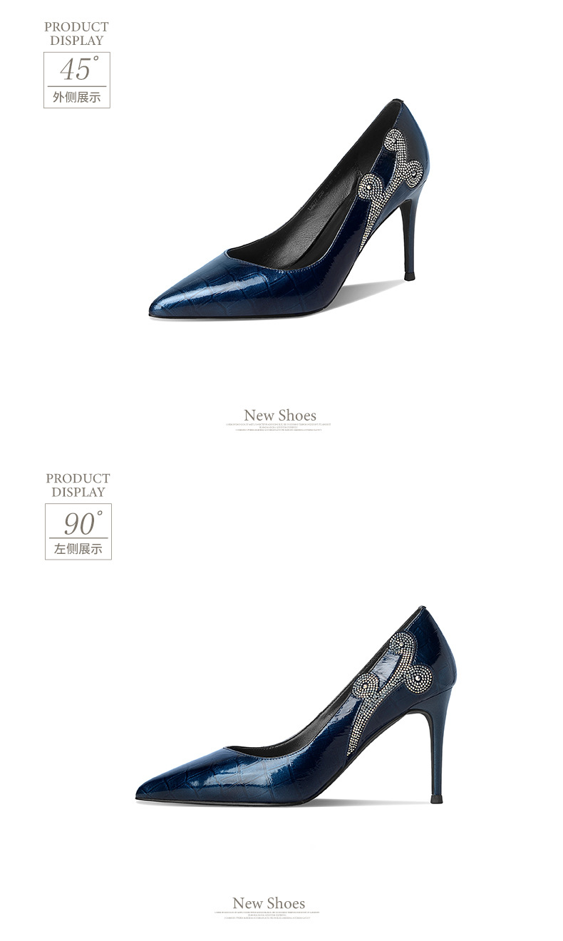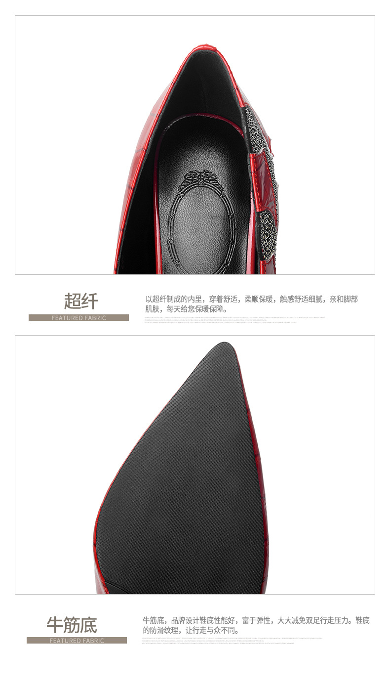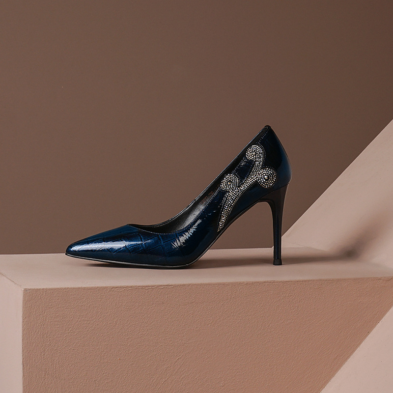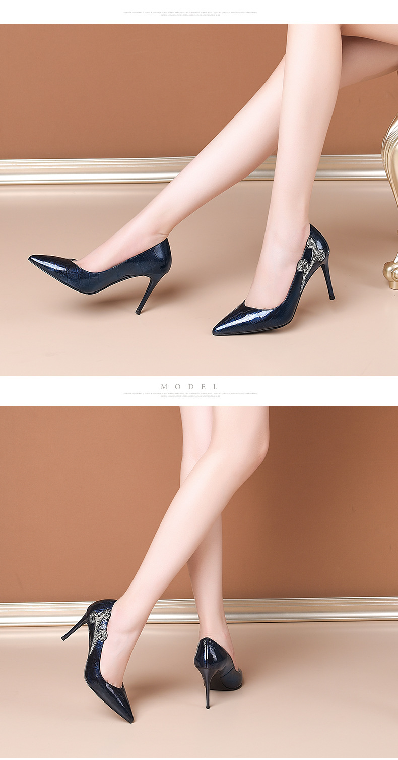 秋季新款尖头高跟鞋浅口真皮低帮鞋时尚百搭漆皮女鞋