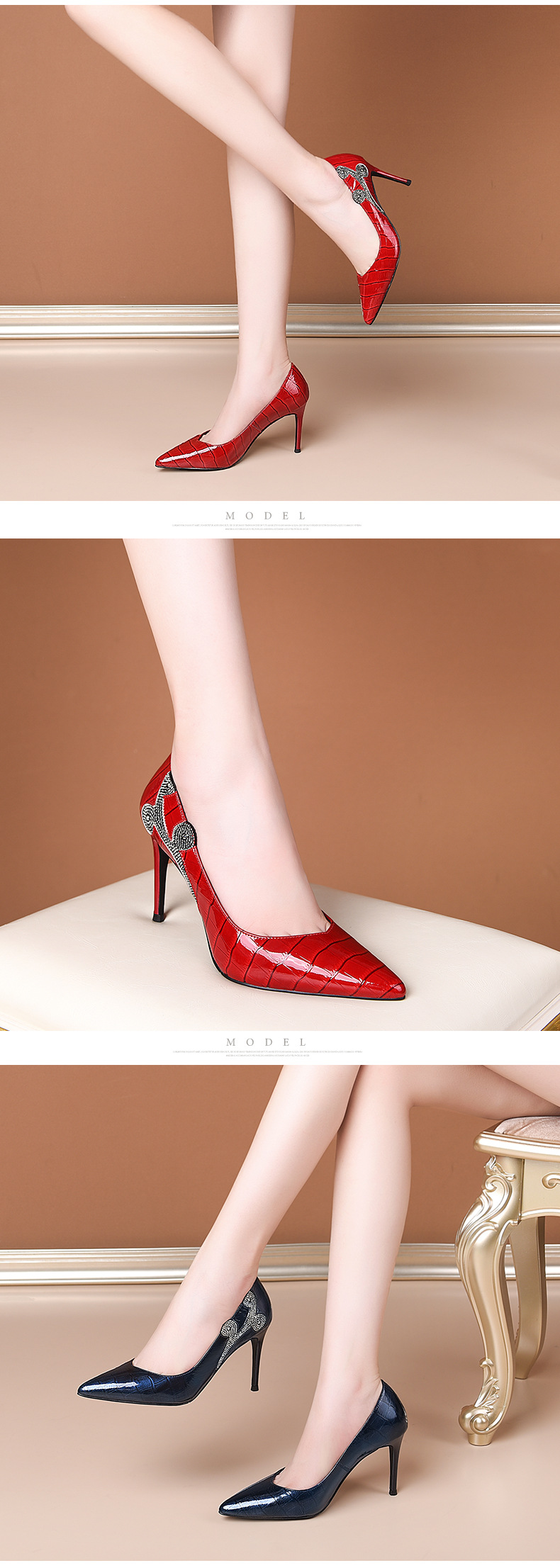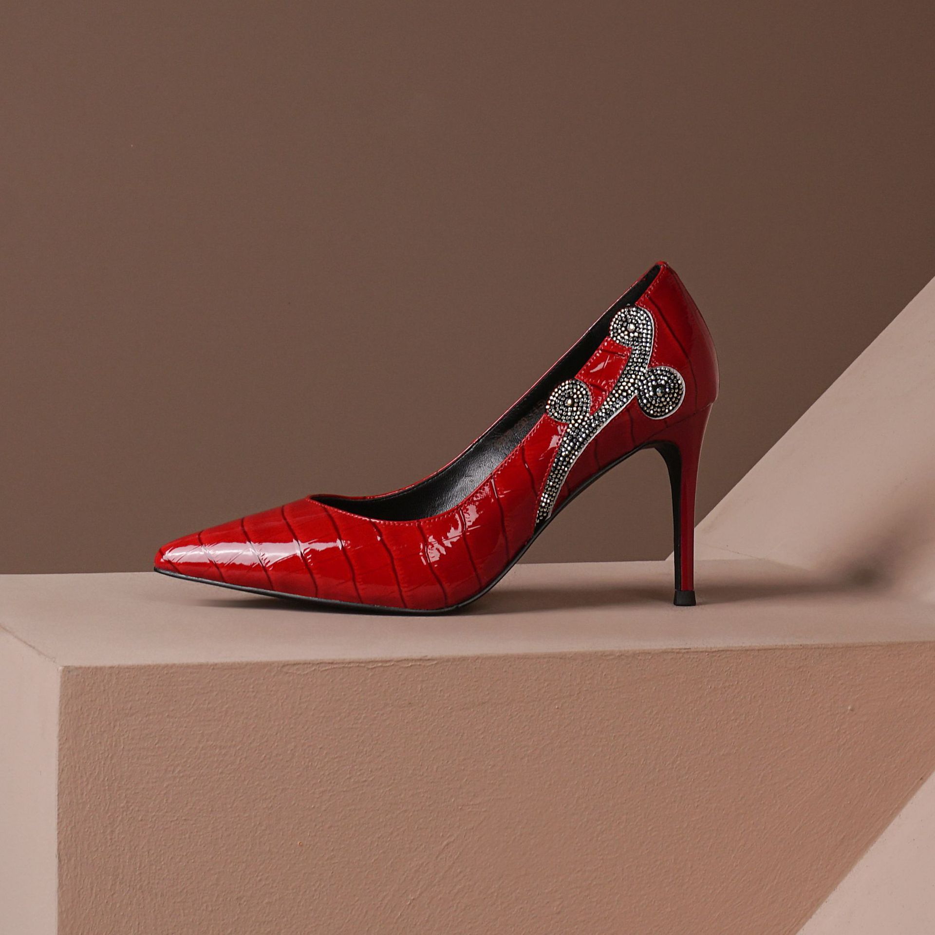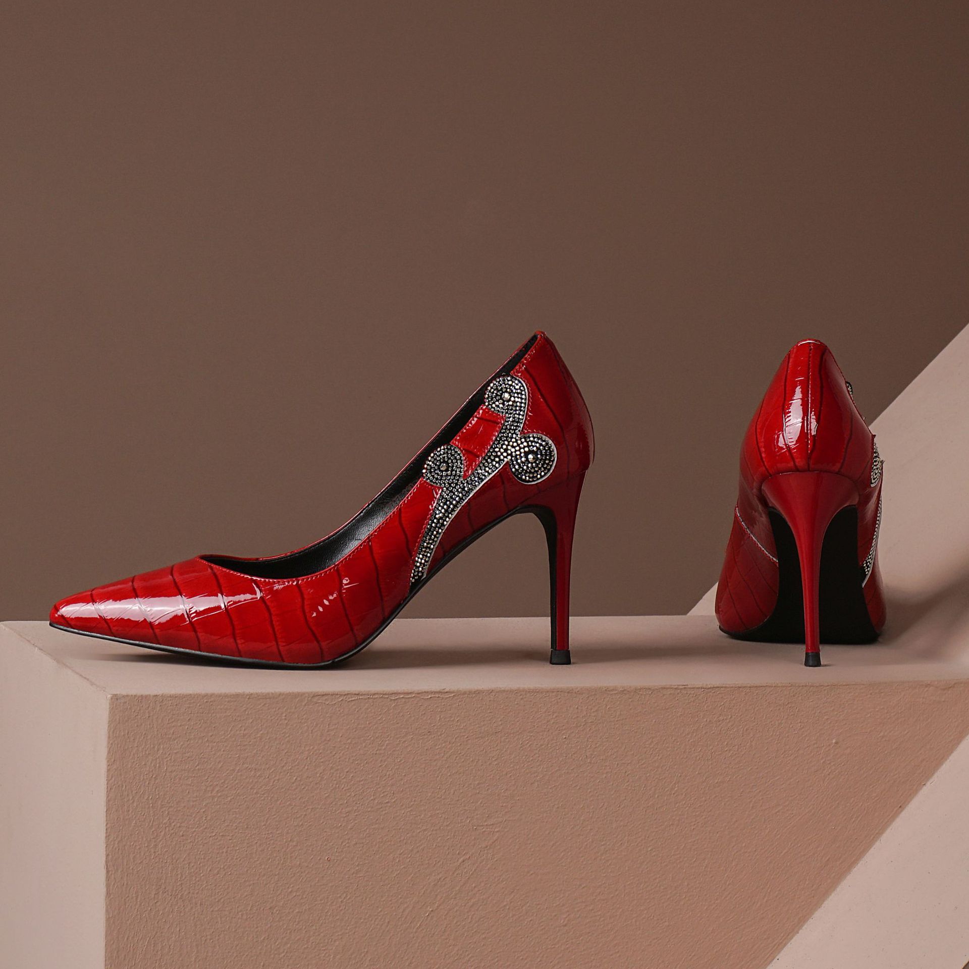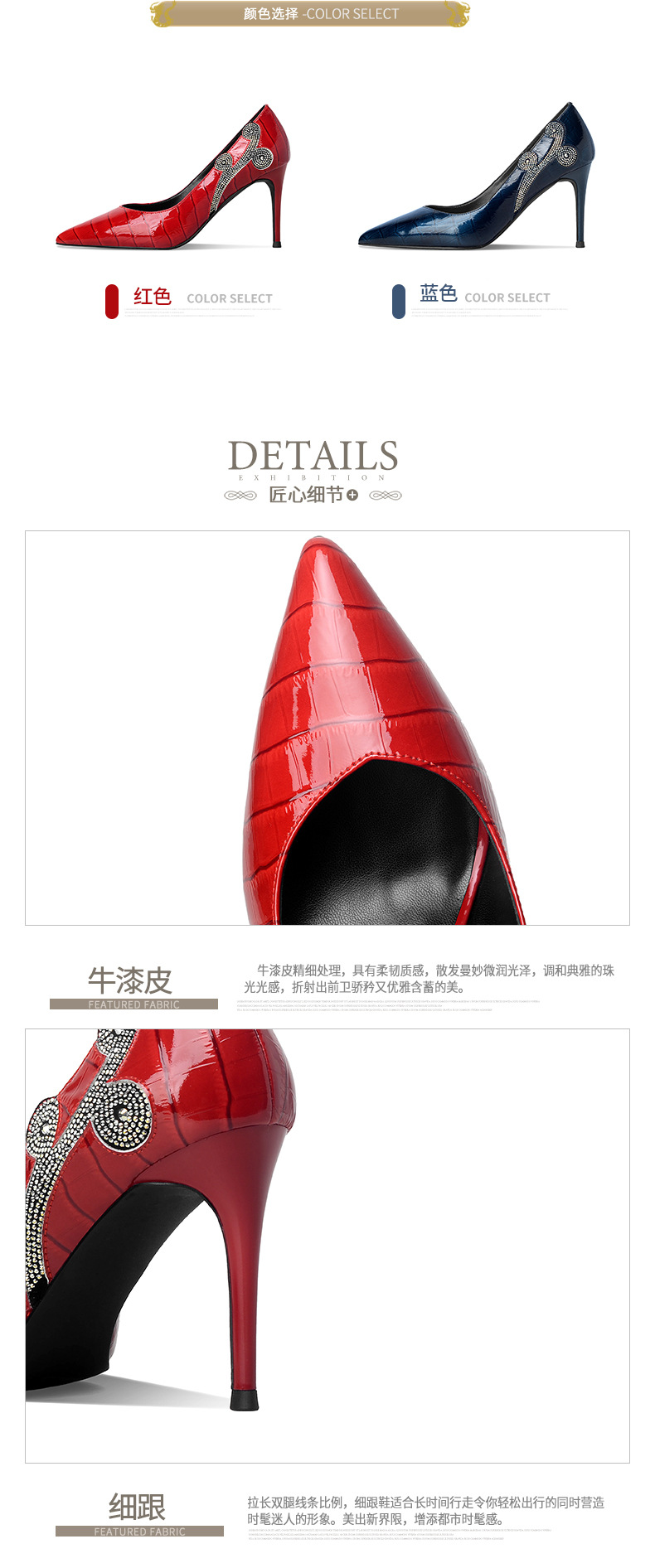 秋季新款尖头高跟鞋浅口真皮低帮鞋时尚百搭漆皮女鞋