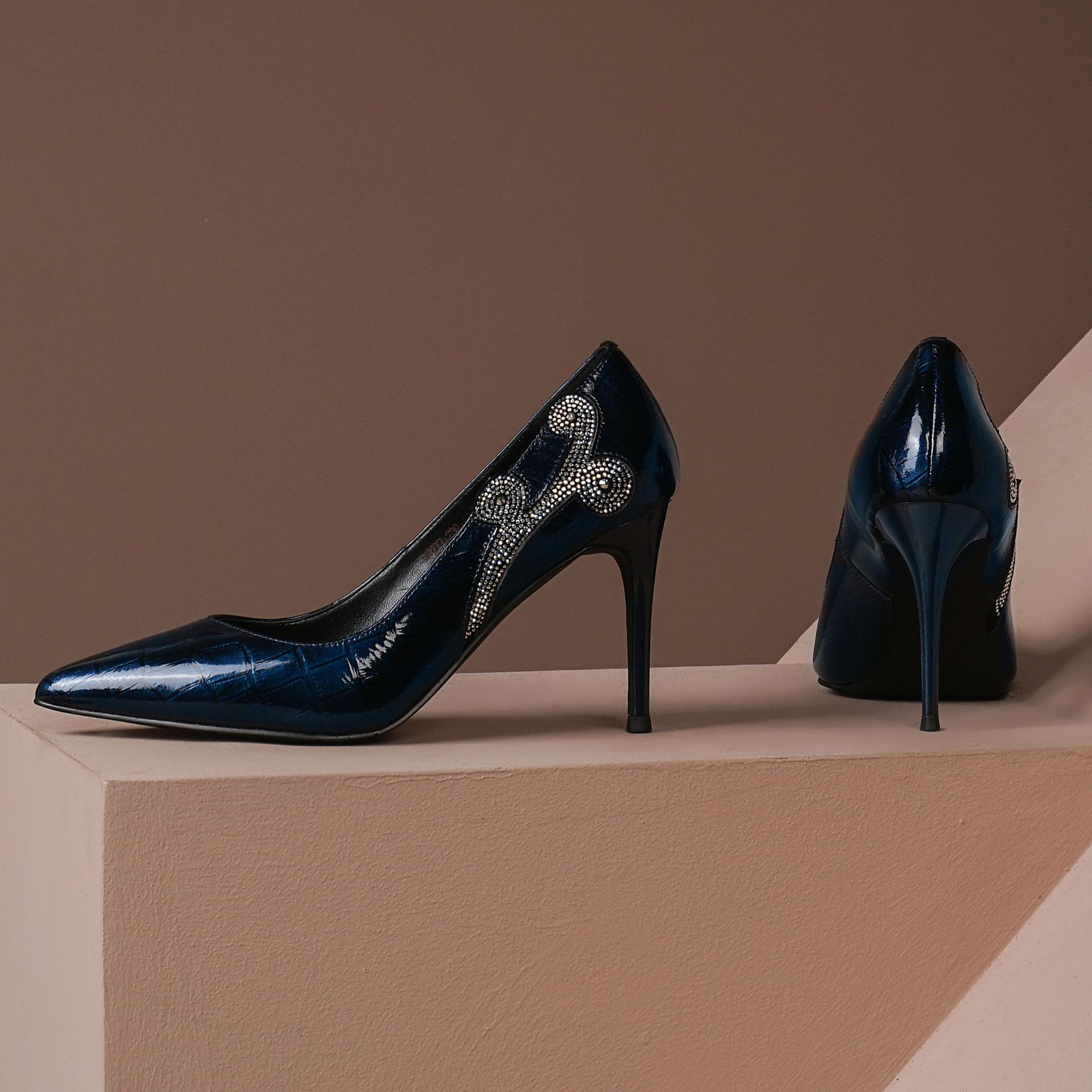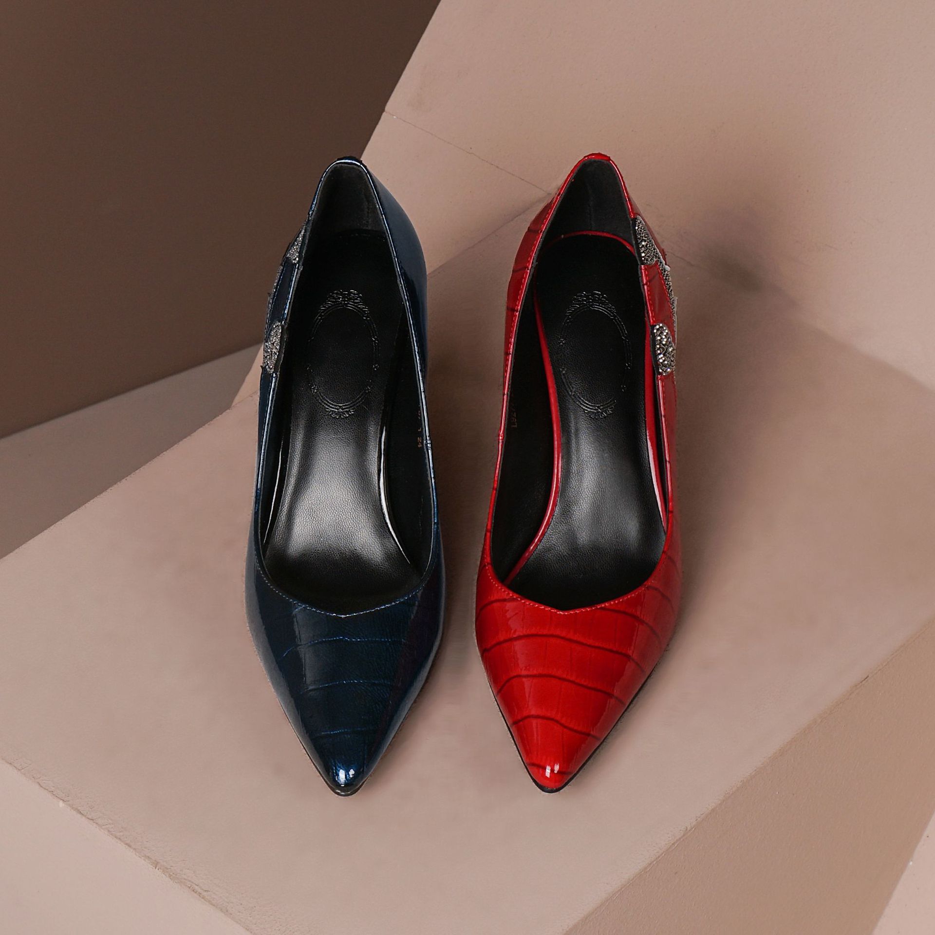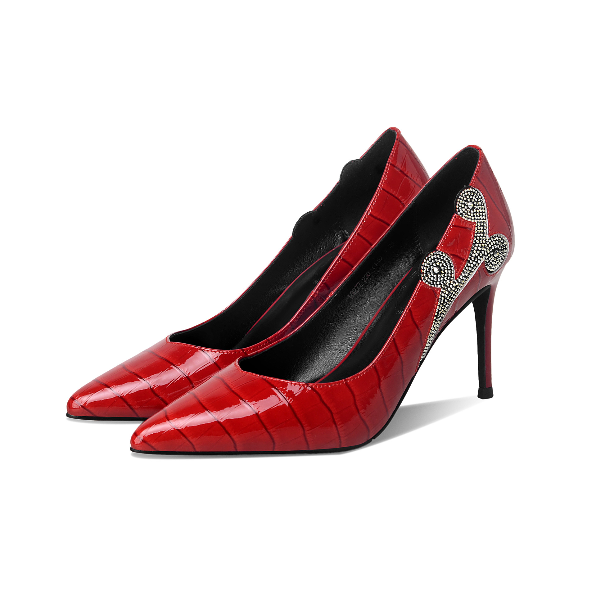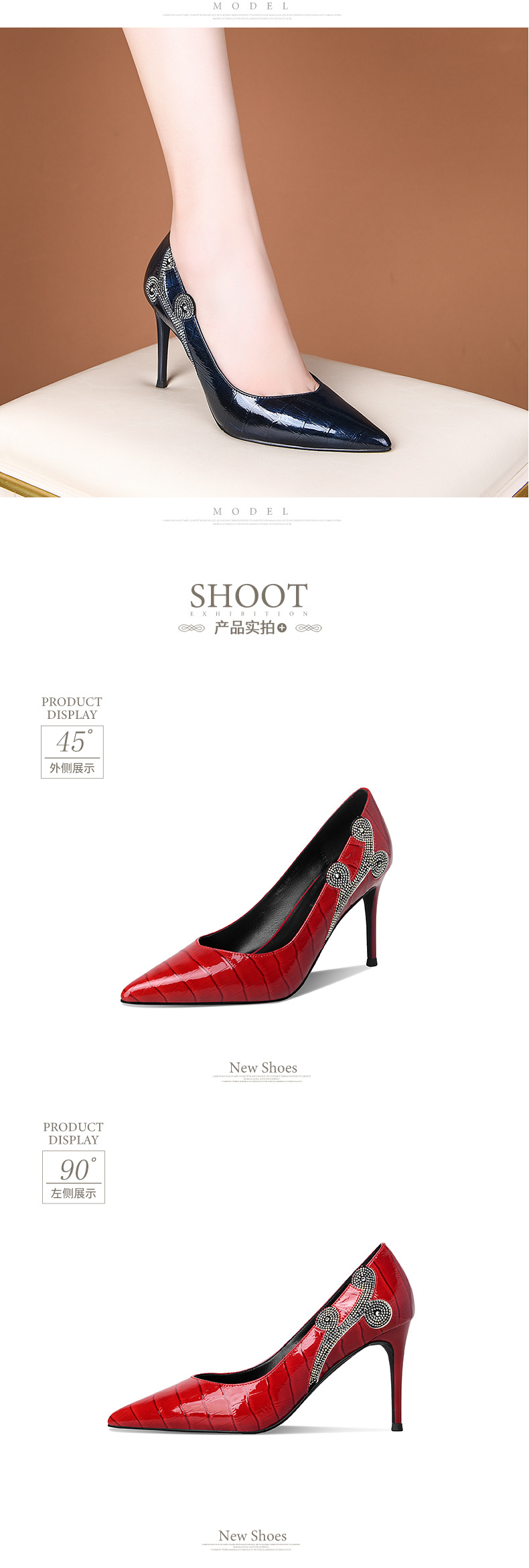 秋季新款尖头高跟鞋浅口真皮低帮鞋时尚百搭漆皮女鞋