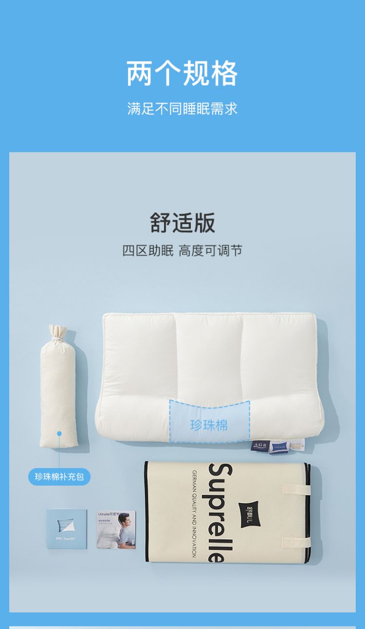 专为颈椎不适人群设计,Suprelle Clean全A类防螨护颈枕,全方位支撑肩颈,头部释压,可水洗