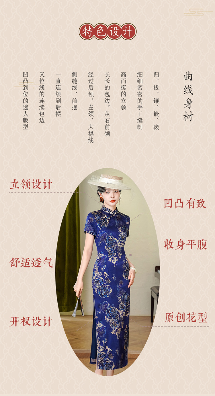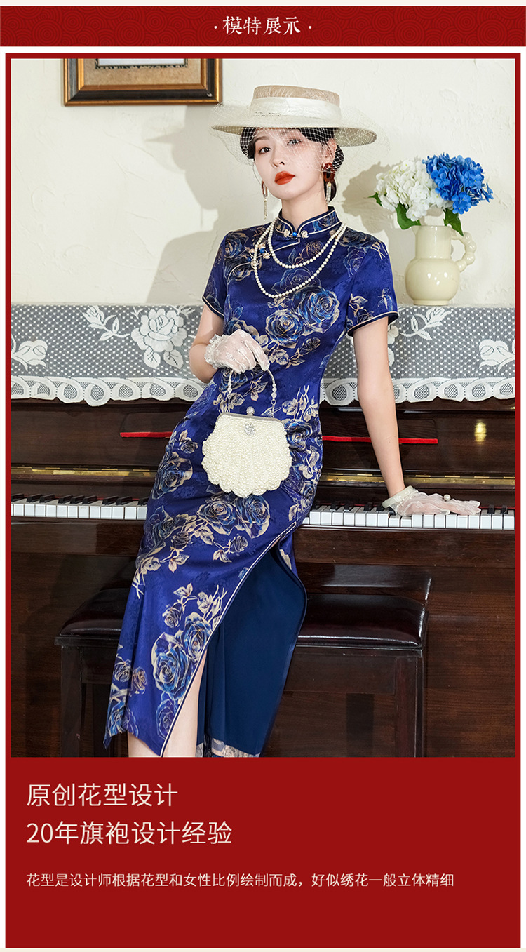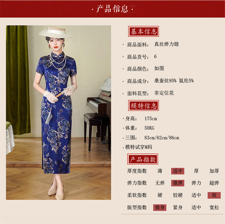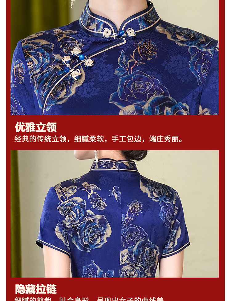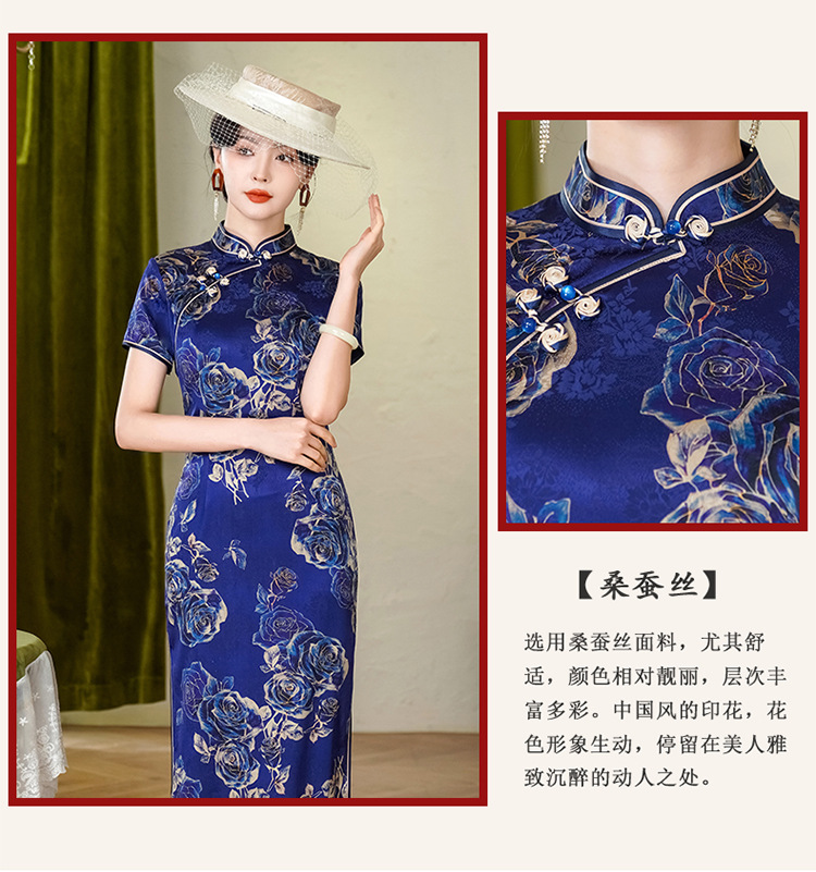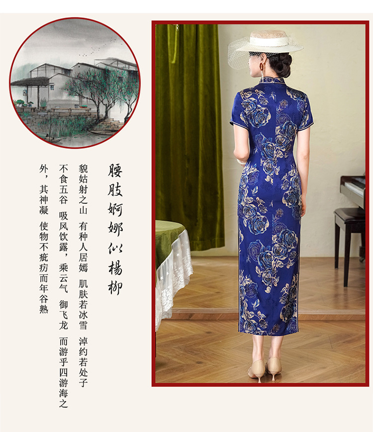 改良短袖长款桑蚕丝,中国风显瘦旗袍裙YY- 2611