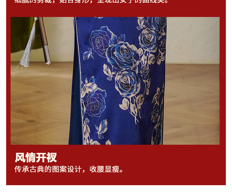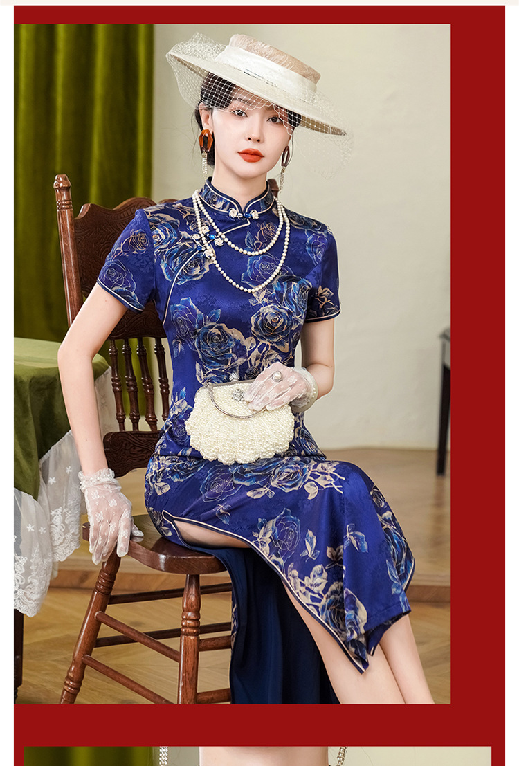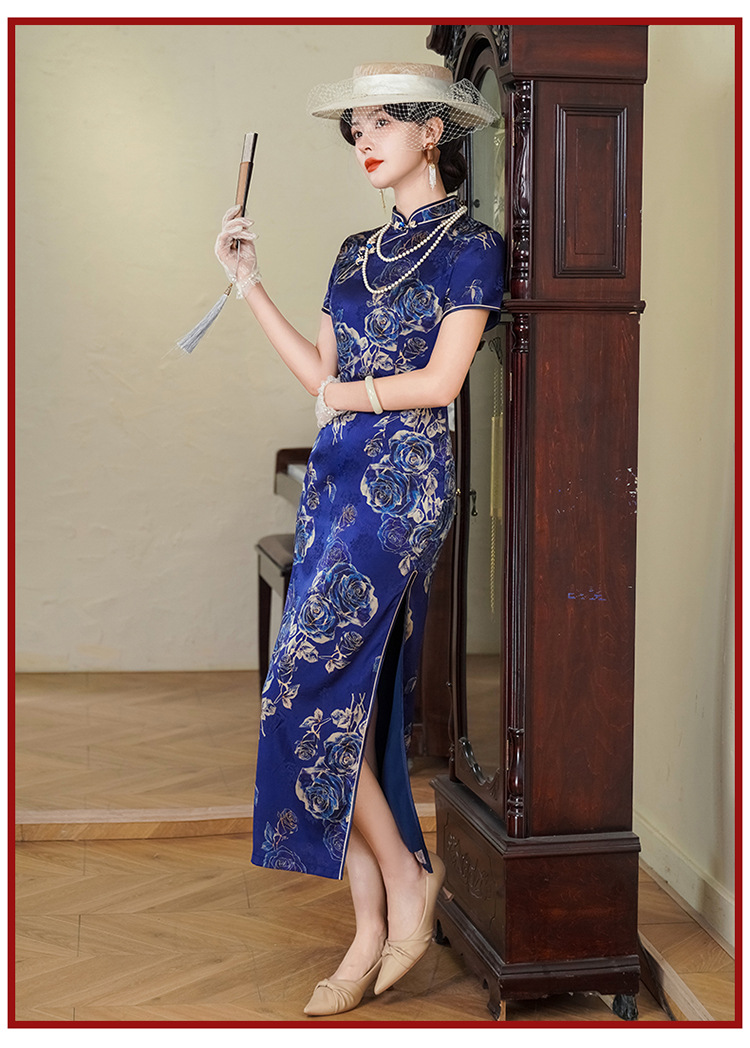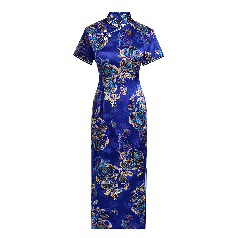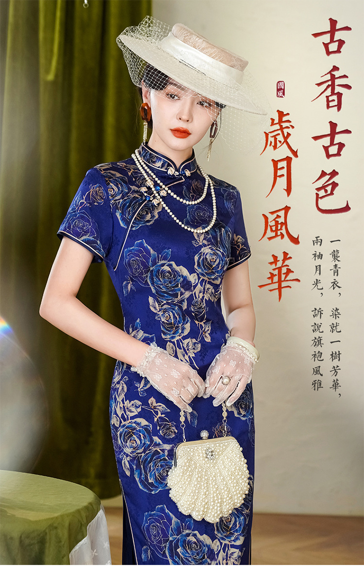 改良短袖长款桑蚕丝,中国风显瘦旗袍裙YY- 2611