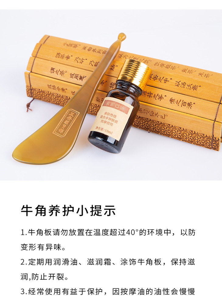 正安国货·牛角拨筋棒 天然黄牛角刮痧按摩 内含霍霍巴油一瓶