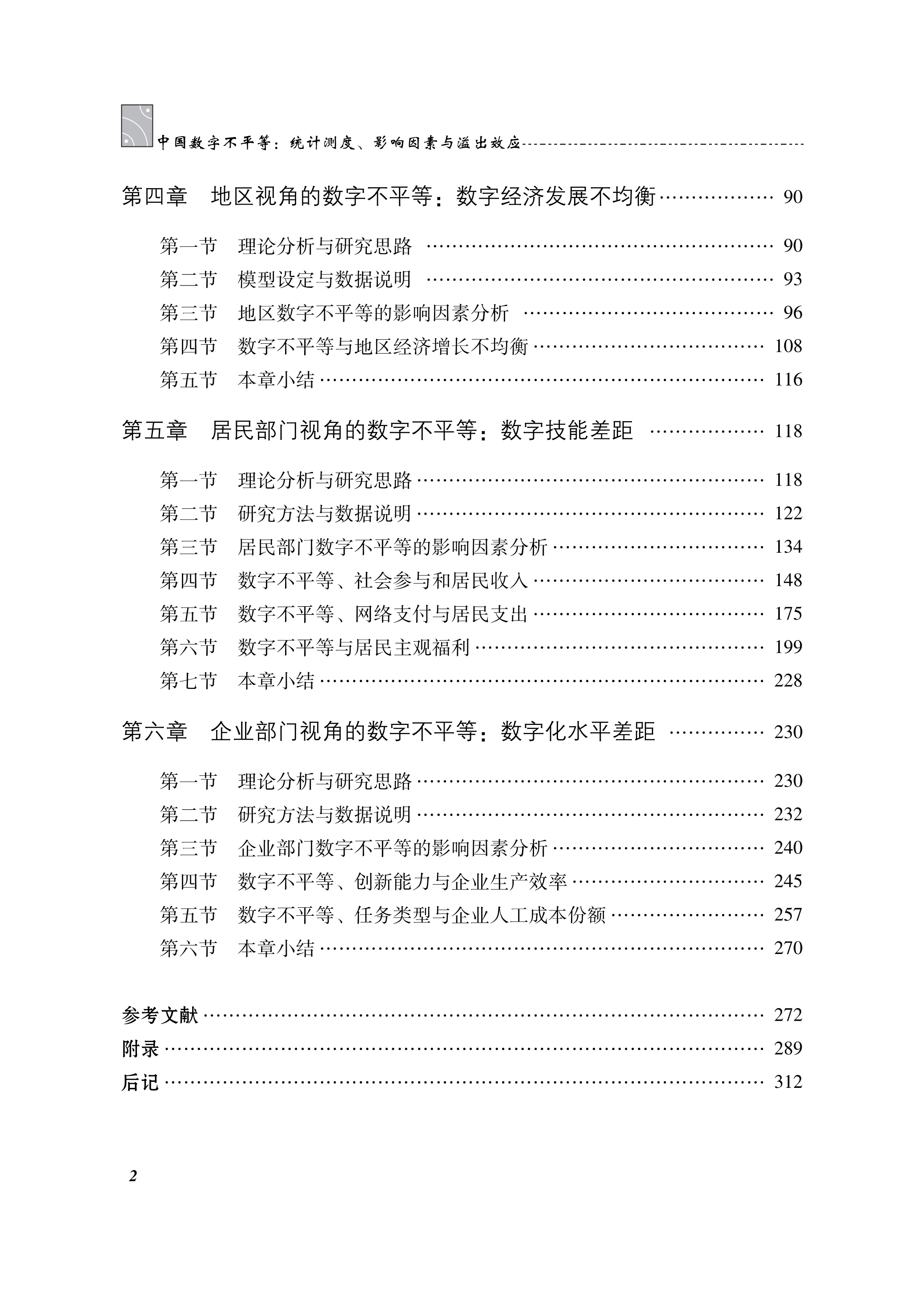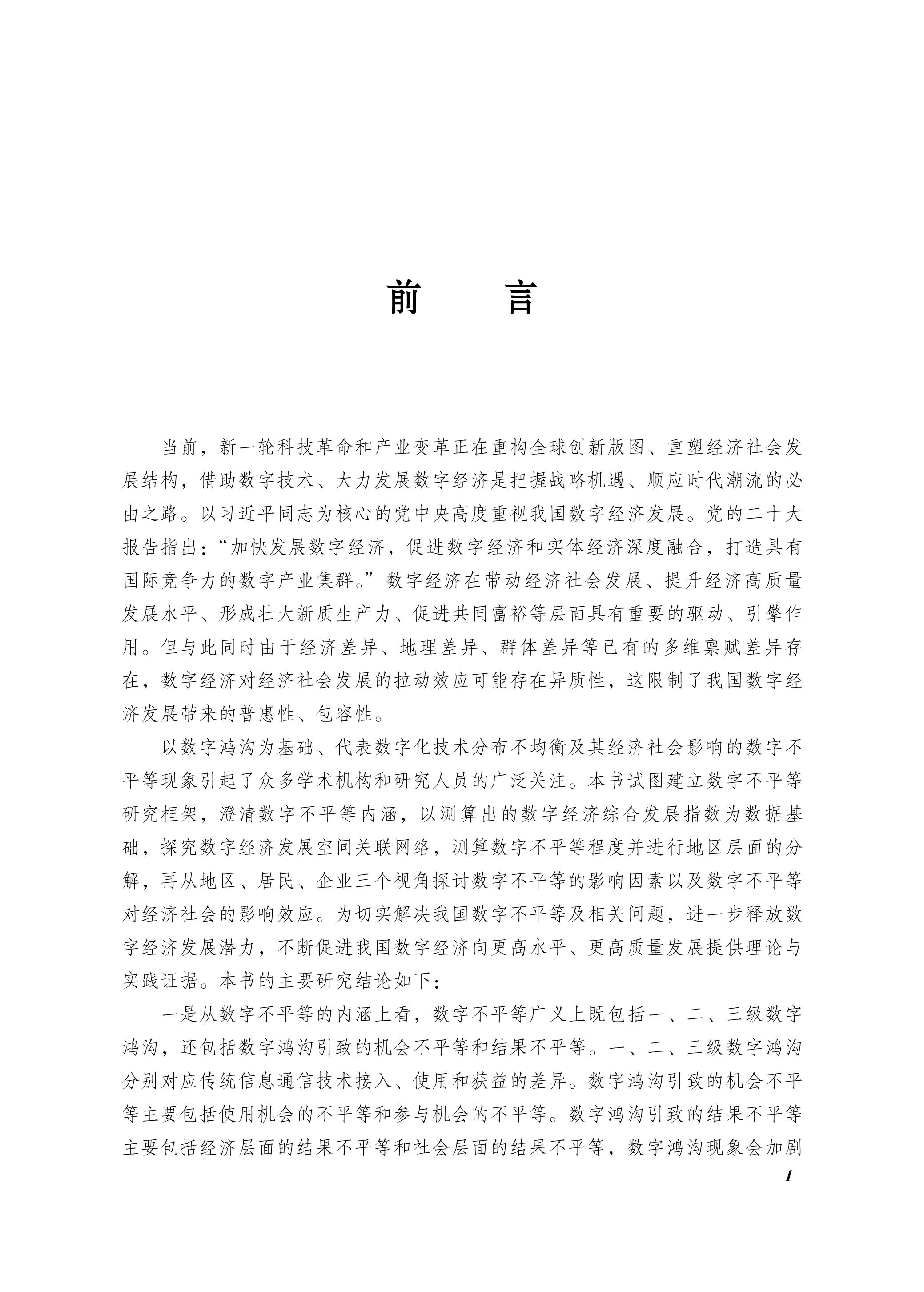 本书试图建立数字不平等研究框架,澄清数字不平等的内涵,以测算出的数字经济综合发展指数为数据基础,探究数字经济发展空间关联网络,测算数字不平等程度并进行地区层面的分解,再从地区、居民、企业三个视角探讨数字不平等的影响因素以及数字不平等对经济社会的影响效应。本书希望为切实解决我国数字不平等及相关问题,进一步释放数字经济发展潜力,不断促进我国数字经济向更高水平、更高质量发展提供理论与实践证据。