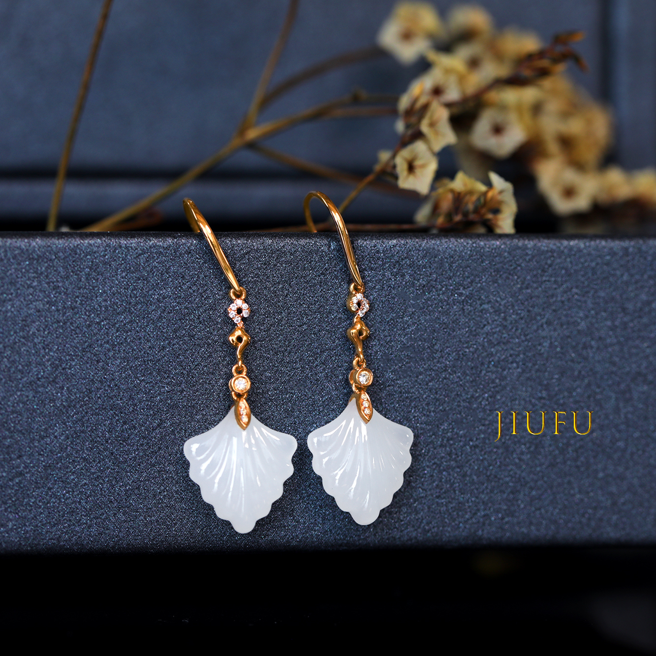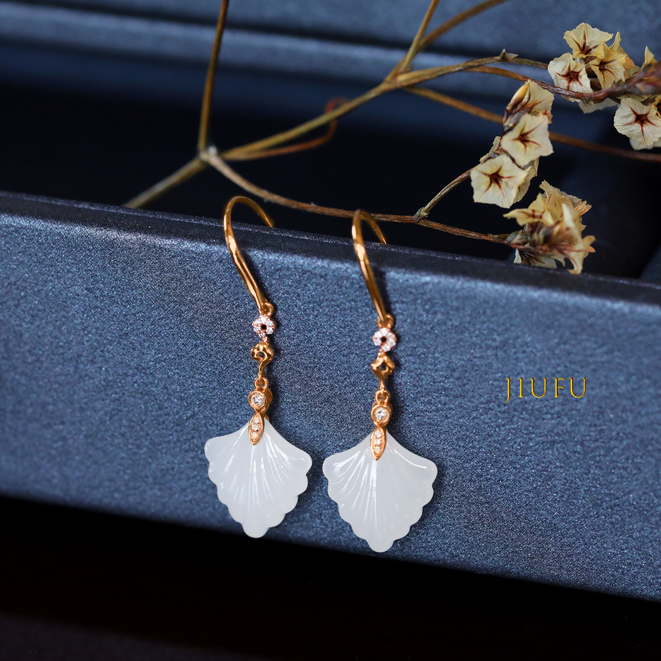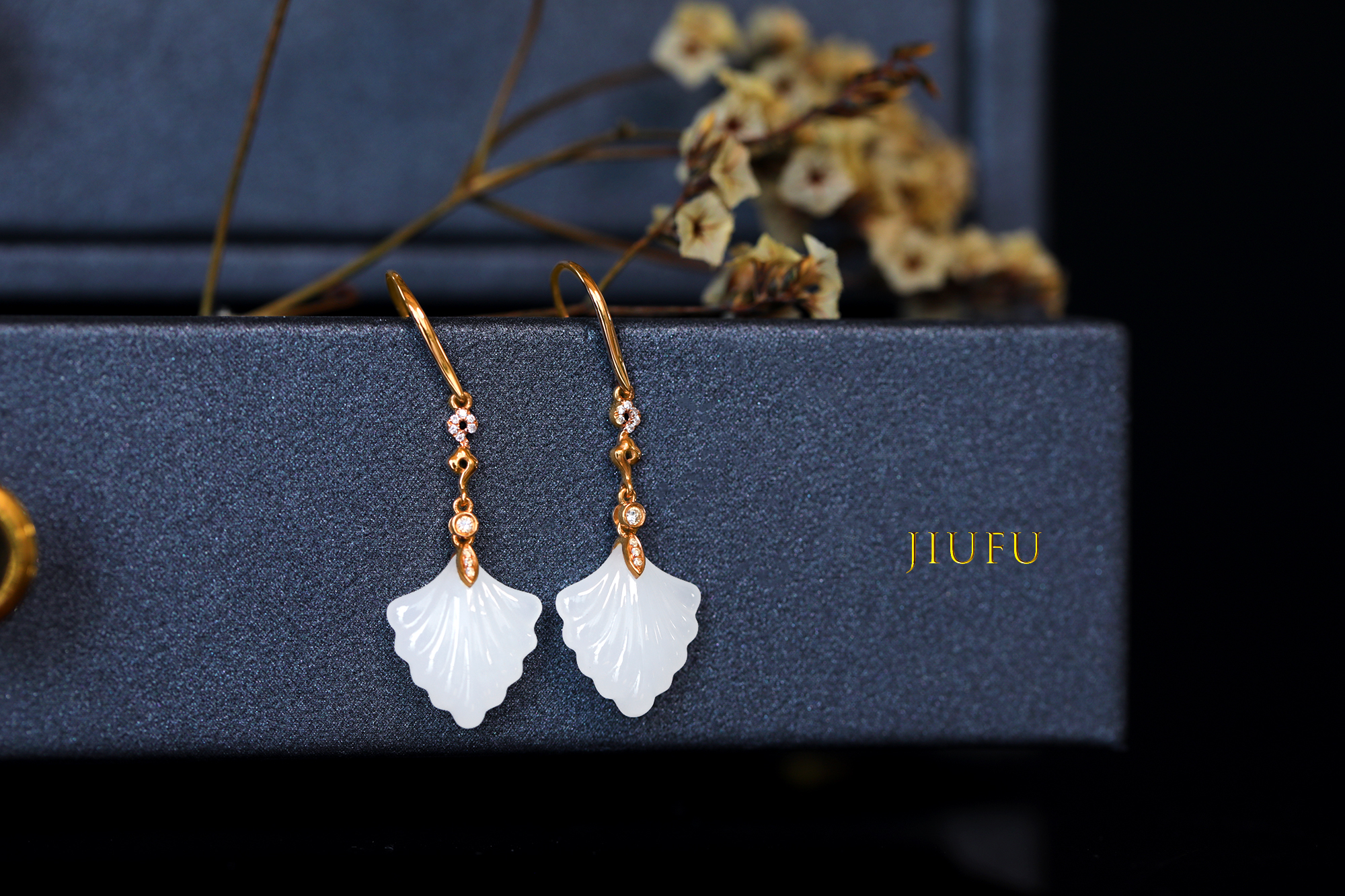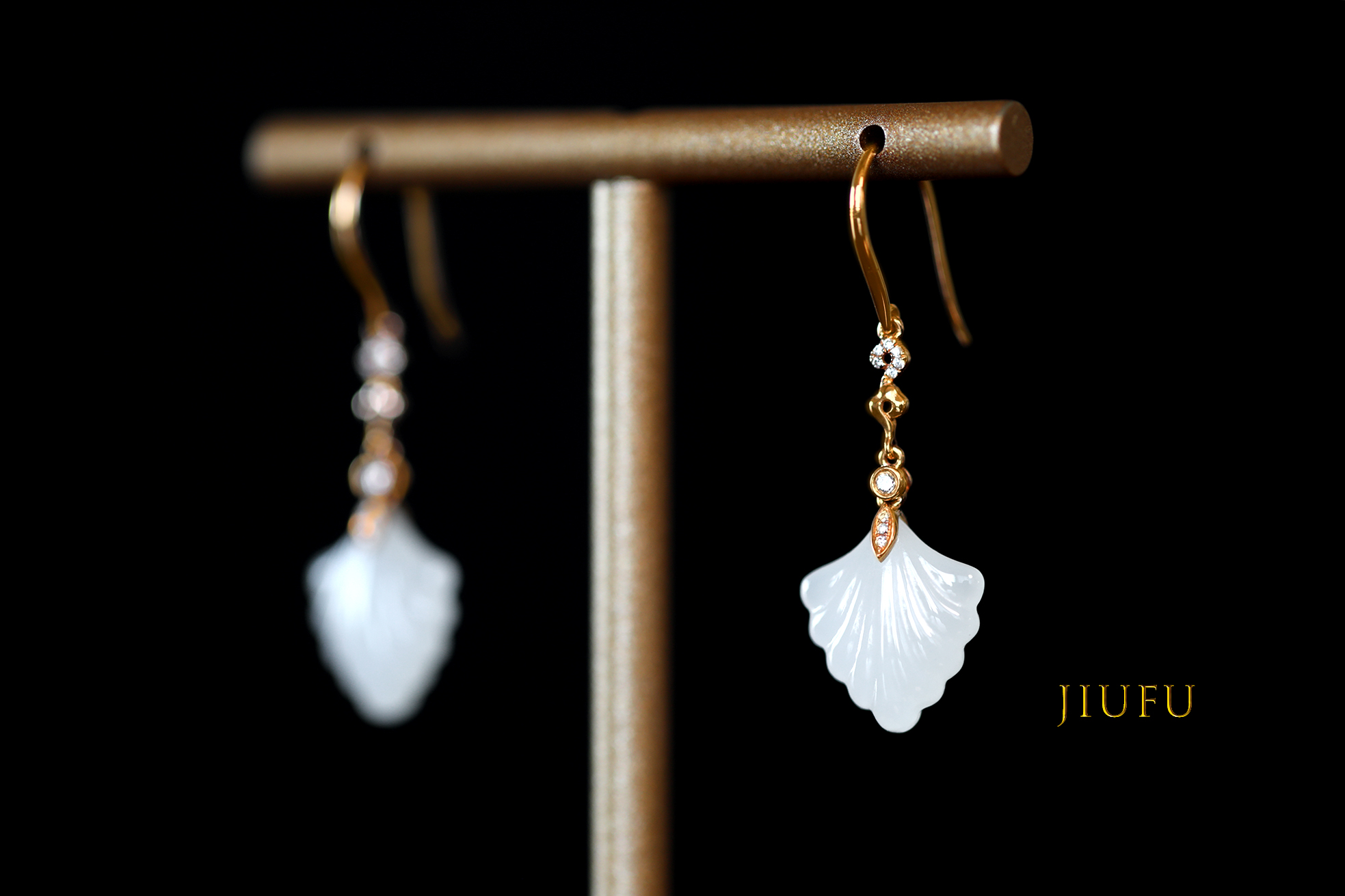 18K玫瑰金和田玉(白玉)耳饰