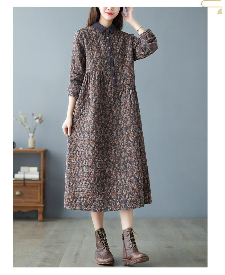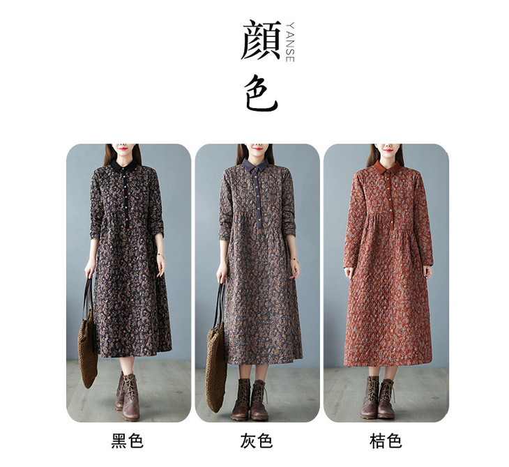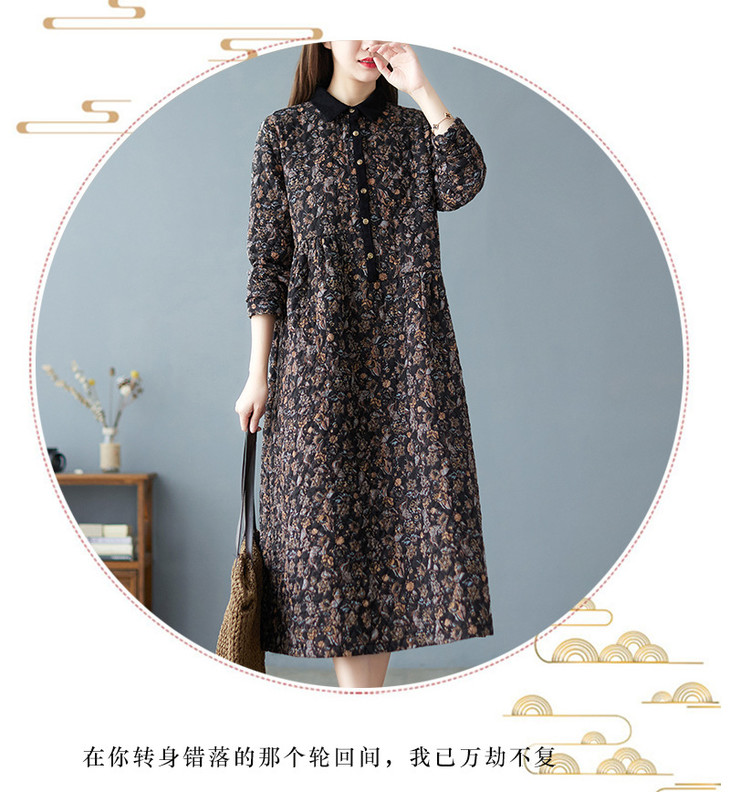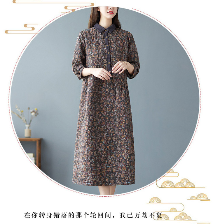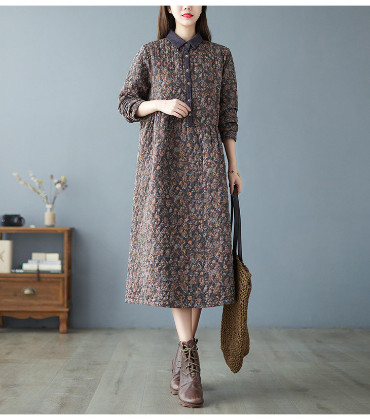 GYH 6206夹棉文艺印花舒适休闲时尚棉麻连衣裙