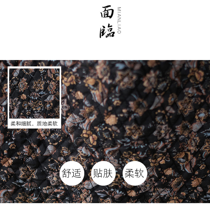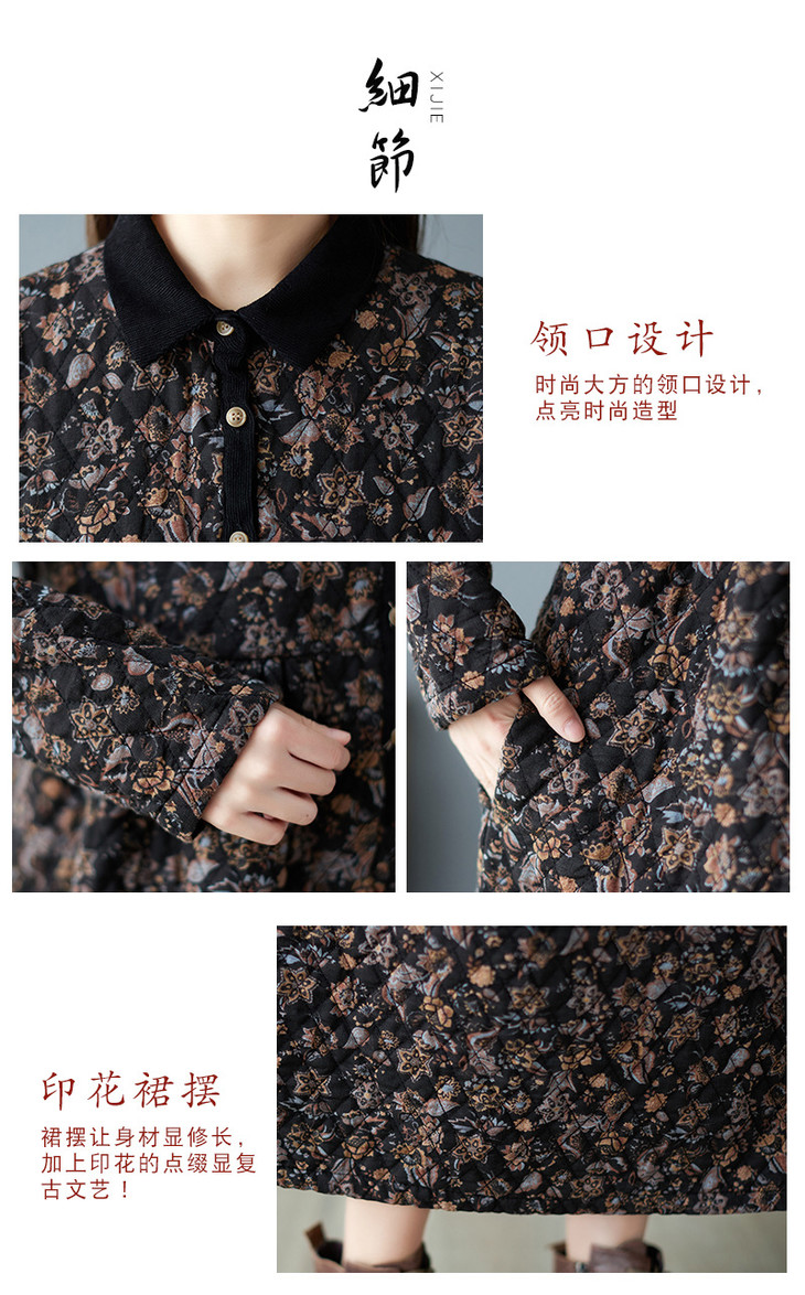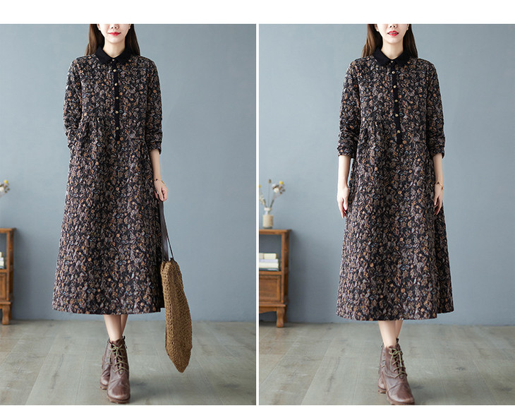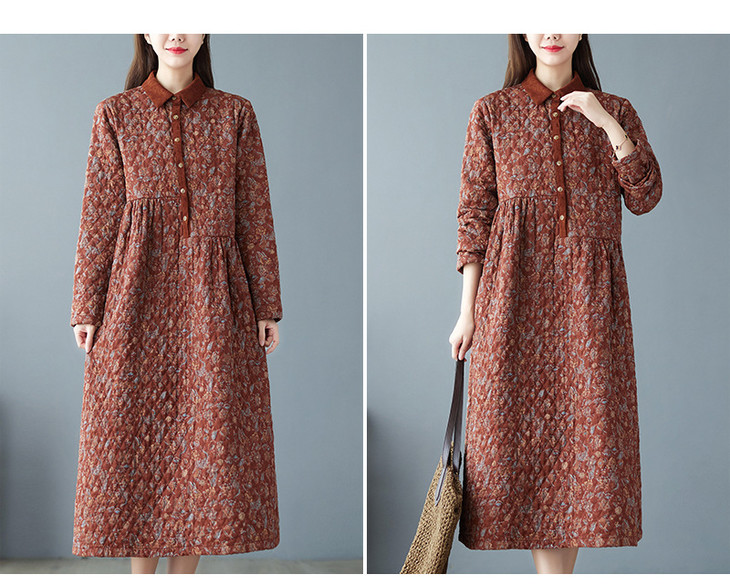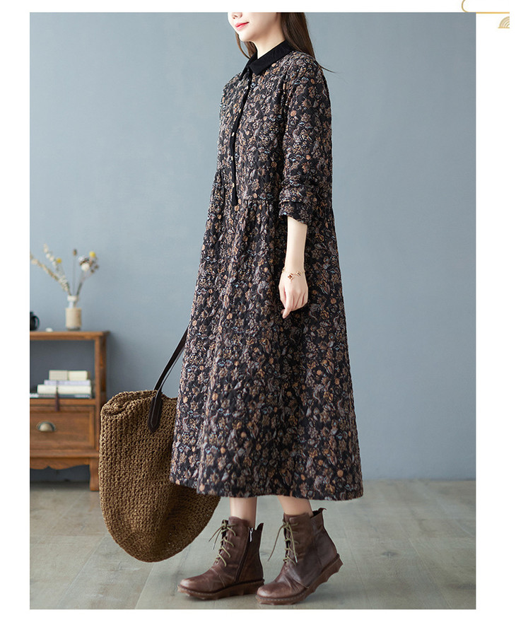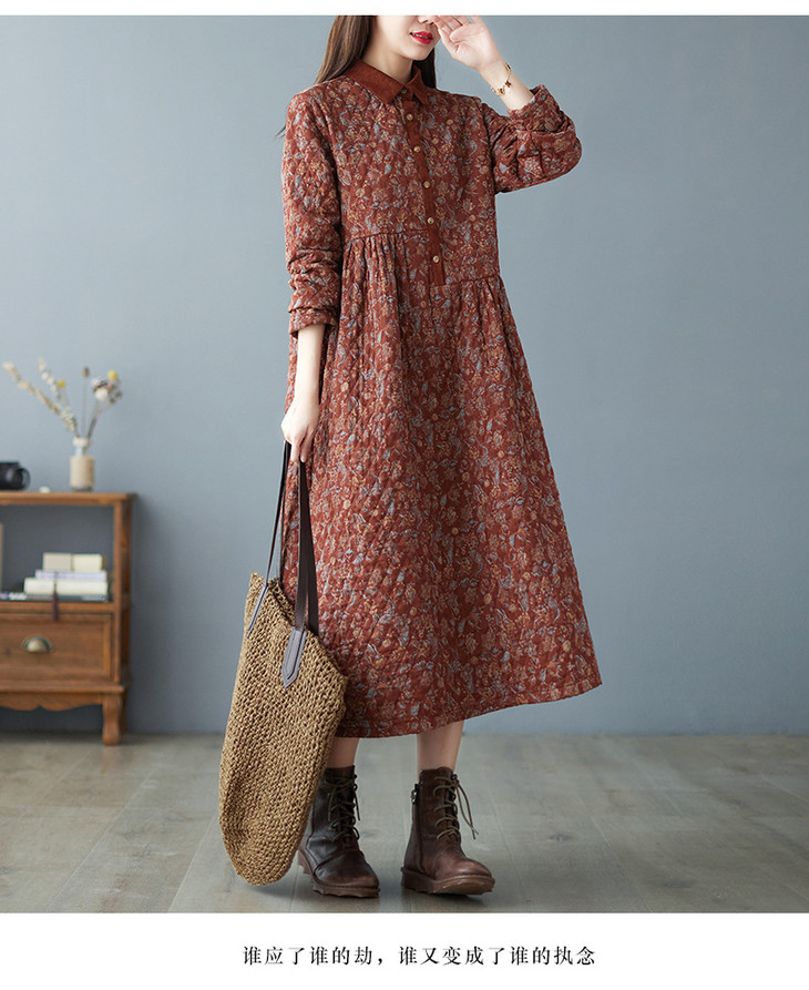 GYH 6206夹棉文艺印花舒适休闲时尚棉麻连衣裙